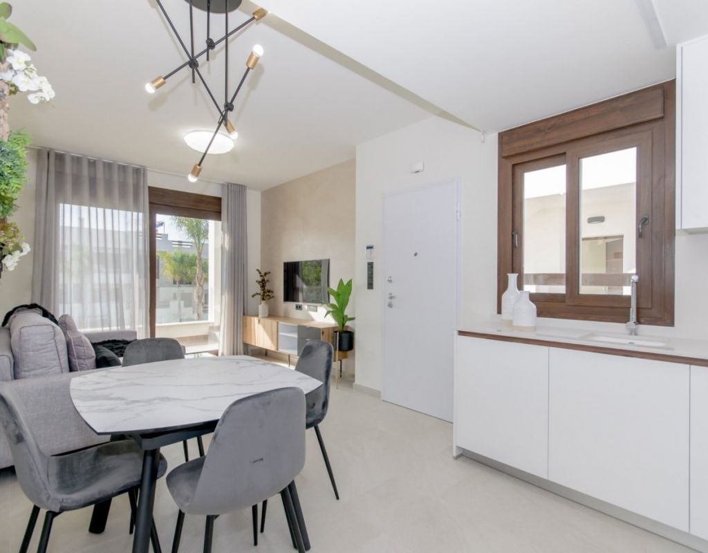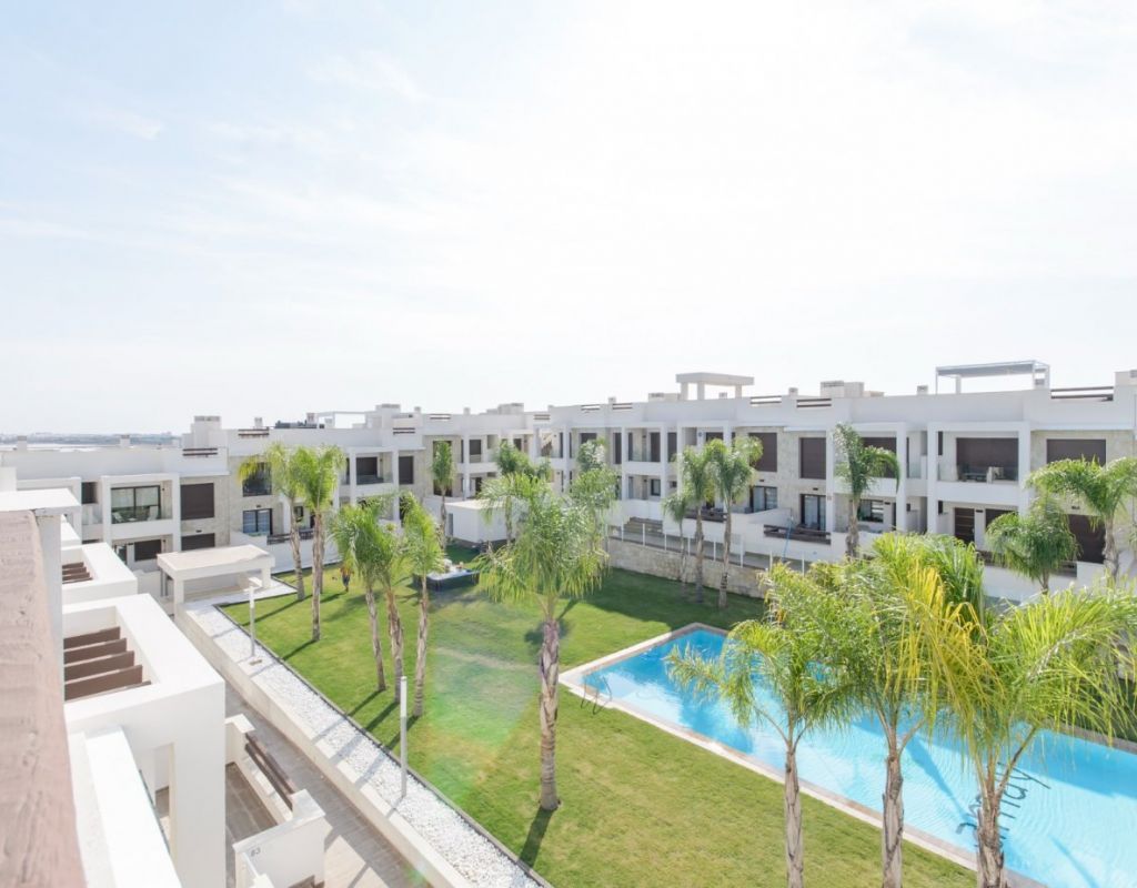 RESIDENCIAL DE OBRA NUEVA DE BUNGALOWS EN LOS BALCONES, TORREVIEJA Complejo residencial de nueva construcción con magníficas vistas a la salina rosa en Los Balcones. El complejo consta de 104 bungalows de 2 y 3 dormitorios, los bungalows de la última planta tienen solariums privados con vistas panorámicas a la laguna salada y los bungalows de la planta baja tienen grandes terrazas con vistas a la zona verde. Estos bungalows comparten hermosas zonas verdes y 2 grandes piscinas. Hay disponibles plazas de aparcamiento subterráneo y trasteros opcionales. Este residencial ofrece un diseño moderno, materiales seleccionados, apartamentos acabados con las más altas especificaciones utilizando sólo materiales de primera calidad. El Residencial se construirá en la ladera de una colina, de esta manera la vista y también el aire es claro y de calidad única. Los Balcones se encuentra a las afueras de Torrevieja con todos los servicios accesibles, a tan solo 5 minutos de la Playa de Los Náufragos, supermercados, el colegio y el Centro Comercial La Zenia Boulevard, y a un minuto del Hospital Universitario de Torrevieja. Además, encontrará 4 campos de golf a poca distancia en coche, incluyendo el galardonado Las Colinas Golf & Country Club. Complejo situado a 40 minutos del aeropuerto de Alicante y a 1 hora del aeropuerto de Murcia - Corvera.