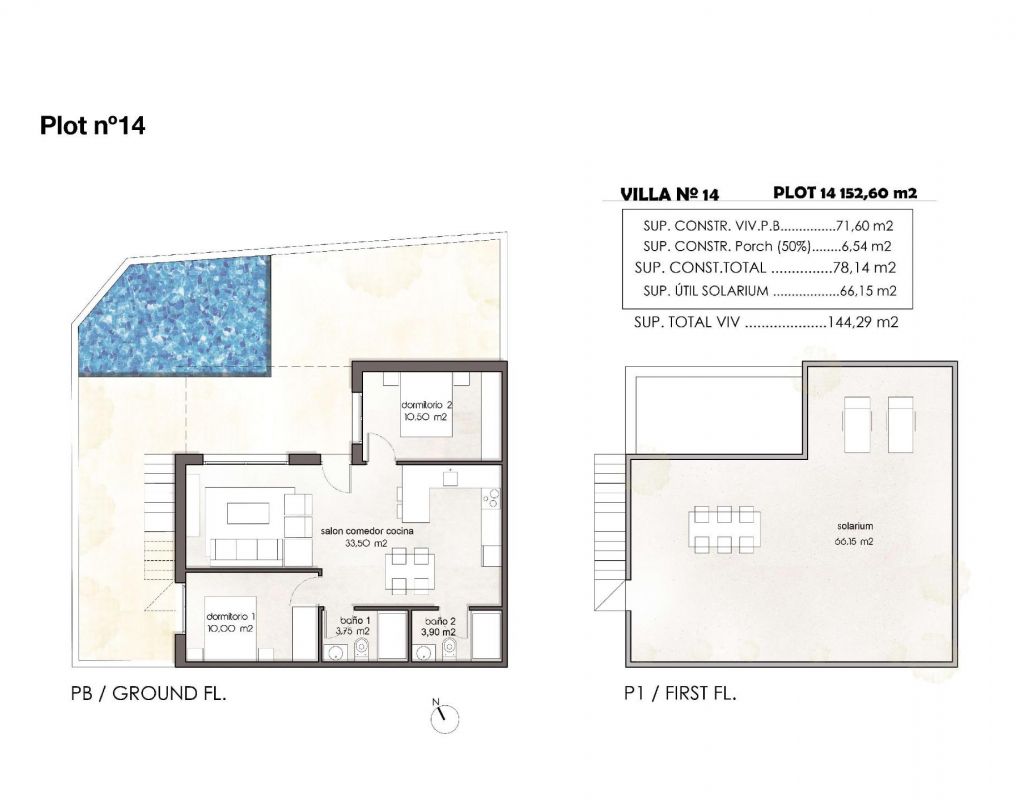 PAREADOS DE OBRA NUEVA EN PILAR DE LA HORADADA Villas pareadas de obra nueva situados en Pilar de la Horadada. Pareados construidas en 1 planta y dispone de solarium privado, 2 dormitorios, 2 baños, cocina americana con el salón, jardín con plaza de aparcamiento. Posibilidad de piscina privada con coste adicional. Viviendas situadas a pocos metros de todos los servicios y del centro. Pilar de la Horadada es un típico pueblo español en la parte más meridional de la Costa Blanca. La gran calle principal tiene supermercados, muchas tiendas, restaurantes y bares y algunas plazas encantadoras. Las hermosas playas de Torre de la Horadada y Mil Palmeras con paseo marítimo de arena fina está a sólo 5 minutos. En Pilar de la Horadada también hay una red bien desarrollada de carriles bici y senderos para caminar, y también hay una gran oferta de diversas actividades deportivas. El campo de golf Lo Romero, de 18 hoyos, se encuentra a un corto trayecto en coche. Los aeropuertos de Corvera (Murcia) y Alicante se encuentran a 40 y 55 minutos respectivamente.