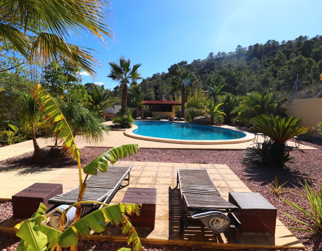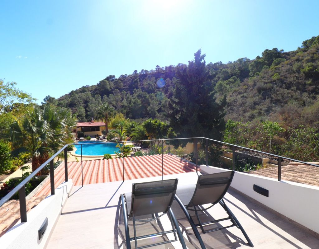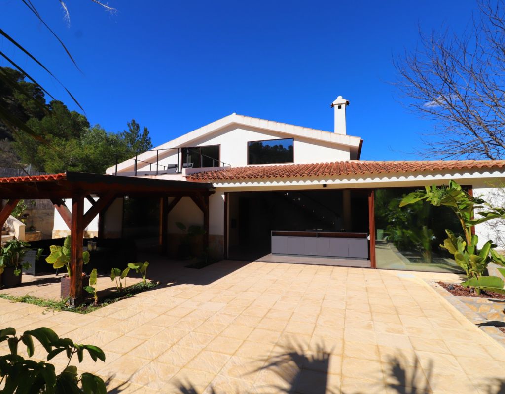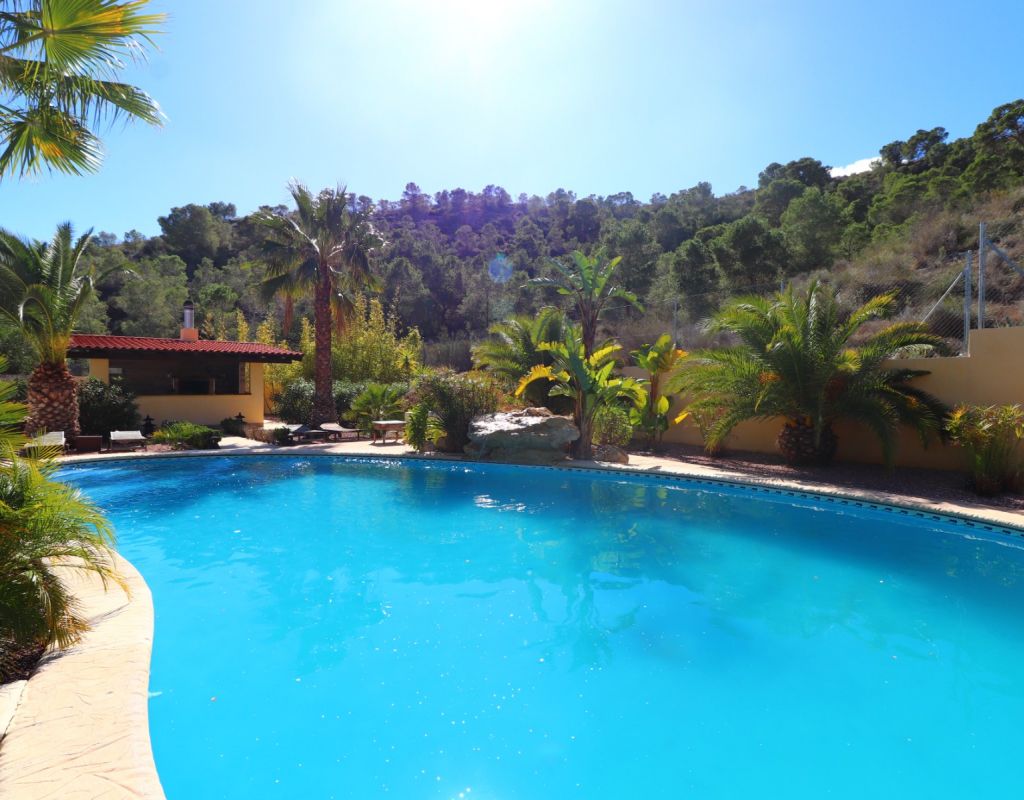 Esta exquisita propiedad rural de cinco dormitorios y cuatro baños con orientación sureste en Aspe personifica la vida de lujo en medio de la tranquila campiña española. Meticulosamente renovada y modernizada a un nivel impecable, esta impresionante residencia se completó en 2023 y ofrece comodidad y sofisticación incomparables. Con un amplio espacio habitable de 360 metros cuadrados cuidadosamente diseñado, esta casa está ubicada en una extensa parcela de 20.000 metros cuadrados, lo que brinda amplia privacidad y serenidad. Entra para descubrir un mundo de elegancia moderna. La propiedad cuenta con aire acondicionado por conductos en todas partes, lo que garantiza comodidad durante todo el año. El dormitorio principal impresiona con su generoso vestidor, que ofrece un amplio espacio de almacenamiento para los elementos esenciales del guardarropa. Los entusiastas de las actividades al aire libre se deleitarán con las ofertas de la propiedad, que incluyen estacionamiento fuera de la carretera y una cómoda cochera. Lo más destacado es la impresionante piscina privada de 67 metros cuadrados, que proporciona el oasis perfecto para la relajación y el entretenimiento con un telón de fondo de majestuosas vistas a las montañas y al campo. El hermoso jardín paisajístico atrae con su ambiente acogedor, con una cocina al aire libre, área de barbacoa y bar, ideal para organizar reuniones o disfrutar de momentos íntimos con sus seres queridos bajo los cielos bañados por el sol de la Costa Blanca. Las características adicionales incluyen un guardarropa para mayor comodidad. Situado a sólo 7 kilómetros del centro de la ciudad de Aspe y del centro de Crevillente, los residentes pueden acceder fácilmente a una gran cantidad de servicios, que incluyen tiendas, restaurantes e instalaciones recreativas. Disfrute del epítome de la vida rural española con esta propiedad excepcional, donde el lujo, el confort y la belleza natural convergen para ofrecer un estilo de vida de esplendor incomparable.