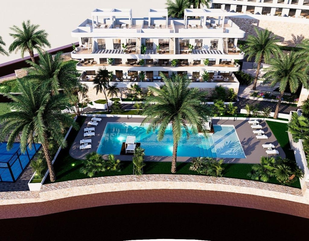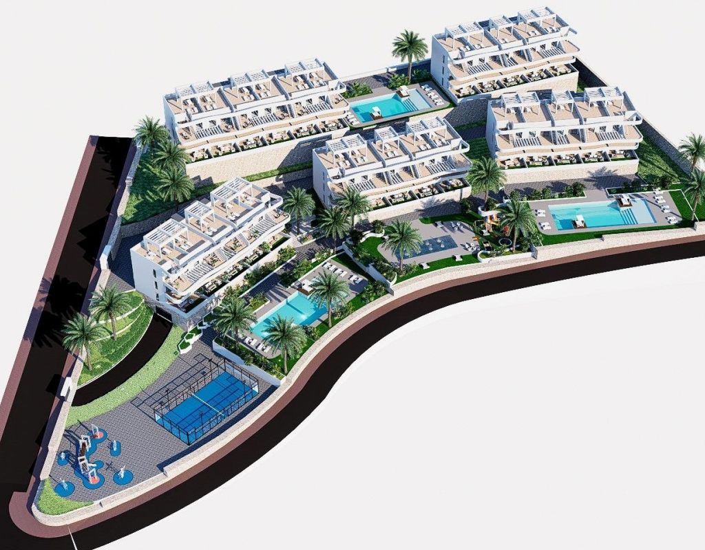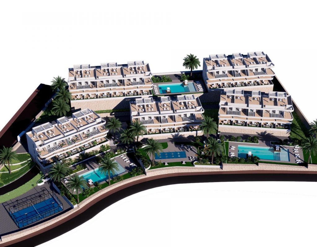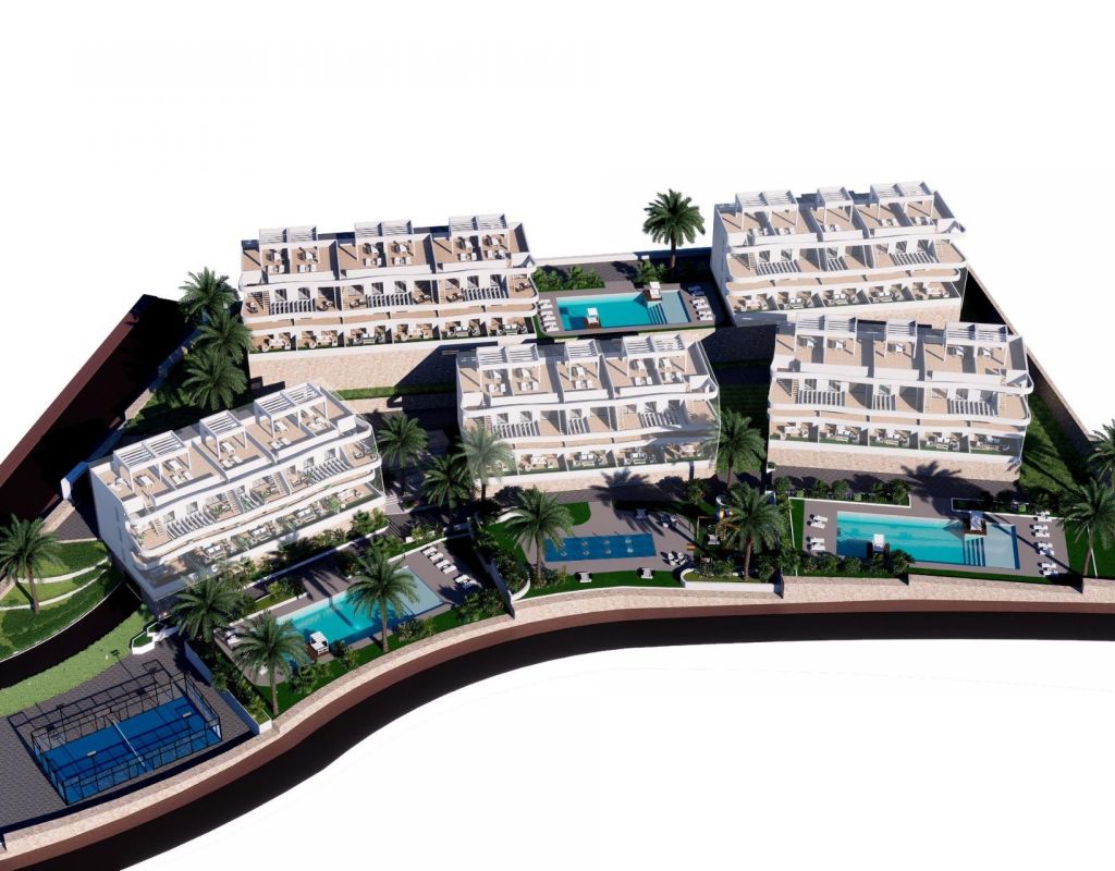 COMPLEJO RESIDENCIAL DE OBRA NUEVA EN FINESTRAT Complejo residencial de obra nueva en Balcon de Finestrat. Este complejo de apartamentos modernos con 2 dormitorios, 2 baños, cocina americana con la sala de estar. Algunos de los apartamentos tienen vistas al mar. Apartamento de planta baja con un jardín, apartamentos de planta media con las terrazas y apartamentos de planta alta tiene una terraza y solarium privado. Cada propiedad tiene plaza de aparcamiento subterráneo privado. Las viviendas tienen acceso a la zona comunitaria con 3 piscinas, parking, paddle, parque infantil, calistenia. Es una gran oportunidad y privilegio poder vivir con este entorno de golf y playa, cerca de todas las comodidades de todos los servicios considerado uno de los mejores lugares para invertir. Finestrat situado en la comarca de la Marina Baixa de la Costa Blanca. Benidorm está a sólo cinco minutos en coche de las propiedades y ofrece todos los servicios que pueda necesitar, incluyendo tiendas, bares, restaurantes, supermercados, bancos, farmacias y varias escuelas privadas internacionales. Cerca de las playas de Levante, Poniente y Cala de Finestrat, con más de 6km de longitud que se encuentran entre las mejores de Europa galardonadas por la Unión Europea con Banderas Azules. Todos los servicios de ocio como los parques temáticos de Aqua Natura, Terra Mítica, Terra Natura, Aqualandia y Mundomar, los campos de Golf Sierra Cortina y Villaitana, senderismo y escalada en el Puig Campana un marco natural incomparable o disfrutar de los deportes náuticos. Distancia al mar 4 km, al aeropuerto 26 km y al golf 1km.