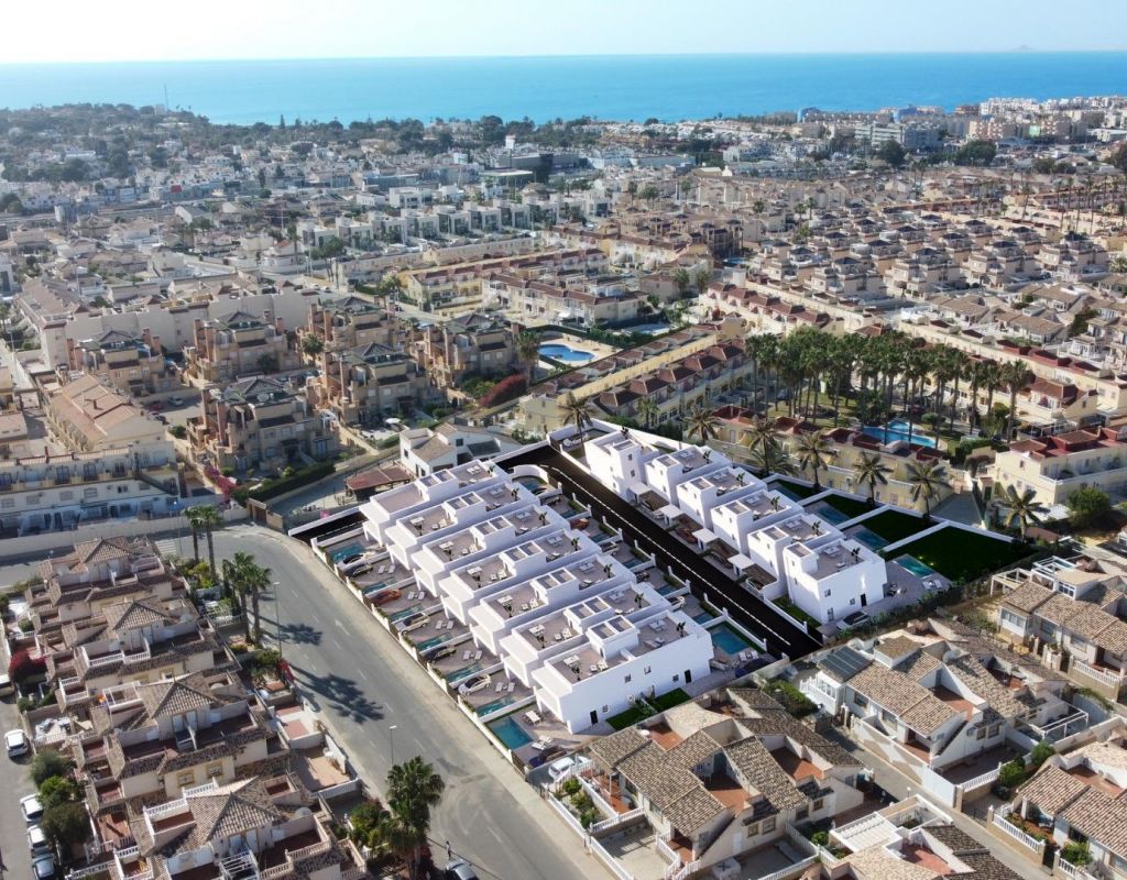 VILLAS PAREADAS DE OBRA NUEVA EN LA ZENIA Residencial de obra nueva de villas independientes y pareados en La Zenia, Orihuela Costa. Viviendas modernas construidas en 3 plantas, dispone de 3 dormitorios, 2 baños, cocina americana con salón, armarios empotrados, Aire Acondicionado por conducto, sótano, solarium, jardín privado con la piscina y plaza de aparcamiento. La Zenia se encuentra en la Costa Blanca Sur, justo al sur de la importante ciudad de Torrevieja. Este tramo de la costa es conocida como la Costa de Orihuela. La Zenia es un pequeño pero concurrido complejo turístico de playa. Tiene muchos restaurantes, bares, tiendas y buenas instalaciones debido al gran número de personas que viven aquí durante todo el año. Hay muchos bares irlandeses incluyendo el conocido Paddy's. La mayoría de los bares muestran Sky Sports y es fácil encontrar un buen desayuno inglés durante todo el día en uno de los muchos cafés y restaurantes. Centro Comercial La Zenia Boulevard podrá disfrutar de moda, ocio y restauración en un mismo lugar. Complejo situado a 40 minutos del aeropuerto de Alicante y a 1 hora del aeropuerto de Murcia - Corvera.