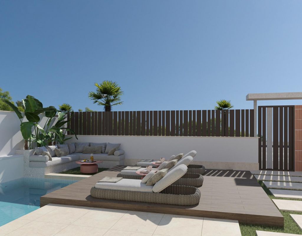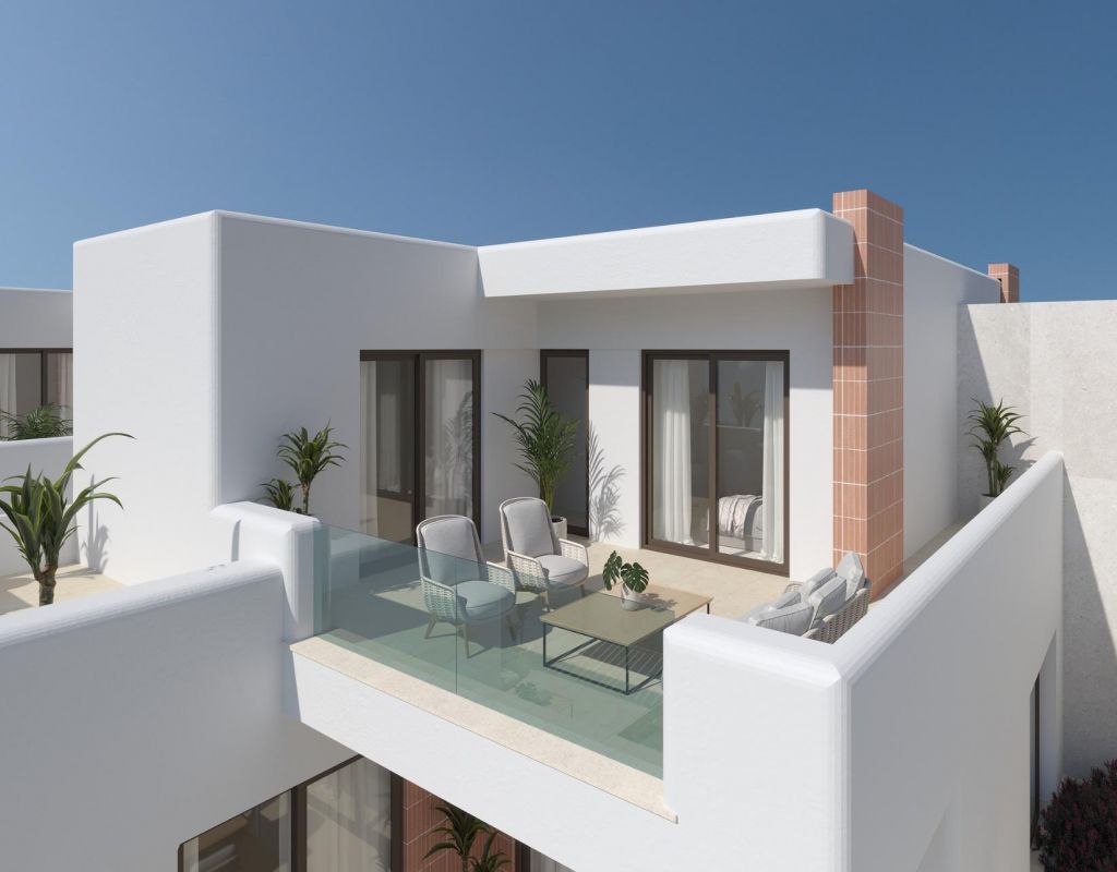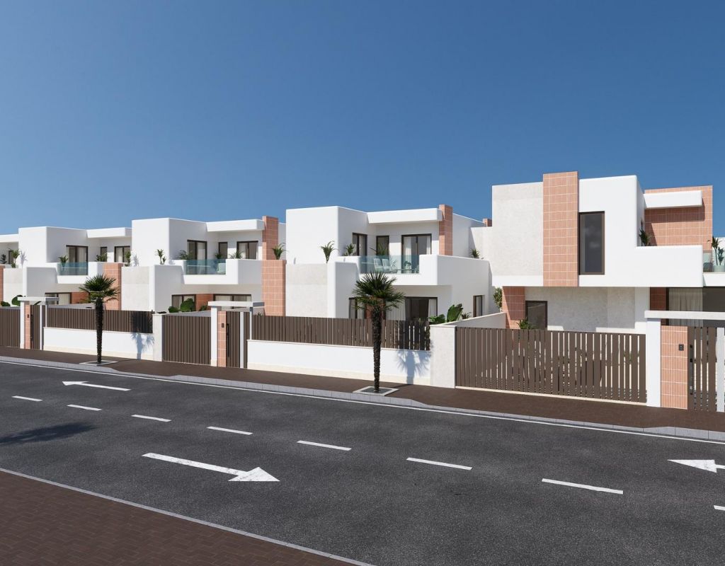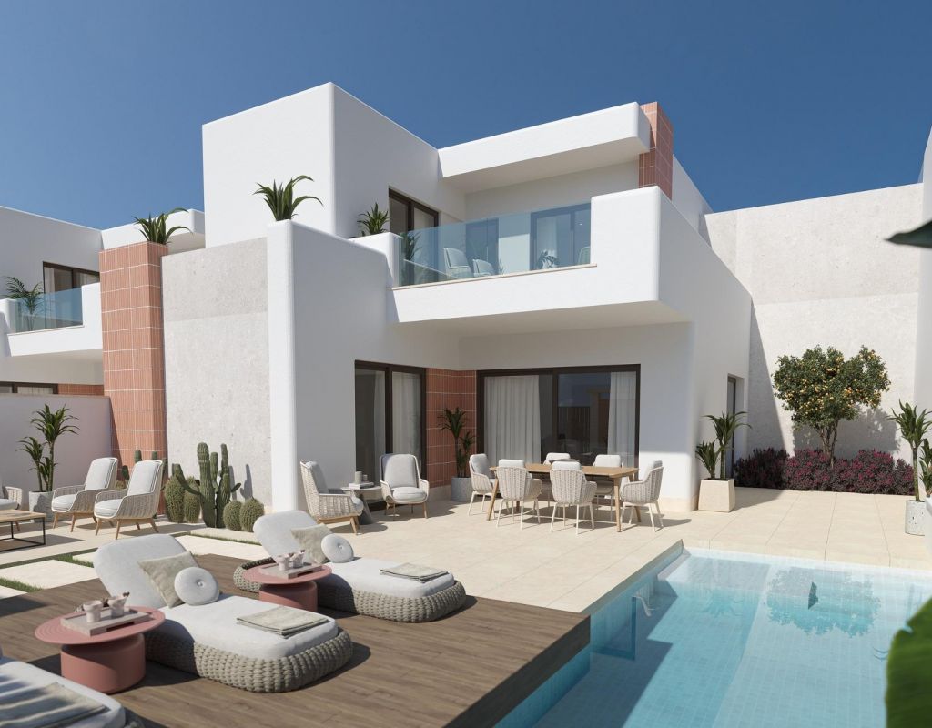 PAREADOS DE OBRA NUEVA EN ROLDAN Viviendas de lujo de obra nueva con amplio jardín, piscina privada y una calidad de construcción inigualable en Roldán. Las casas tienen una distribución muy práctica. En la planta baja hay un dormitorio y un baño. En la planta superior hay 2 dormitorios y 2 baños. Ambas habitaciones tienen acceso a la terraza con vistas al jardín y respetando la privacidad de cada residente en el proyecto. ¡La calidad de construcción de estas casas no se ve en el segmento! Trabajamos con los mejores estándares de aislamiento y, además, proporcionamos ventanas de aluminio de alta calidad con rotura de puente térmico y el doble acristalamiento está equipado con un filtro solar especial. De este modo, garantizamos una vivienda extremadamente eficiente desde el punto de vista energético. En cuanto a los acabados, elegimos al líder del mercado en baldosas cerámicas, Porcelanosa. De serie, toda la casa está equipada con sus materiales de lujo: desde los suelos interiores y exteriores, hasta el alicatado y la piedra natural auténtica del baño, los muebles de baño y la grifería de lujo de toda la casa. La cocina también es de Porcelanosa y cuenta con una encimera XTone de 8 cm de grosor y todos los electrodomésticos, incluida una placa de inducción con campana extractora incorporada de Balay, se incluyen de serie. La fachada exterior de estilo ibicenco con esquinas redondeadas y mosaico de terracota crean el ambiente vacacional definitivo. En estas villas, como cliente también tiene la oportunidad de personalizar realmente los toques finales. Le guiaremos a través de todas las opciones en la sala de exposición de Porcelanosa Murcia para diseñar la casa de sus sueños totalmente a su gusto. La promoción está situada en una tranquila zona residencial a sólo 2 minutos a pie del animado centro del pueblo de Roldán. Roldán cuenta con todos los servicios necesarios como farmacia, médico, una amplia gama de restaurantes y bares, gimnasio, padel, y mucho más. A menos de 5 minutos en coche, podrá disfrutar de los campos de golf de La Torre o Las Terrazas de La Torre. Ambos son prestigiosos campos de golf de 18 hoyos y encontrará más restaurantes y bares estupendos, hasta incluso un hotel Doubletree by Hilton. A sólo 15 minutos de las playas del Mar Menor y a 20 minutos de las hermosas ciudades de Murcia y Cartagena. Roldán es la base perfecta para disfrutar de la tranquilidad de un típico pueblo español y al mismo tiempo estar cerca del ajetreo de las ciudades o de la costa. Ir de compras es posible a 25 minutos en coche de la famosa Zenia Boulevard o a 35 minutos de la hermosa Nueva Condomina.