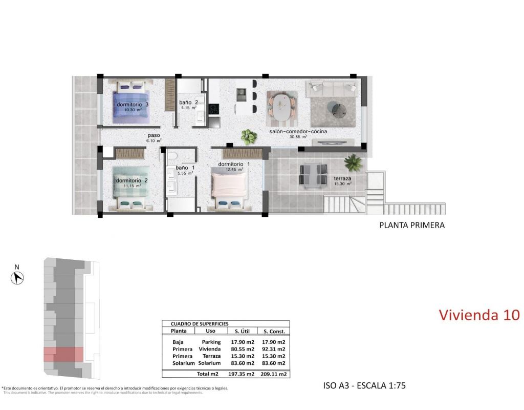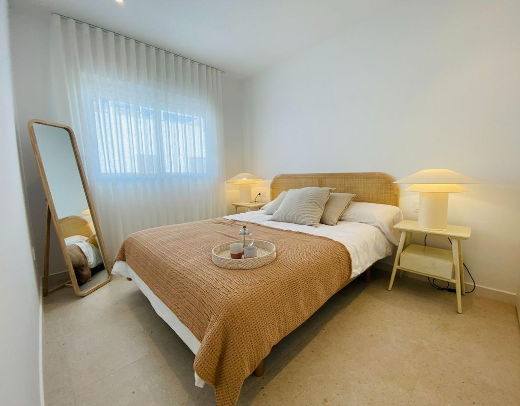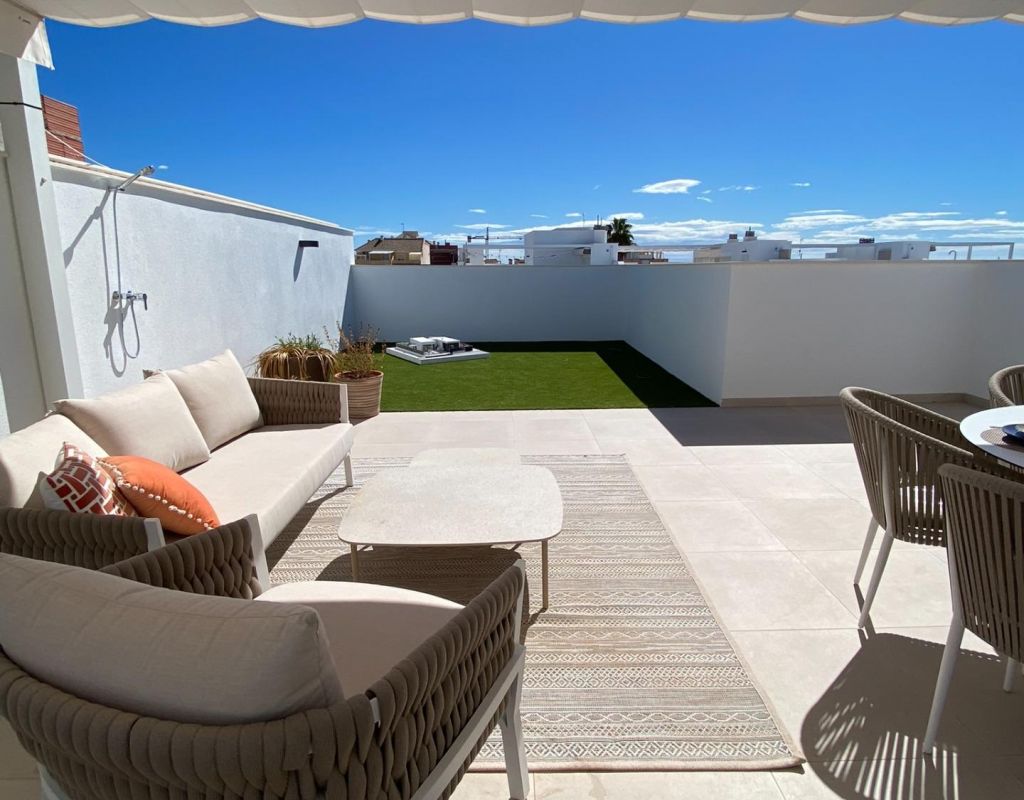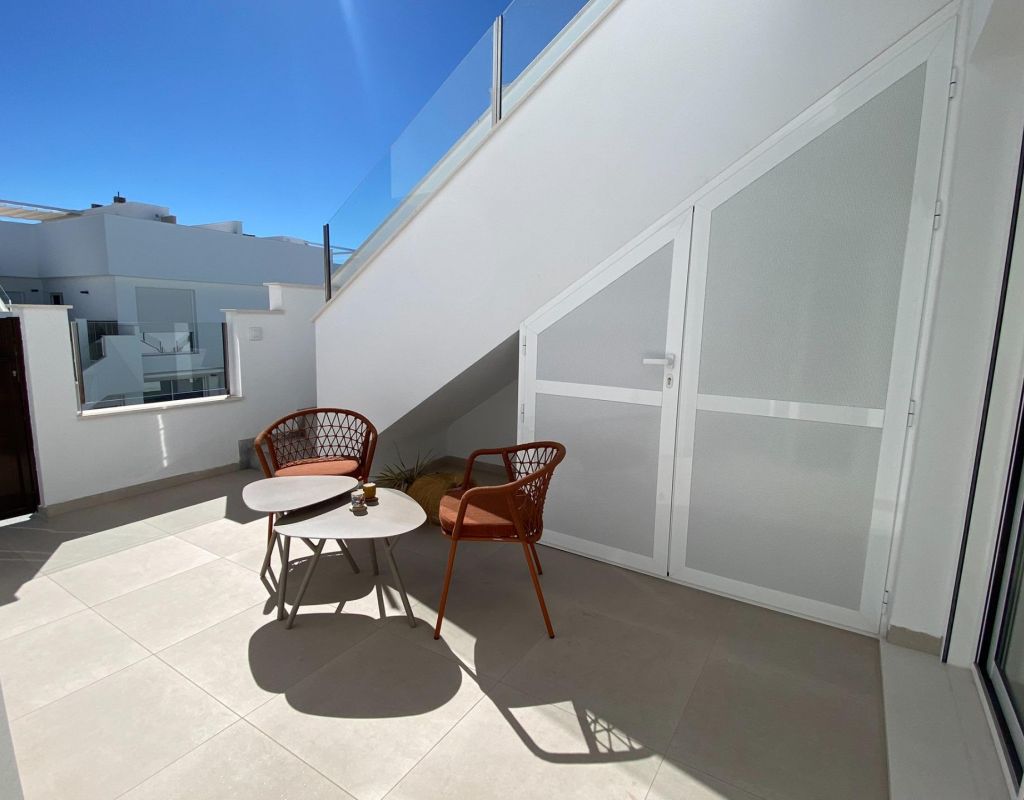 Complejo Residencial de Bungalows de Obra Nueva en Pilar de la Horadada Exclusivos Bungalows Modernos en Pilar de la Horadada Esta nueva promoción ofrece 16 elegantes bungalows en la deseable localidad de Pilar de la Horadada, situada en la parte más meridional de la Costa Blanca. Elija entre 2 o 3 dormitorios, cada uno con 2 baños. Los bungalows de la planta baja disponen de amplias terrazas delanteras y traseras con acceso directo a la piscina y el jardín comunitarios, mientras que los de la planta superior cuentan con un gran solárium privado en la azotea. Vida espaciosa con características modernas Cada bungalow incluye un salón-comedor luminoso y abierto y una cocina totalmente equipada con grandes puertas correderas que conectan a la perfección los espacios interiores y exteriores. Los dormitorios cuentan con armarios empotrados. El complejo dispone de aire acondicionado por conductos y ascensor para facilitar el acceso a las plantas superiores. También se incluyen plazas de aparcamiento privado para todas las unidades. Ubicación privilegiada en Pilar de la Horadada Pilar de la Horadada es un pueblo tradicional español con una animada calle principal que ofrece supermercados, tiendas, restaurantes y bares. Las hermosas playas de Torre de la Horadada y Mil Palmeras están a sólo 5 minutos. La urbanización está convenientemente situada a 40 km del aeropuerto de Corvera (Murcia) y a 55 km del aeropuerto de Alicante, por lo que es un lugar ideal tanto para vivir permanentemente como para escapadas vacacionales.