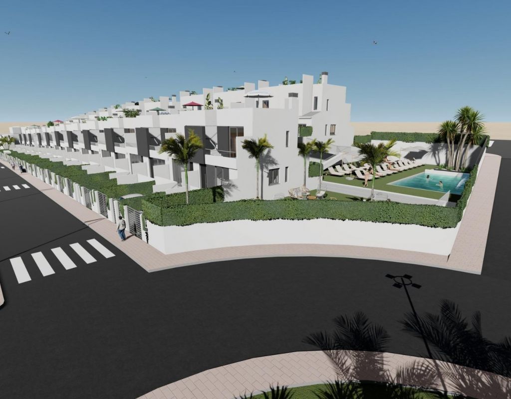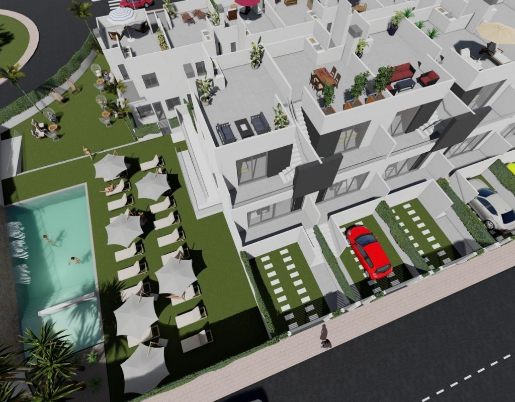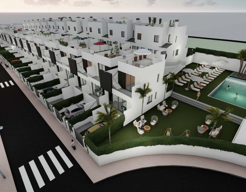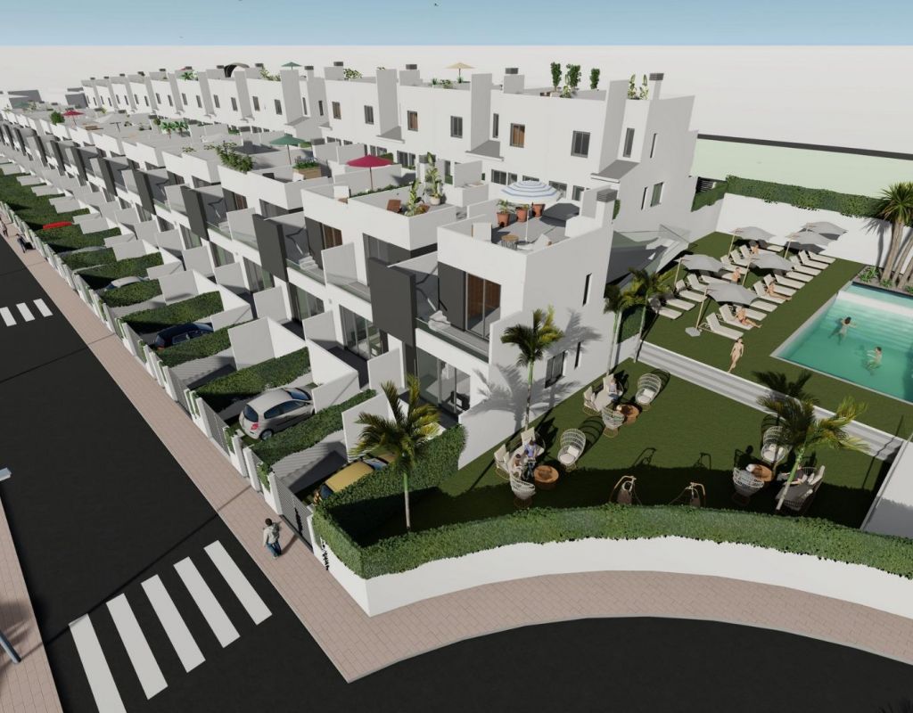 Adosados de obra nueva en venta en Cox - 44 casas modernas con grandes comodidades Descubra una nueva promoción residencial de 44 modernos adosados en Cox, Alicante. Estas casas están disponibles en 2 y 3 dormitorios, cada uno con un solarium privado, terrazas, patios y aparcamiento privado. La comunidad ofrece acceso a zonas comunes, incluyendo una piscina comunitaria, creando un ambiente ideal para relajarse. Ubicación privilegiada con excelente conectividad Esta urbanización se encuentra a sólo 40 km del Aeropuerto Internacional de Alicante, lo que hace que viajar sea fácil y cómodo. Cox está bien comunicado con las principales ciudades: Orihuela está a sólo 8 km, Elche a 20 km, Alicante a 48 km y Murcia a 25 km. Los aficionados al golf apreciarán los campos cercanos como La Finca (12 km) y Vistabella (14 km). Fácil acceso a las principales carreteras Cox ofrece fácil acceso a la autopista AP-7 y a la Autovía del Mediterráneo (A-7), así como a rutas locales a zonas circundantes como Granja de Rocamora y Callosa de Segura. La ciudad y sus alrededores cuentan con una población de más de 35.000 habitantes, ofreciendo un estilo de vida tranquilo pero vibrante. Servicios y atracciones locales Los residentes podrán disfrutar de una amplia gama de servicios locales, incluyendo tiendas, escuelas, instalaciones deportivas, centros médicos, y un rápido acceso a las playas de la Costa Blanca, como Guardamar del Segura y Torrevieja. Características incluidas Cada casa viene con un jardín, iluminación LED, persianas eléctricas, pre-instalación de paneles solares, armarios empotrados, una puerta de seguridad, una cocina totalmente equipada con encimeras de Silestone, y mucho más.