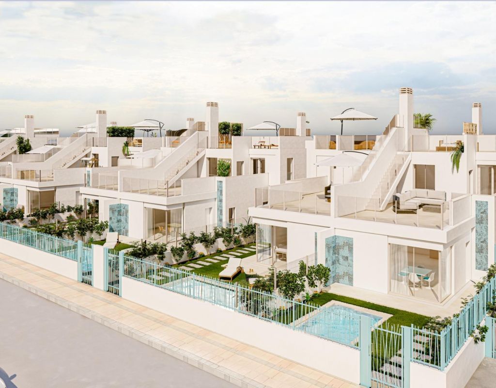 Villas de obra nueva cerca de La Serena Golf y la playa en Los Alcázares Descubra las exclusivas Villas de Obra Nueva en la prestigiosa zona de Torre del Rame en Los Alcázares, Murcia. Conocida por su clima mediterráneo, esta ubicación ofrece fácil acceso tanto a La Serena Golf como a las hermosas playas del Mar Menor, lo que la convierte en un lugar ideal para el ocio y la relajación. Opciones y características de la propiedad Elija entre dos impresionantes modelos de villa: una opción independiente o adosada. Ambos ofrecen 3 dormitorios, 3 baños, un sótano con garaje, una piscina privada y un amplio solarium. Estos diseños modernos y elegantes cuentan con espacios luminosos y abiertos llenos de luz natural, acabados de alta calidad, aire acondicionado por conductos y calefacción por suelo radiante en los baños. Cada villa también incluye un jardín paisajista y una cocina totalmente equipada. Ubicación privilegiada y fácil acceso Convenientemente situadas cerca de la autopista AP7, las villas están bien conectadas con la costa mediterránea, permitiéndole explorar la belleza diversa de la región. La zona ofrece una amplia gama de servicios cercanos, incluyendo supermercados, tiendas, centros deportivos, escuelas y farmacias, lo que garantiza un estilo de vida cómodo y conveniente en un entorno residencial tranquilo. Puntos de interés cercanos La Serena Golf: 1 km Playa del Mar Menor: 1 km Aeropuerto de Murcia: 35 km Puerto de Cartagena: 22 km Centro Comercial de la localidad: 3 km