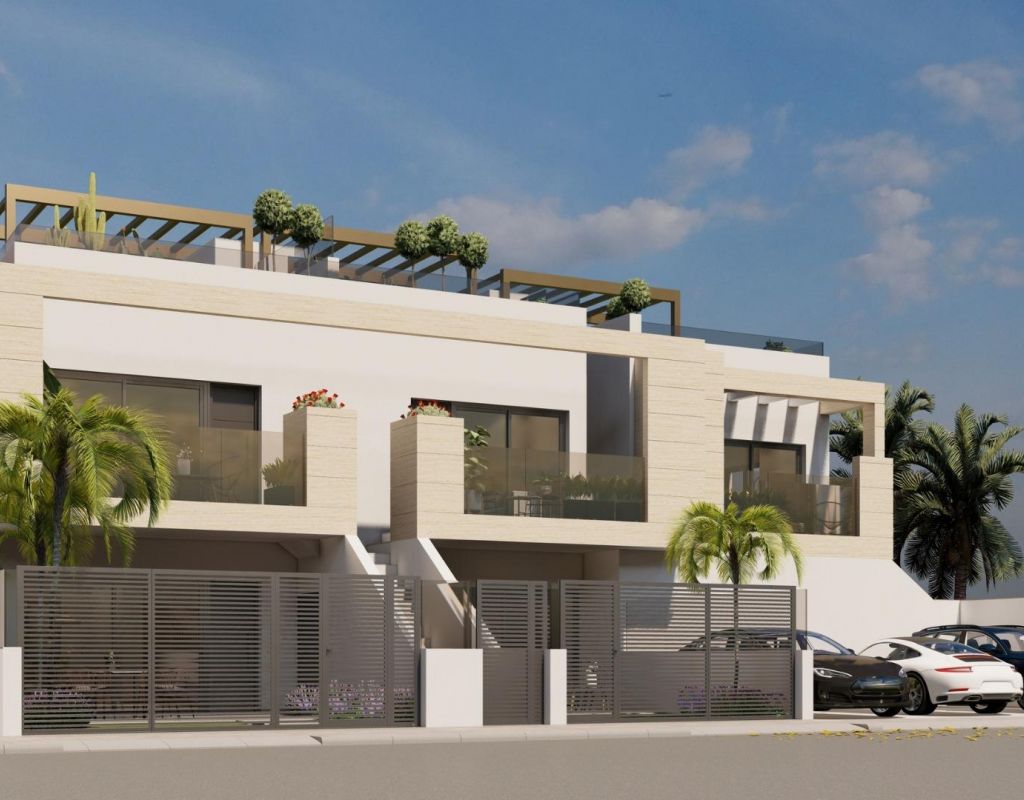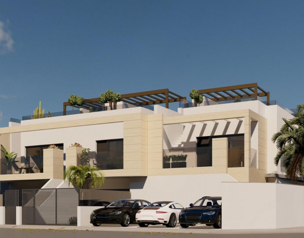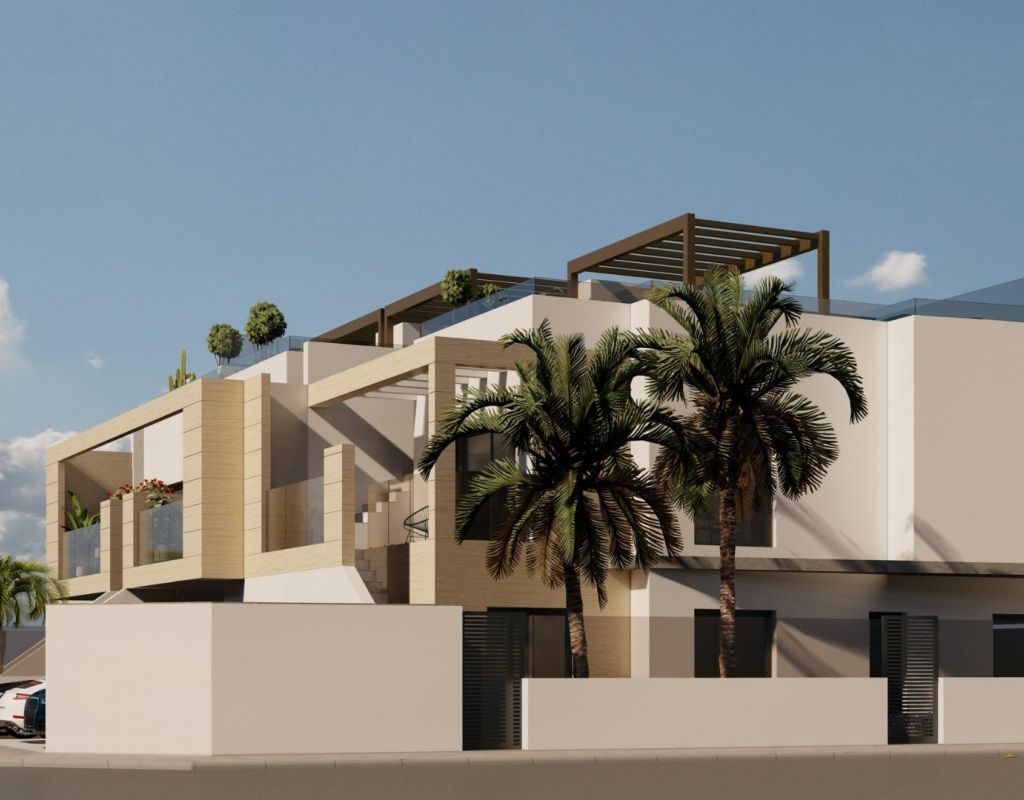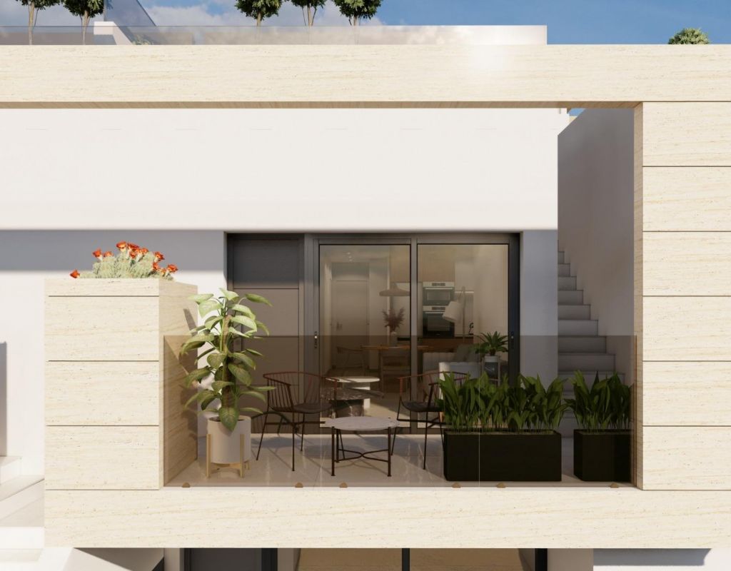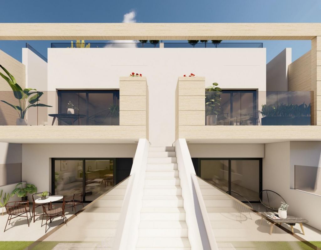 Bungalows de nueva construcción en Lo Pagán: Vida Moderna Cerca de la Playa Ubicación privilegiada en Lo Pagán, San Pedro del Pinatar Descubra el estilo de vida costero perfecto con estos bungalows de nueva construcción en Lo Pagán, una encantadora zona de San Pedro del Pinatar. Situado a sólo 1,2 km de la hermosa Playa de Villa Nanitos, estás a 15 minutos a pie de playas de arena y del icónico Molino Quintín. Esta ubicación privilegiada es perfecta para los amantes de la playa y los deportes náuticos, con clubes náuticos y puertos deportivos en las inmediaciones. Además, todos los servicios esenciales como supermercados, bares y restaurantes están a sólo unos minutos a pie. Características Estos elegantes bungalows disponen de 2 dormitorios, 2 baños, cocina americana y sala de estar. Los bungalows disponen de aire acondicionado, armarios empotrados e interiores modernos. Las unidades de la planta baja cuentan con una amplia terraza con la opción de añadir una piscina privada (disponible a un coste adicional), mientras que las unidades de la planta superior cuentan con un solarium privado con piscina incluida, perfecto para relajarse bajo el sol mediterráneo. Acabados de alta calidad Cada bungalow incluye una plaza de aparcamiento, y todos los apartamentos tienen acabados de alta calidad. Las características incluyen electrodomésticos de cocina Bosch, persianas eléctricas, aire acondicionado por conductos, baños totalmente equipados e iluminación LED tanto en el interior como en el exterior. Ideal para vivir todo el año Lo Pagán ofrece un estilo de vida tranquilo con una comunidad acogedora y establecida. Los residentes pueden disfrutar de actividades durante todo el año gracias al suave clima invernal de la región. La zona cuenta con piscinas cubiertas, instalaciones deportivas y una gran variedad de eventos sociales. Los baños de barro natural y las tranquilas aguas del Mar Menor contribuyen a su atractivo, convirtiéndolo en un destino privilegiado para el bienestar y la relajación. Atracciones cercanas Centro Comercial Dos Mares: 5 minutos en coche Aeropuerto de Murcia (Corvera): 30 minutos en coche Aeropuerto de Alicante: 1 hora en coche Los campos de golf y los puertos deportivos se encuentran a poca distancia en coche, lo que la convierte en una ubicación excelente tanto para el ocio como para la comodidad.