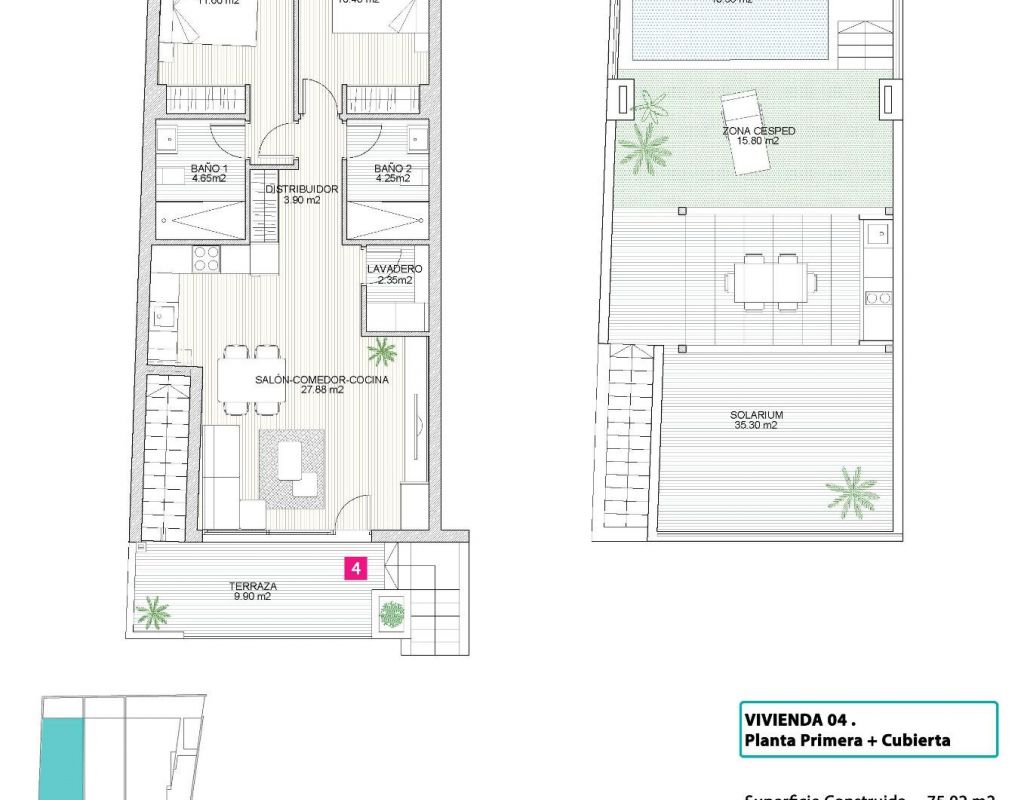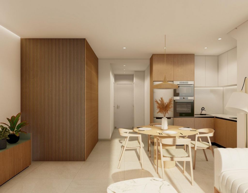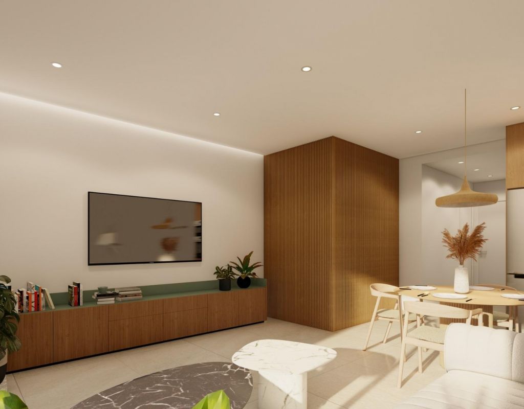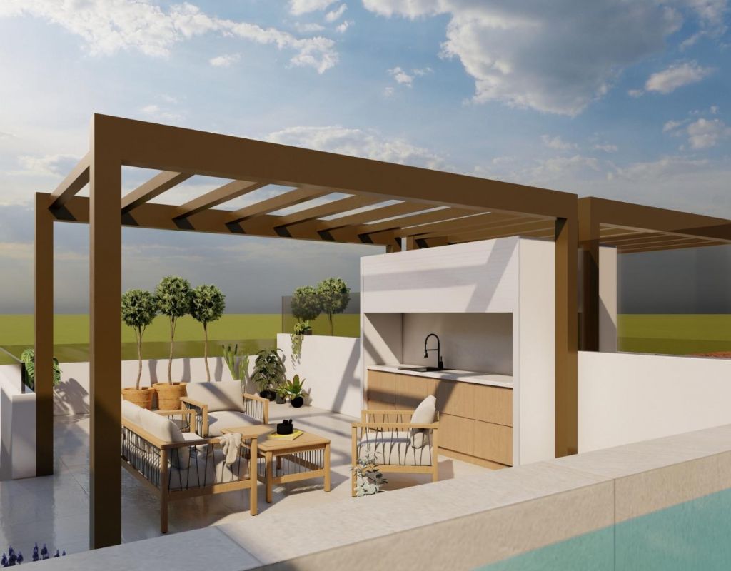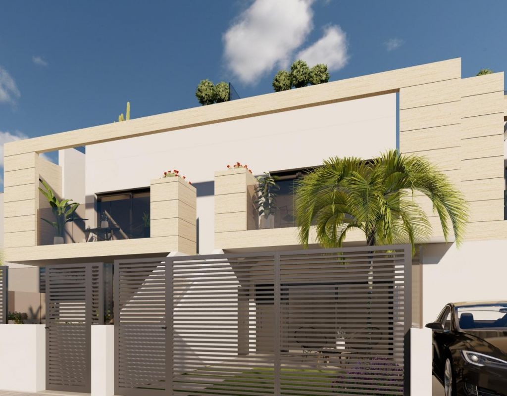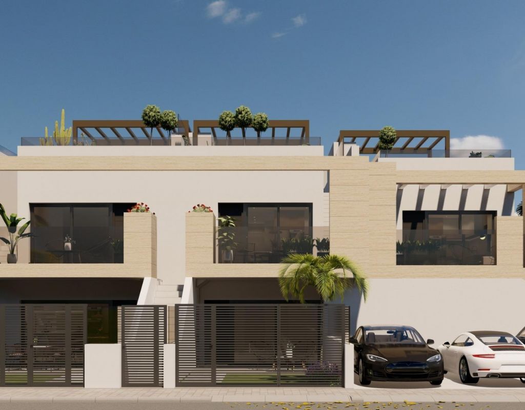 Bungalows de nueva construcción en Lo Pagán: Vida Moderna Cerca de la Playa Ubicación privilegiada en Lo Pagán, San Pedro del Pinatar Descubra el estilo de vida costero perfecto con estos bungalows de nueva construcción en Lo Pagán, una encantadora zona de San Pedro del Pinatar. Situado a sólo 1,2 km de la hermosa Playa de Villa Nanitos, estás a 15 minutos a pie de playas de arena y del icónico Molino Quintín. Esta ubicación privilegiada es perfecta para los amantes de la playa y los deportes náuticos, con clubes náuticos y puertos deportivos en las inmediaciones. Además, todos los servicios esenciales como supermercados, bares y restaurantes están a sólo unos minutos a pie. Características Estos elegantes bungalows disponen de 2 dormitorios, 2 baños, cocina americana y sala de estar. Los bungalows disponen de aire acondicionado, armarios empotrados e interiores modernos. Las unidades de la planta baja cuentan con una amplia terraza con la opción de añadir una piscina privada (disponible a un coste adicional), mientras que las unidades de la planta superior cuentan con un solarium privado con piscina incluida, perfecto para relajarse bajo el sol mediterráneo. Acabados de alta calidad Cada bungalow incluye una plaza de aparcamiento, y todos los apartamentos tienen acabados de alta calidad. Las características incluyen electrodomésticos de cocina Bosch, persianas eléctricas, aire acondicionado por conductos, baños totalmente equipados e iluminación LED tanto en el interior como en el exterior. Ideal para vivir todo el año Lo Pagán ofrece un estilo de vida tranquilo con una comunidad acogedora y establecida. Los residentes pueden disfrutar de actividades durante todo el año gracias al suave clima invernal de la región. La zona cuenta con piscinas cubiertas, instalaciones deportivas y una gran variedad de eventos sociales. Los baños de barro natural y las tranquilas aguas del Mar Menor contribuyen a su atractivo, convirtiéndolo en un destino privilegiado para el bienestar y la relajación. Atracciones cercanas Centro Comercial Dos Mares: 5 minutos en coche Aeropuerto de Murcia (Corvera): 30 minutos en coche Aeropuerto de Alicante: 1 hora en coche Los campos de golf y los puertos deportivos se encuentran a poca distancia en coche, lo que la convierte en una ubicación excelente tanto para el ocio como para la comodidad.