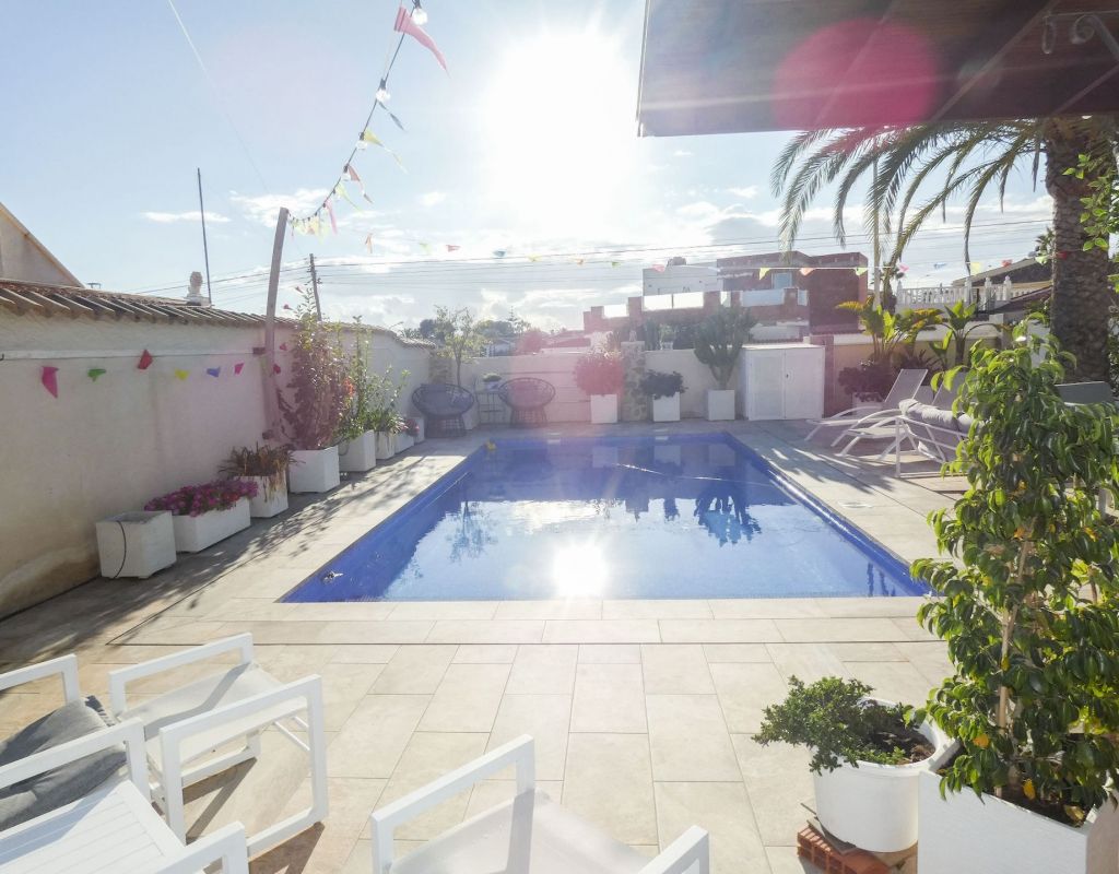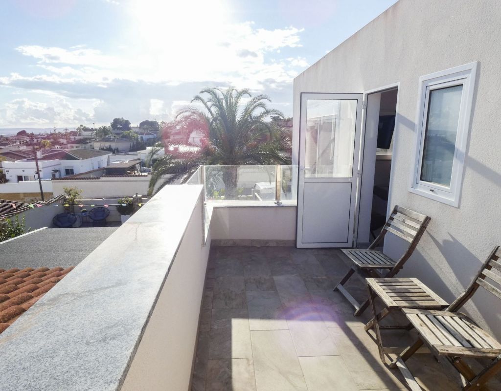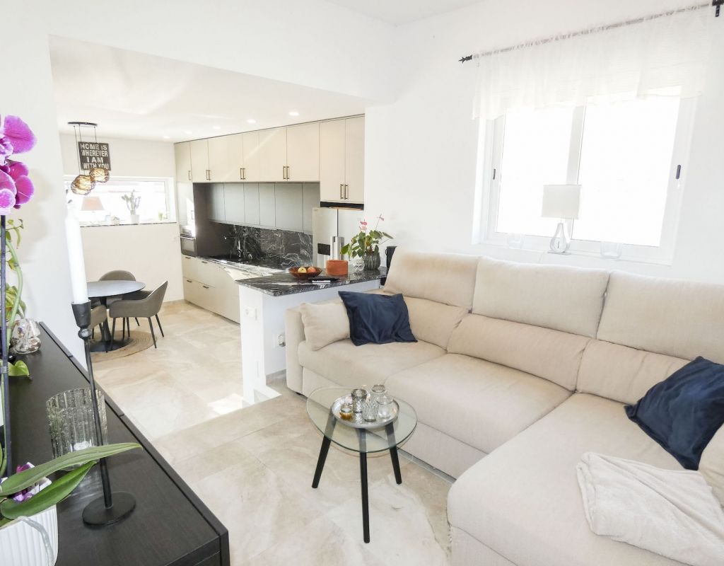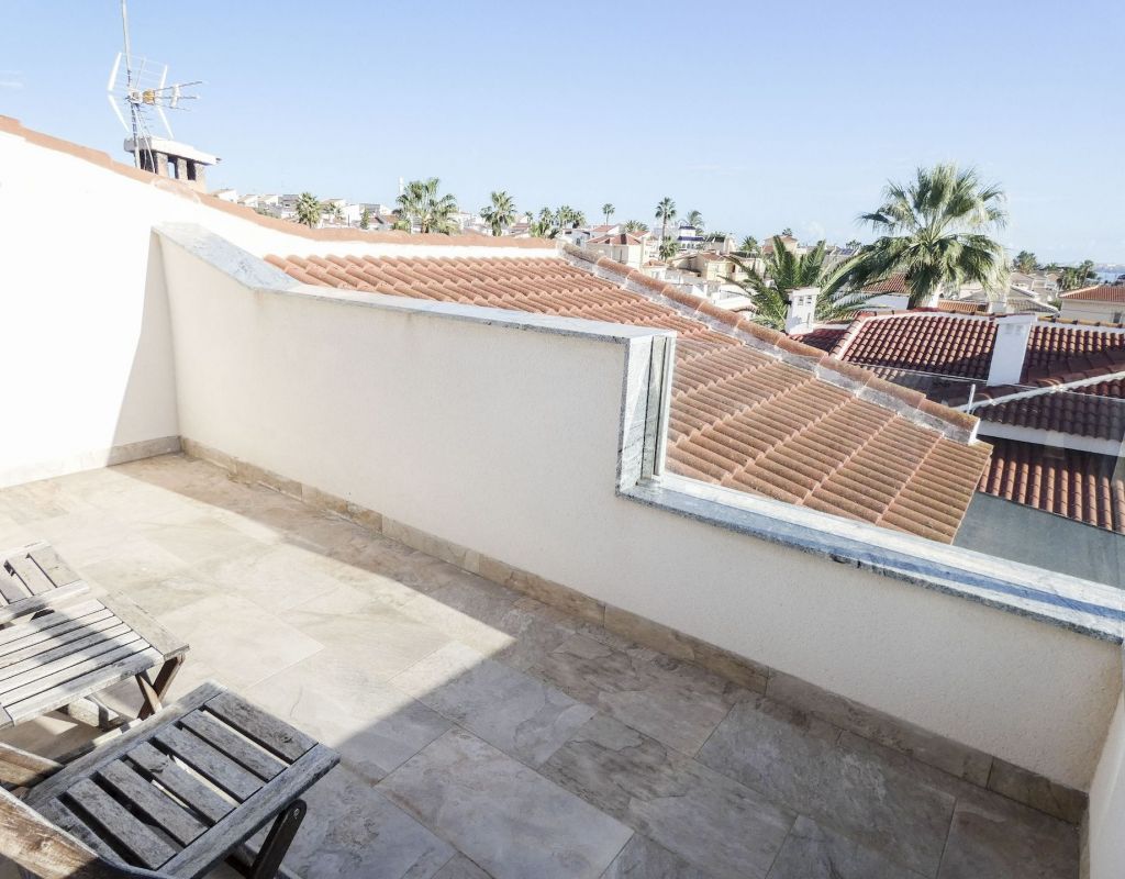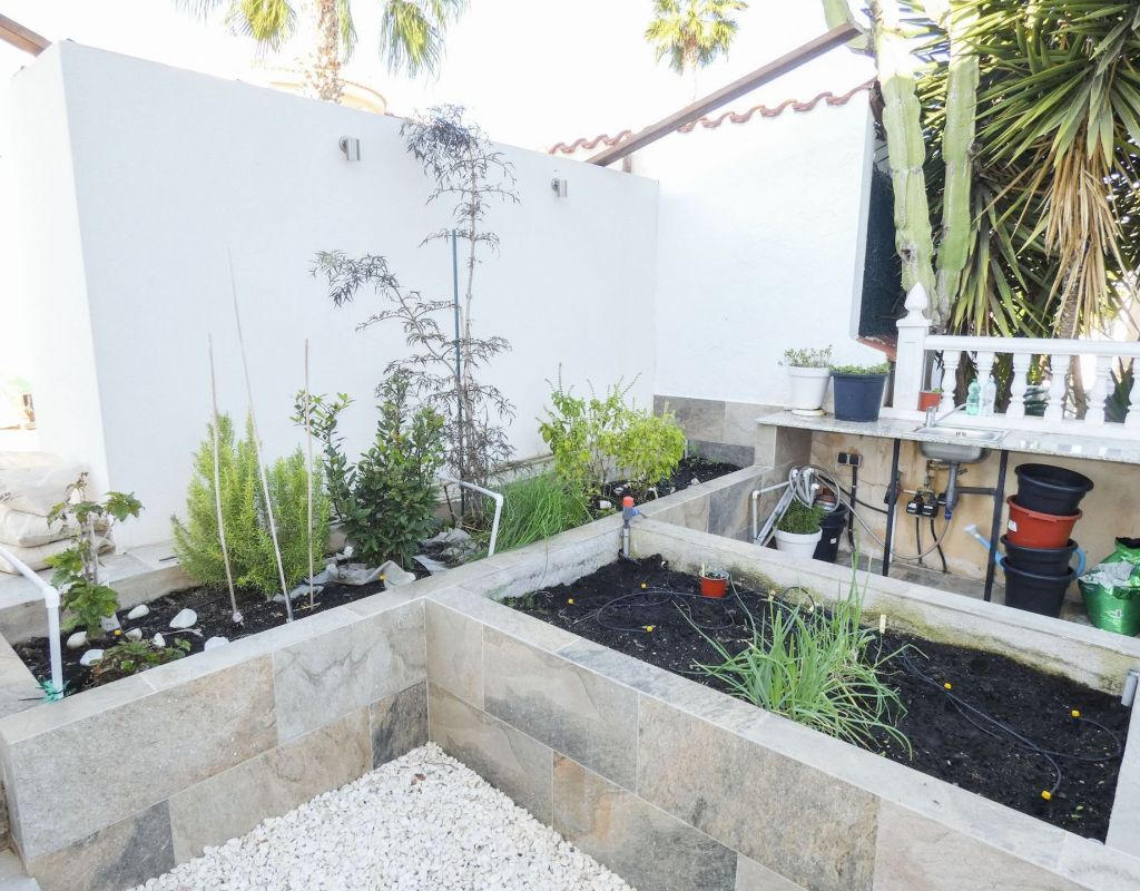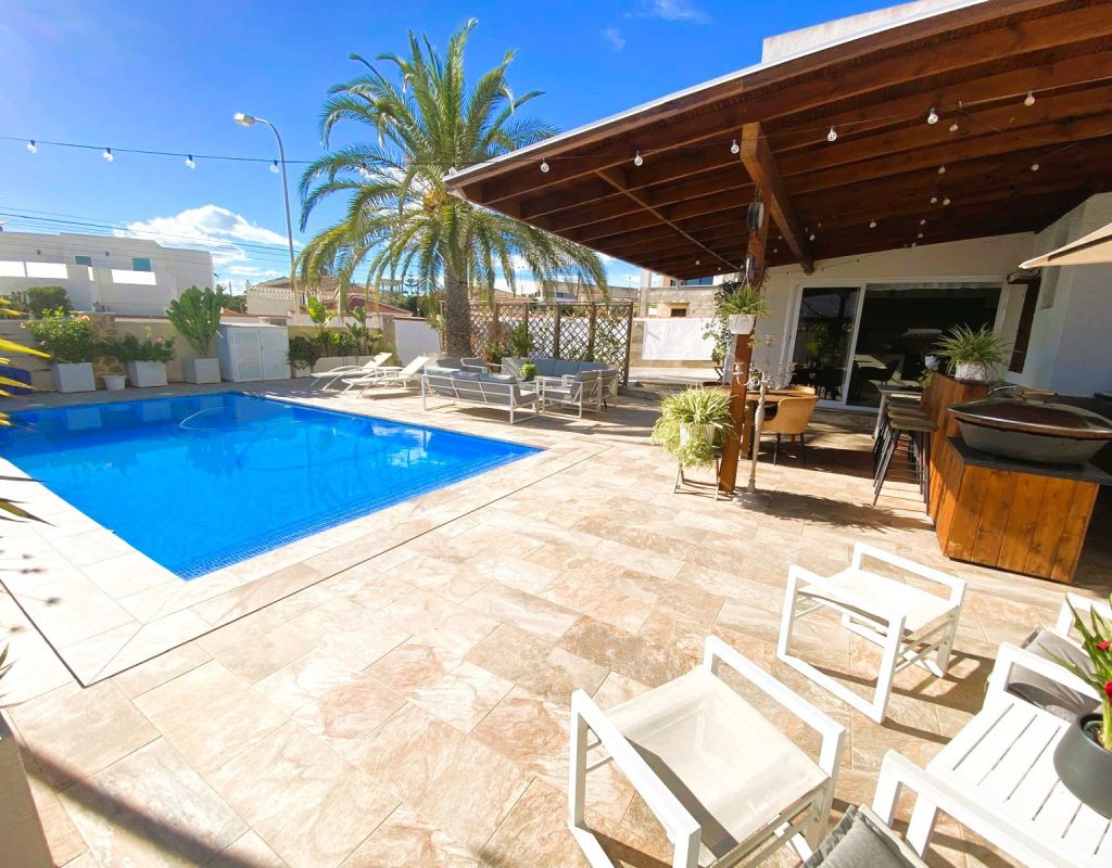 ¿Quieren una villa con todo lo extra? ¡Entonces han encontrado su hogar aquí! Un gran terreno con una distribución bien pensada. Aquí florecen plantas y flores junto a mandarinas, naranjas, kiwis, limones, maracuyás y mangos. Hay cajas de cultivo para verduras y hierbas en la parte trasera junto con dos trasteros. Una gran piscina de agua salada te conduce hacia una cocina exterior (con refrigerador/congelador y lavavajillas) y bar, así como amplios espacios para muebles de comedor, zona de descanso y tumbonas. Aquí la casa también se abre con una cocina espaciosa y moderna, sala de televisión, un gran baño con ducha y 4 dormitorios, de los cuales el dormitorio principal cuenta con vestidor y un baño en suite con ducha. Calefacción por suelo radiante en el baño (en suite) y en la cocina. En la planta superior encontrarás un apartamento adicional con un gran dormitorio, baño con ducha y un balcón con una vista fantástica tanto de los lagos salados como del mar. Aire acondicionado integrado y dos unidades de aire acondicionado separadas en uno de los dormitorios (actualmente oficina) y en el apartamento de la planta superior. Hay estacionamiento para dos coches en el terreno con una puerta de automóvil automática. Riego automático para macetas y árboles. Entre otros, hay restaurantes, bares, tiendas, un gimnasio y una nueva bodega muy buena a poca distancia, así como el campo de golf Marquesa a dos kilómetros de la casa. ¡Bienvenidos a casa!