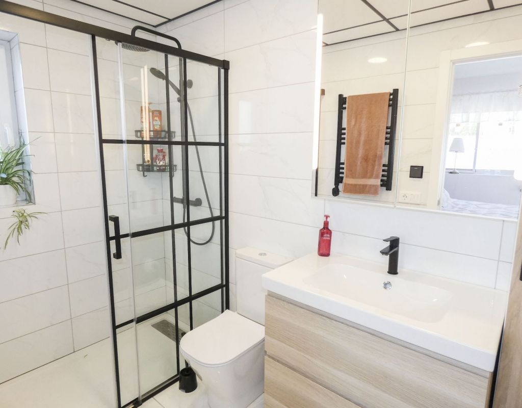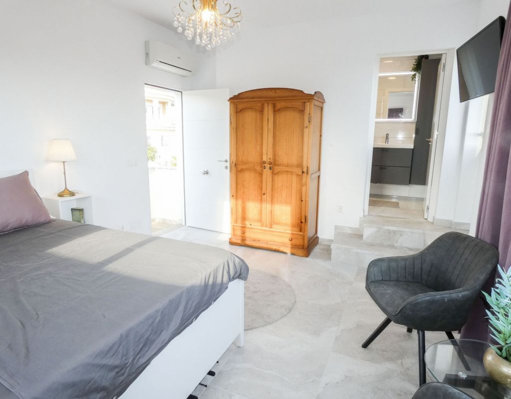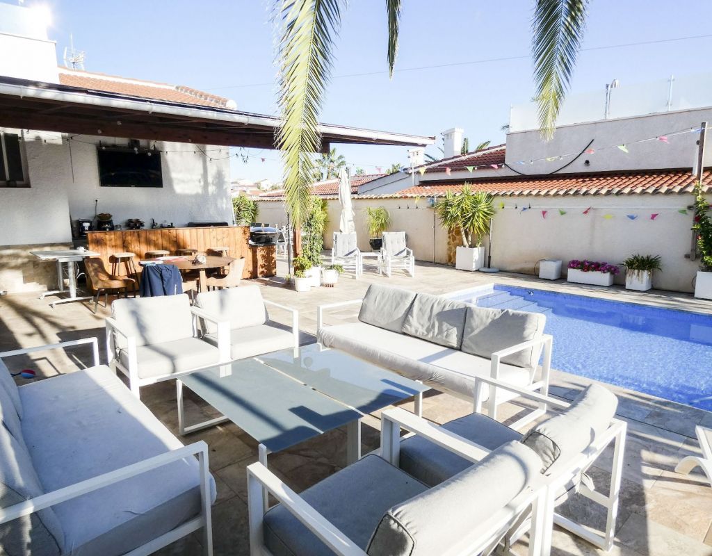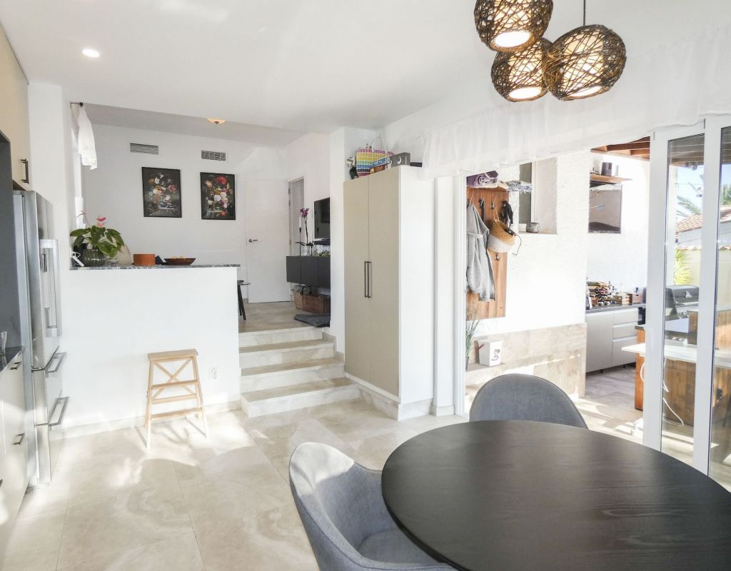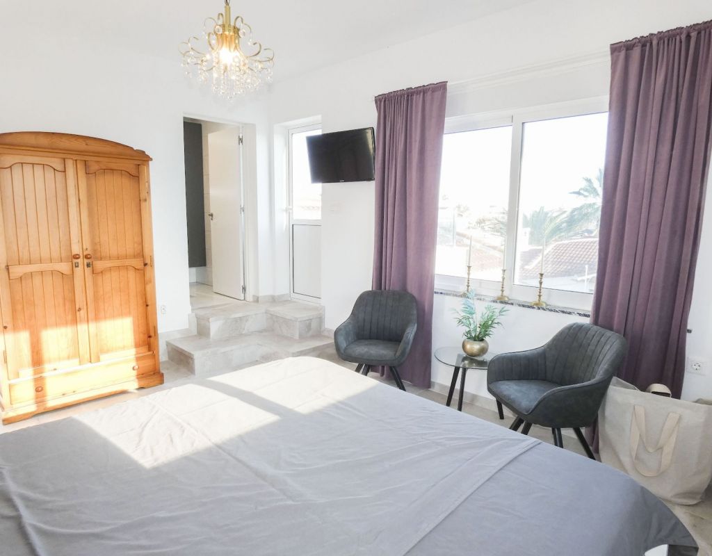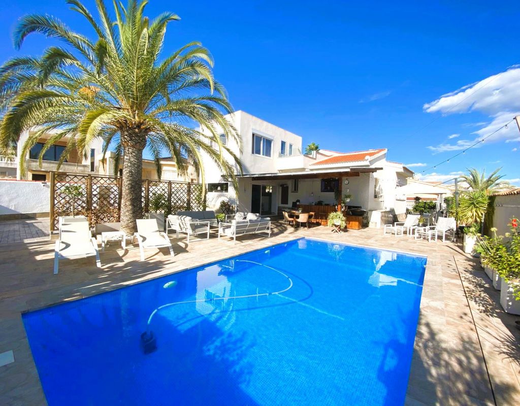 ¿Quieren una villa con todo lo extra? ¡Entonces han encontrado su hogar aquí! Un gran terreno con una distribución bien pensada. Aquí florecen plantas y flores junto a mandarinas, naranjas, kiwis, limones, maracuyás y mangos. Hay cajas de cultivo para verduras y hierbas en la parte trasera junto con dos trasteros. Una gran piscina de agua salada te conduce hacia una cocina exterior (con refrigerador/congelador y lavavajillas) y bar, así como amplios espacios para muebles de comedor, zona de descanso y tumbonas. Aquí la casa también se abre con una cocina espaciosa y moderna, sala de televisión, un gran baño con ducha y 4 dormitorios, de los cuales el dormitorio principal cuenta con vestidor y un baño en suite con ducha. Calefacción por suelo radiante en el baño (en suite) y en la cocina. En la planta superior encontrarás un apartamento adicional con un gran dormitorio, baño con ducha y un balcón con una vista fantástica tanto de los lagos salados como del mar. Aire acondicionado integrado y dos unidades de aire acondicionado separadas en uno de los dormitorios (actualmente oficina) y en el apartamento de la planta superior. Hay estacionamiento para dos coches en el terreno con una puerta de automóvil automática. Riego automático para macetas y árboles. Entre otros, hay restaurantes, bares, tiendas, un gimnasio y una nueva bodega muy buena a poca distancia, así como el campo de golf Marquesa a dos kilómetros de la casa. ¡Bienvenidos a casa!