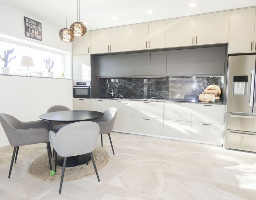 - Combined kitchen and dining area
