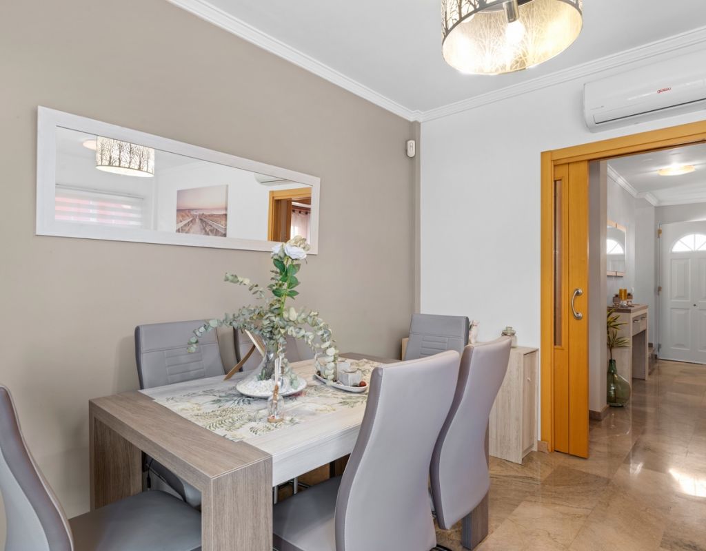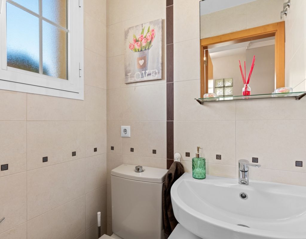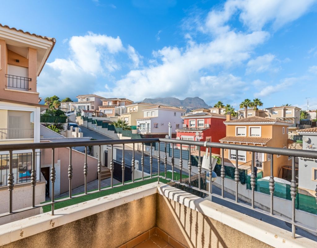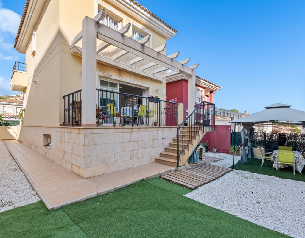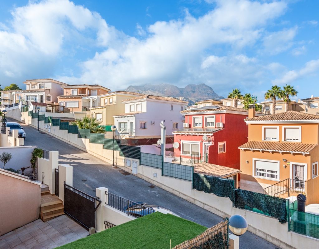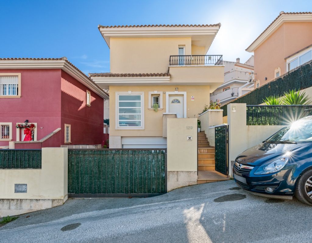 Villa de 3 dormitorios con jardín y sótano en Nou Espai, La Nucía. La villa cuenta con dos plantas, además de un garaje en el sótano. La superficie total construida es de 175 m². En la planta principal se encuentra un recibidor, un salón/comedor, una cocina independiente con lavadero y un aseo de cortesía. Desde el salón se accede directamente al jardín. La primera planta consta de 2 dormitorios que comparten un baño familiar y un dormitorio principal con baño en suite. Desde el dormitorio principal se accede a una pequeña terraza privada. La villa dispone de un amplio sótano de 64 m² con acceso tanto interno como externo. Aquí hay espacio para aparcar y para almacenamiento adicional. Zona exterior La villa está situada en una parcela de 255 m². En el jardín hay una zona de comedor cubierta, un área de barbacoa y una terraza con espacio para más zonas de estar. Desde esta terraza se puede disfrutar de hermosas vistas al mar. También hay espacio para construir una piscina privada en el jardín.