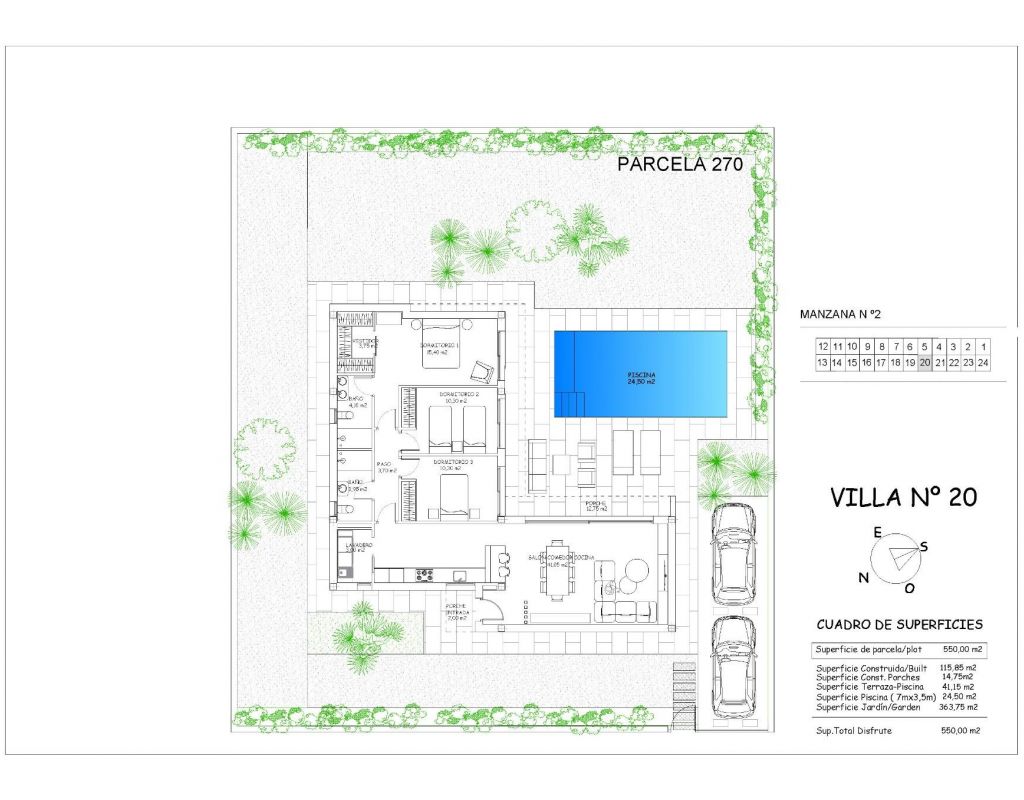 VILLAS MODERNAS EN CALASPARRA CON PISCINA PRIVADA!!! Nuevo desarrollo inmobiliario formado por 215 villas independientes en Calasparra. 170 villas se construirán sobre parcelas de 545 m² y 45 villas sobre parcelas de 1.250m². Viviendas de 2 y 3 dormitorios con piscina privada de 24.5 m2 incluida, acabados modernos y máximas calidades: Ventanas de aluminio negro mate, persianas motorizadas, puerta de entrada a la vivienda acorazada, puertas de interiores lacadas en blanco, sistema de aerotermia para producción de agua caliente, encimera de cuarzo (silestone) en cocina, electrodomésticos incluidos, preinstalación de aire acondicionado por conductos.