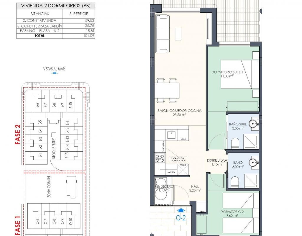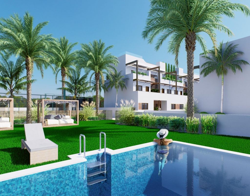 Vida Moderna A Pasos De La Playa De Las Higuericas En Torre De La Horadada Ubicación privilegiada cerca de la costa mediterránea Experimente lo mejor de la vida costera con esta impresionante promoción de obra nueva situada a sólo 150 metros de la playa de Las Higuericas en Torre de la Horadada. Conocido por sus arenas doradas y aguas cristalinas, este pueblo junto a la playa ofrece una mezcla perfecta de relajación y comodidades modernas. Tanto si busca un retiro tranquilo como un estilo de vida vibrante, Torre de la Horadada le ofrece el entorno ideal para la casa de sus sueños. Residencias cuidadosamente diseñadas Elija entre modernos bungalows de planta baja con jardín privado o bungalows de planta alta con amplios solariums. Cada propiedad de 2 dormitorios está diseñada con una estética contemporánea y funcionalidad en mente, ofreciendo: Plazas de aparcamiento privadas. Amplias terrazas para disfrutar al aire libre. Elementos de primera calidad que mejoran el confort y la comodidad. Servicios comunitarios excepcionales El complejo cuenta con una serie de servicios comunes diseñados para mejorar su experiencia de vida: Zonas verdes ajardinadas para relajarse. Una refrescante piscina comunitaria. Una pista de pádel para los amantes del deporte. Cómodo acceso en ascensor desde el aparcamiento subterráneo. Características de primera para un confort moderno Todas las viviendas están equipadas con acabados de alta calidad, entre los que se incluyen: Puertas de entrada de seguridad para mayor tranquilidad. Ventanas con rotura de puente térmico para un mejor aislamiento acústico. Armarios empotrados con iluminación LED. Preinstalación de aire acondicionado por conductos para mayor comodidad durante todo el año. Elegantes sanitarios, espejos y mamparas de ducha de cristal. Persianas eléctricas e iluminación exterior para mayor comodidad. Calentadores de agua aerotérmicos para mayor eficiencia energética. Cómodo acceso a las atracciones locales La ubicación privilegiada de esta urbanización garantiza un fácil acceso a una gran variedad de atracciones y servicios: Playa de Las Higuericas: A sólo 150 metros de distancia para los días de playa sin esfuerzo. Aeropuerto de Murcia: 30 km (aproximadamente 30 minutos en coche). Campo de Golf Lo Romero: 10 km, ideal para los amantes del golf. Centro Comercial Dos Mares: 11 km, que ofrece tiendas, restaurantes y entretenimiento. Puerto de San Pedro del Pinatar: 8 km, perfecto para disfrutar de actividades frente al mar. La casa de sus sueños le espera en Torre de la Horadada Disfrute del estilo de vida único de Torre de la Horadada, donde el diseño moderno se combina con el encanto mediterráneo. No pierda la oportunidad de ser propietario de una vivienda en esta exclusiva comunidad. Póngase en contacto con nosotros hoy mismo para obtener más información o programar una visita.