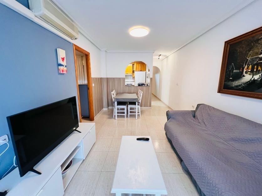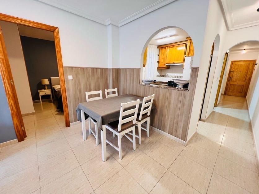 Luminoso piso con piscina y plaza de parking opcional~~Este piso es una oportunidad perfecta para quienes buscan comodidad y estilo en el corazón de Torrevieja. La vivienda cuenta con 2 amplios dormitorios, 1 baño con ducha, cocina americana totalmente equipada y un acogedor salón con acceso directo a un balcón privado. Además, está equipado con aire acondicionado en el salón y el dormitorio principal, asegurando el máximo confort durante todo el año. Se vende completamente amueblado, listo para disfrutar desde el primer día.~~Como opción adicional, se puede adquirir una plaza de parking en el mismo edificio por 9.000 €, lo que agrega un extra de comodidad y valor a la propiedad.~~Situado en una de las zonas más demandadas de Torrevieja, tendrás a tu alcance una amplia variedad de servicios como supermercados, tiendas, restaurantes y centros médicos. Su céntrica ubicación también permite disfrutar de la vibrante vida local, con las playas y el paseo marítimo a pocos minutos a pie.~~Ya sea como residencia permanente o inversión, este piso destaca por su ubicación estratégica y su excelente relación calidad-precio. No dejes pasar esta oportunidad y ven a visitarlo.