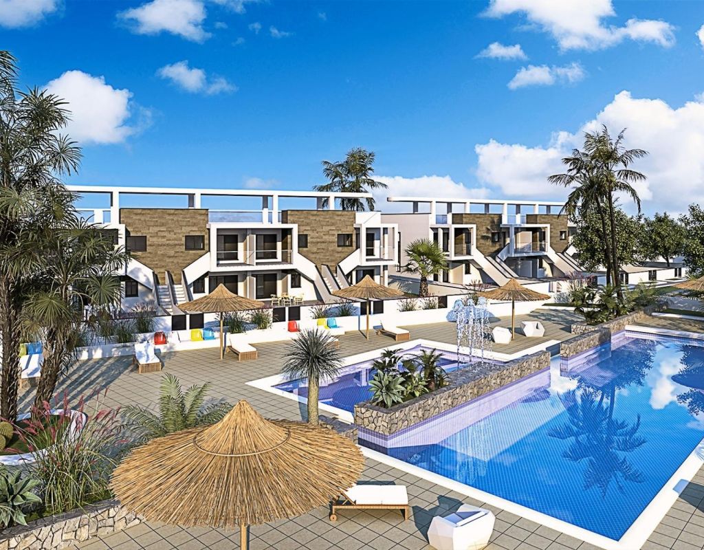 Apartamentos y Bungalows de Obra Nueva en Mil Palmeras Moderno complejo residencial en una ubicación privilegiada Descubra un nuevo e impresionante complejo residencial en la encantadora zona costera de Mil Palmeras, que ofrece una selección de apartamentos y bungalows de alta calidad diseñados para satisfacer los estándares de vida modernos. Situado a sólo 600 metros de las playas de Mil Palmeras, este complejo combina confort, estilo y comodidad. Amplios y elegantes apartamentos y bungalows Elija entre apartamentos de 2 o 3 dormitorios, cada uno con 2 cuartos de baño y amplias terrazas. También puede optar por bungalows de 2 dormitorios y 2 baños, disponibles en planta baja con jardín privado o en planta alta con solárium exclusivo. Acabados de alta calidad para una vida moderna Esta promoción ofrece características y acabados excepcionales: Carpintería exterior de PVC con rotura de puente térmico y doble acristalamiento «Climalit» de baja emisividad. Puertas de entrada blindadas para mayor seguridad. Baños equipados con lavabos, espejos y grifería moderna. Armarios empotrados con iluminación interior LED, cajones y barras de colgar. Suministro de agua caliente mediante aerotermia para una mayor eficiencia energética. Preinstalación de aire acondicionado y calefacción por conductos en salones y dormitorios. Servicios comunitarios exclusivos El complejo está totalmente cerrado y cuenta con: Preciosos jardines comunitarios. Piscinas de agua cristalina para los residentes. Plazas de aparcamiento subterráneo opcionales y trasteros para mayor comodidad. Ubicación privilegiada en Mil Palmeras Situada entre Campoamor y Torre de la Horadada, esta urbanización ofrece fácil acceso a los servicios locales, colegios, restaurantes e instalaciones deportivas abiertas todo el año. Mil Palmeras es conocida por su encantadora plaza del pueblo y su vibrante «callejón de los restaurantes», que ofrece diversas cocinas internacionales. Para los entusiastas de la naturaleza, el Parque Natural de Lo Monte, una reserva de aves protegida, y el Parque Natural de Río Seco ofrecen lugares perfectos para practicar senderismo y relajarse. Proximidad a los principales puntos de interés Aeropuerto Internacional de Murcia: 40 km (aprox. 45 minutos). Aeropuerto de Alicante: 75 km (aprox. 45 minutos). Campos de golf más cercanos: A menos de 10 km. Centros comerciales: A 8 km de Zenia Boulevard. Puertos deportivos: A 5 km de Torre de la Horadada. La casa de sus sueños le espera No pierda la oportunidad de tener una propiedad en este excepcional complejo residencial. Tanto si busca una casa de vacaciones como una residencia permanente, esta urbanización en Mil Palmeras lo tiene todo. Póngase en contacto con nosotros hoy mismo para obtener más información o para concertar una visita.