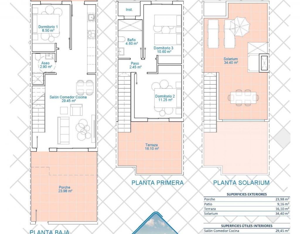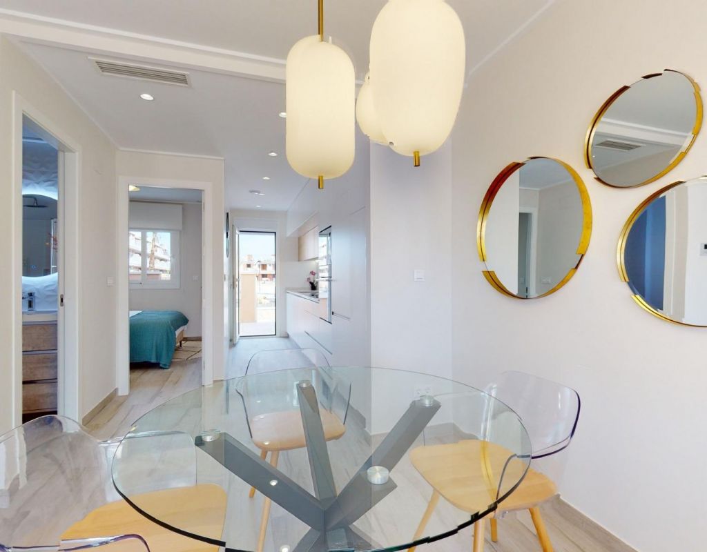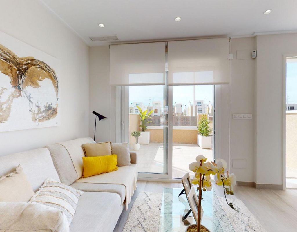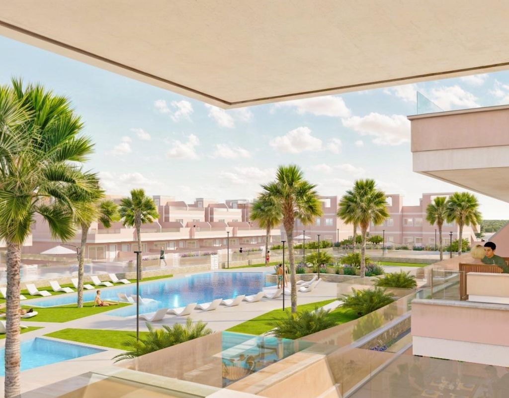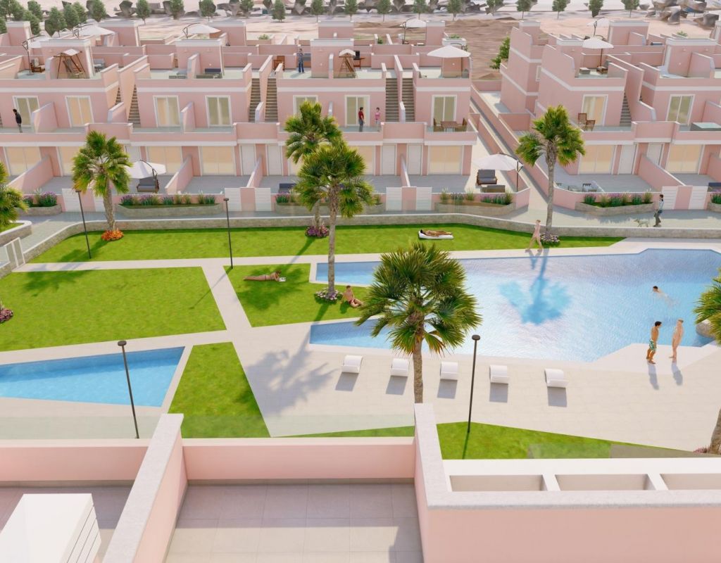 Exclusivo Residencial de Obra Nueva en Pilar de la Horadada, Costa Blanca Viviendas Modernas Cerca del Mar Descubra este nuevo complejo residencial en Pilar de la Horadada, una ubicación privilegiada en la Costa Blanca. A solo 2 km de la playa, este proyecto ofrece una amplia variedad de viviendas de 3 dormitorios y 2 baños, con aparcamiento privado incluido en el precio. El residencial cuenta con amplias zonas comunes, incluyendo una piscina comunitaria, jardines paisajísticos y una zona de juegos infantiles, ideales para el disfrute de toda la familia. Diferentes Tipologías para Adaptarse a su Estilo de Vida Esta promoción ofrece diversas opciones de vivienda: Plantas bajas con jardín privado. Apartamentos en planta intermedia con amplias terrazas. Áticos con solárium privado. Bungalows en planta baja con jardín privado. Bungalows en planta alta con jardín y solárium privado. Adosados y pareados con jardín y solárium. Todas las viviendas han sido diseñadas con un estilo moderno y funcional, utilizando materiales de alta calidad y acabados contemporáneos. Equipamiento y Calidades Las viviendas cuentan con: Preinstalación de aire acondicionado por conductos. Carpintería exterior de aluminio con rotura de puente térmico y doble acristalamiento. Puerta de acceso acorazada para mayor seguridad. Sistema de aerotermia para producción eficiente de agua caliente. Armarios empotrados con iluminación LED. Muebles de baño y mamparas incluidos. Pilar de la Horadada: Un Lugar Privilegiado para Vivir Pilar de la Horadada es un municipio costero en el extremo sur de la Costa Blanca, con un clima excepcional y una excelente calidad de vida. Su animada calle principal ofrece una amplia variedad de tiendas, supermercados, restaurantes y servicios esenciales. A solo 5 minutos en coche, encontrará las impresionantes playas de Torre de la Horadada y Mil Palmeras, con arena dorada y un encantador paseo marítimo. Además, la zona cuenta con carriles bici, rutas de senderismo y múltiples actividades deportivas. Distancias a Puntos Clave Campo de golf Lo Romero € 5 km (10 minutos en coche). Aeropuerto de Corvera (Murcia) € 40 km (40 minutos en coche). Aeropuerto de Alicante € 55 km (55 minutos en coche). Centro Comercial Zenia Boulevard € 15 km (15 minutos en coche). Puerto Deportivo Torre de la Horadada € 3 km (5 minutos en coche). Solicite Más Información Hoy Mismo No deje pasar esta oportunidad de adquirir una vivienda de obra nueva en una de las mejores zonas de la Costa Blanca. Contáctenos ahora para recibir más detalles y concertar una visita.