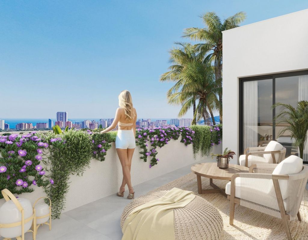 Villas de Obra Nueva en Finestrat € Lujo, Naturaleza y Vistas al Mar Exclusivo Residencial en Sierra Cortina, Benidorm-Finestrat Descubra este nuevo residencial de lujo en Sierra Cortina, Finestrat, una de las zonas más exclusivas de la Costa Blanca. Esta promoción ofrece 30 villas de diseño vanguardista, con opciones de villas pareadas e independientes, todas ellas con espectaculares vistas al mar y a la montaña. Ubicado en un entorno tranquilo, pero cerca de todas las comodidades, este residencial es ideal para quienes buscan privacidad, confort y acceso a las mejores playas y servicios de Benidorm. Diseño Moderno y Espaciosas Viviendas Las villas han sido diseñadas con un estilo contemporáneo, optimizando la luz natural y las vistas panorámicas. Podrá elegir entre varios modelos con opciones de 2 a 4 dormitorios, y algunos diseños incluyen sótano con patio inglés, permitiendo la posibilidad de añadir dormitorios adicionales. Cada vivienda cuenta con: 2 plantas con terrazas privadas con vistas al mar. Piscina privada y jardín para su disfrute. Garaje en la parcela, con espacio para su vehículo. Cocina de concepto abierto integrada en el salón. Armarios empotrados y espacios de almacenamiento. Lavadero para mayor comodidad. Ubicación Privilegiada en la Costa Blanca Este exclusivo residencial se encuentra en Sierra Cortina, una de las áreas más prestigiosas de la Costa Blanca, rodeada de naturaleza y con acceso a servicios de primer nivel. A solo 3 km del mar, esta urbanización está ubicada junto a dos campos de golf y cerca del parque temático Terra Mítica y el lujoso hotel Asia Gardens. Además, cuenta con conexión rápida con las principales carreteras y aeropuertos de la región. Distancias a los Principales Puntos de Interés Playas de Benidorm € 3 km. Campos de Golf Villaitana y Sierra Cortina € 2 km. Centro Comercial La Marina € 2 km. Parque Temático Terra Mítica € 1,5 km. Aeropuerto de Alicante € 40 km. Viva en una Zona Exclusiva con Todas las Comodidades Finestrat es un encantador municipio de la Marina Baixa, situado a pocos minutos de Benidorm. Su combinación de montaña y mar, junto con su infraestructura moderna, la convierten en una ubicación inmejorable para vivir o invertir. No pierda la oportunidad de adquirir una villa de obra nueva en esta ubicación privilegiada. Contáctenos hoy mismo para más información y para programar una visita.
