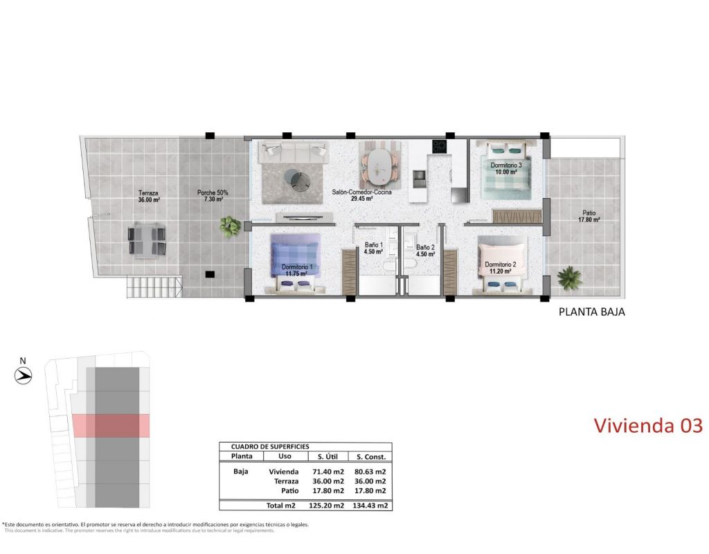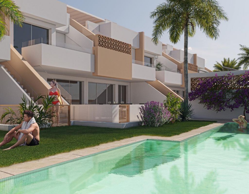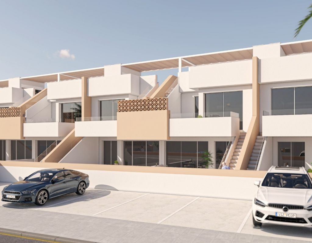 Bungalows de nueva construcción en Pilar de la Horadada, cerca de la playa y del centro de la ciudad Vida contemporánea en el corazón de la Costa Blanca Bienvenido a un complejo residencial boutique de 12 bungalows de nueva construcción situado en Pilar de la Horadada, una vibrante ciudad costera en el extremo sur de la Costa Blanca. Esta ubicación privilegiada ofrece la combinación perfecta de la tranquila vida mediterránea y la comodidad, con todos los servicios esenciales, tiendas, restaurantes y comodidades a poca distancia. Las hermosas playas de arena de Torre de la Horadada y Mil Palmeras están a solo 3 km, ideales para relajarse en la playa o practicar deportes acuáticos. Opción de bungalows en planta baja o en planta superior Este exclusivo complejo ofrece dos tipos de viviendas modernas que se adaptan a su estilo de vida: Bungalows en planta baja con 3 dormitorios, 2 baños y amplias terrazas privadas delantera y trasera con acceso directo a la piscina y los jardines comunitarios. Bungalows en la planta superior con 2 dormitorios, 2 baños y un amplio solárium privado en la azotea, con cocina de verano, pérgola y aseo de invitados. Todas las viviendas cuentan con luminosas zonas de estar de planta abierta, cocinas totalmente equipadas, aire acondicionado por conductos y aparcamiento privado. Los dormitorios incluyen armarios empotrados y los baños cuentan con calefacción por suelo radiante para mayor comodidad. Características premium para una vida mediterránea moderna Las viviendas están diseñadas con acabados de alta calidad y características prácticas, que incluyen: Puerta principal blindada con acabado de aluminio Persianas eléctricas en salón y dormitorios Sistema de agua caliente aerotérmica Electrodomésticos de cocina de BALAY o equivalente Soláriums en la azotea con césped artificial, ducha exterior, iluminación y cocina de verano completa con lavavajillas, nevera pequeña, placa de inducción y extractor. Ubicación estratégica con excelente conectividad Pilar de la Horadada está bien conectada con los principales puntos de interés de la Costa Blanca y la Costa Cálida: Playas (Torre de la Horadada / Mil Palmeras) - 3 km Campo de golf Lo Romero - 6 km Aeropuerto de Corvera (Murcia) - 40 km Aeropuerto de Alicante - 55 km Centro comercial Zenia Boulevard - 14 km Puerto deportivo de San Pedro del Pinatar: 11 km Su hogar ideal bajo el sol Tanto si busca una escapada de vacaciones, una residencia para todo el año o una inversión de alquiler, estos bungalows en Pilar de la Horadada ofrecen una excelente relación calidad-precio en una de las localidades más deseables de la Costa Blanca. Póngase en contacto con nosotros hoy mismo para concertar una visita o solicitar más información.