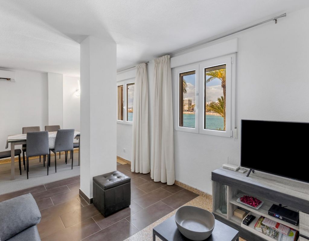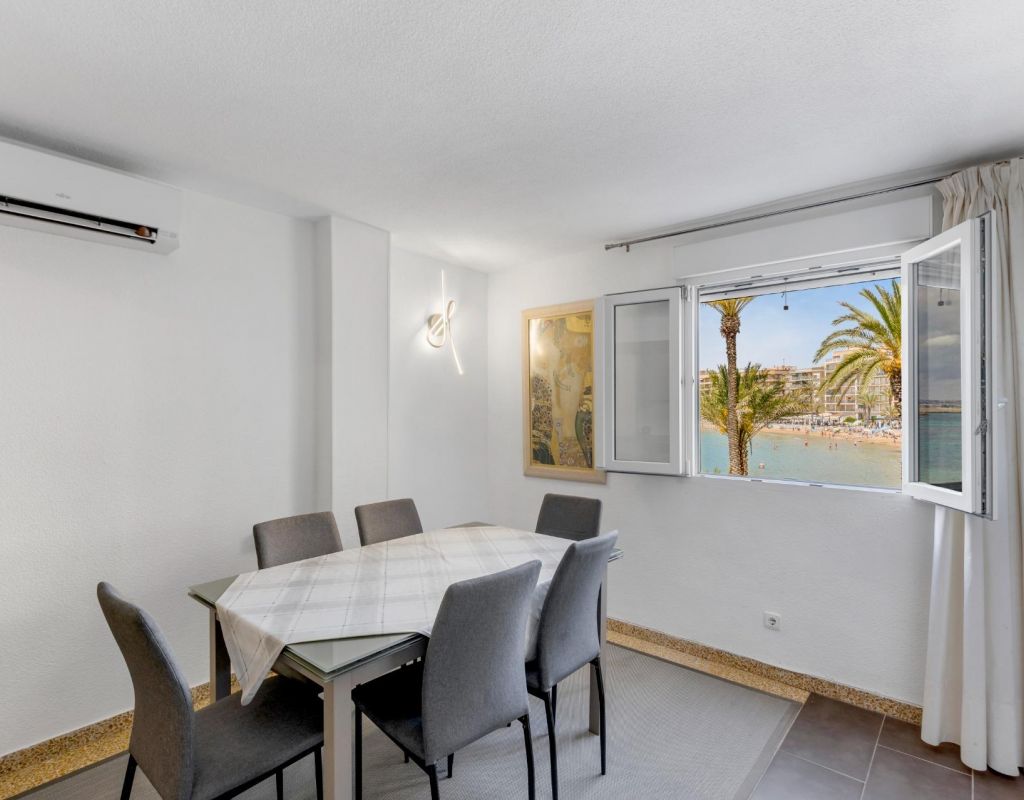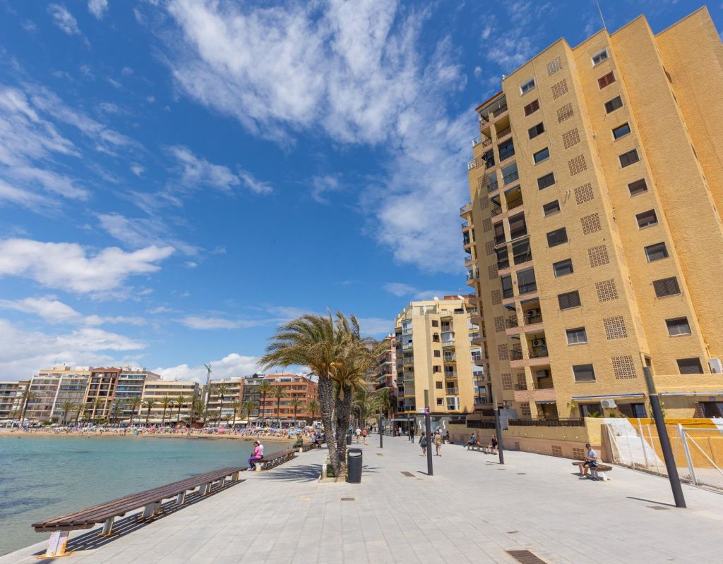 Descubre este fantástico apartamento situado en primera planta, con impresionantes vistas directas a la Playa del Cura. Una vivienda luminosa y espaciosa, ideal tanto como residencia habitual como para disfrutar de tus vacaciones junto al mar.~~La propiedad se compone de tres amplios dormitorios, perfectos para familias o para recibir invitados con total comodidad, y dos cuartos de baño completos. La zona de día está formada por un salón con dos grandes ventanas frontales, desde donde podrás disfrutar de unas vistas espectaculares al mar, además de una zona de comedor y una cocina funcional y bien distribuida.~~Uno de los grandes atractivos de esta vivienda es su terraza semitechada orientada al este, ideal para disfrutar del sol de la mañana mientras desayunas con el sonido del mar de fondo.~~La ubicación es inmejorable, a solo unos pasos de la arena, en una zona con todos los servicios a mano: restaurantes, tiendas, supermercados y transporte público.~~¡Una oportunidad única de vivir frente al mar en una de las playas más emblemáticas de Torrevieja!~~“El precio del inmueble no incluye, ni los gastos de notaría y registro de la propiedad (que están sujetos a aranceles y varían dependiendo del precio de escrituración), ni los impuestos (que en la Comunitat Valenciana varían dependiendo del precio del inmueble y de las características personales del comprador)