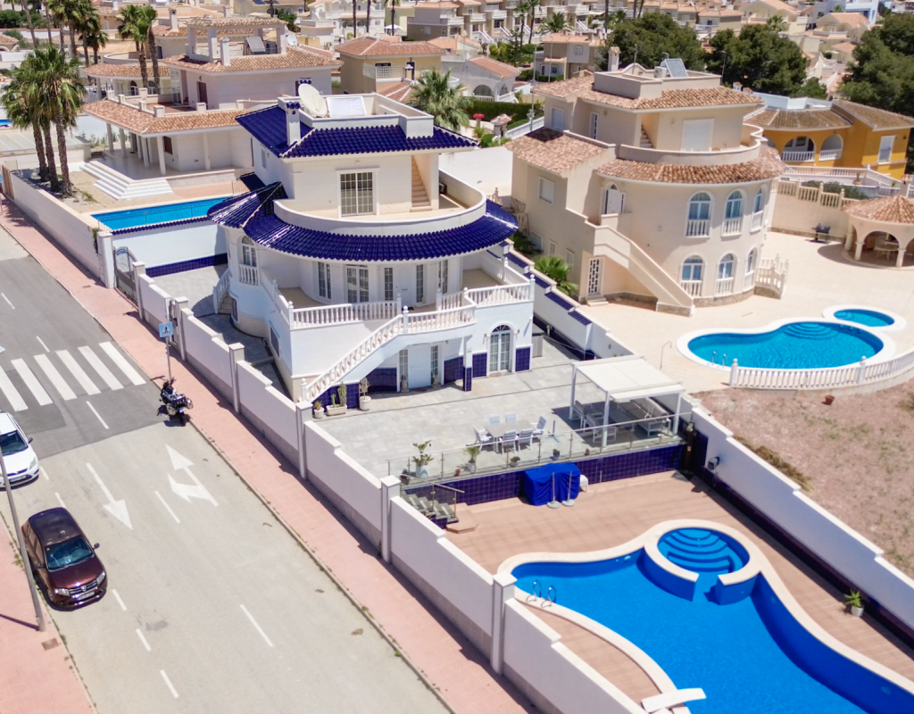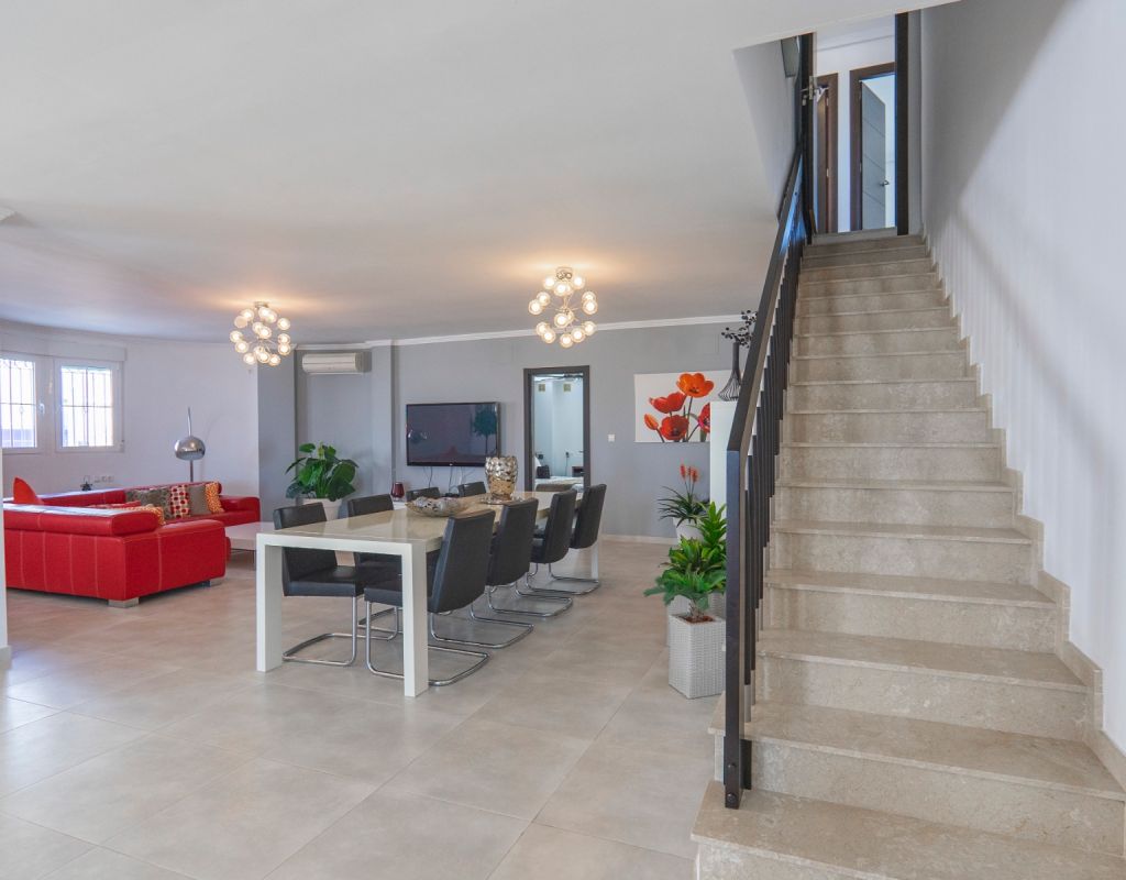 Exclusiva de Petra Hönig, esta majestuosa villa independiente se encuentra en la prestigiosa zona de La Fiesta, en Ciudad Quesada, y ofrece unas impresionantes vistas despejadas a las salinas — perfecta para quienes buscan lujo, amplitud y privacidad. Construida sobre una generosa parcela de 782 m² y con 490 m² construidos, la propiedad se distribuye en varios niveles y dispone de 6 amplios dormitorios y 5 cuartos de baño, lo que la hace ideal para familias numerosas, invitados o como inversión de alquiler de alta gama. Incluye amplias zonas de estar y comedor, una piscina privada, jardines paisajísticos, garaje grande y aparcamiento para varios vehículos, además de varias terrazas soleadas con vistas privilegiadas. Ubicada cerca del Campo de Golf La Marquesa, comercios, restaurantes y a pocos minutos en coche de las playas de Guardamar del Segura, esta villa representa una oportunidad única de adquirir una residencia de lujo en la Costa Blanca. Características destacadas: 6 dormitorios | 5 baños 490 m² construidos | Parcela de 782 m² Vistas espectaculares a las salinas Piscina privada y varias terrazas Amplio garaje y aparcamiento privado Acabados de alta calidad Ideal como residencia permanente, casa de vacaciones o inversión Cerca de golf, playas y todos los servicios Contácte con Petra Hönig hoy mismo para organizar una visita privada a esta exclusiva propiedad.