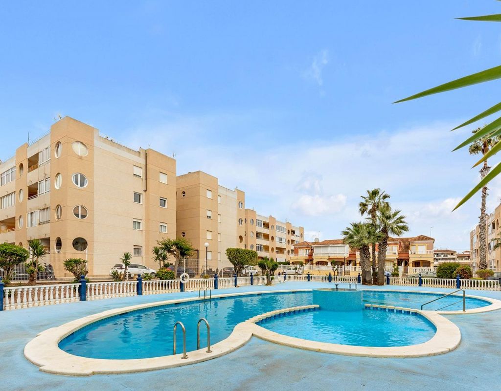 Se vende encantador apartamento de 2 dormitorios y 1 baño, con cocina abierta, muy luminoso y funcional. Dispone de una amplia terraza de aproximadamente 15 m2, ideal para comidas al aire libre, tomar el sol o simplemente relajarse con vistas despejadas.~~Ubicado en la Avenida Robleda, en el tranquilo y demandado barrio de San Luis, una zona residencial consolidada con todos los servicios cerca: supermercados, restaurantes, centro de salud, transporte público, y a solo 10 minutos en coche de las playas de La Mata y Los Locos.~~El apartamento forma parte de un residencial cerrado con piscina comunitaria, vigilancia 24h y acceso directo al Parque Natural de La Mata, un entorno privilegiado para caminar, hacer ciclismo o simplemente disfrutar de la naturaleza.~~Ideal como vivienda habitual, casa de vacaciones o inversión para alquiler turístico gracias a su excelente ubicación y servicios.~~“El precio del inmueble no incluye, ni los gastos de notaría y registro de la propiedad (que están sujetos a aranceles y varían dependiendo del precio de escrituración), ni los impuestos (que en la Comunidad Valenciana varían dependiendo del precio del inmueble y de las características personales del comprador). Los metros del anuncio puede que no se correspondan con los reales"~~