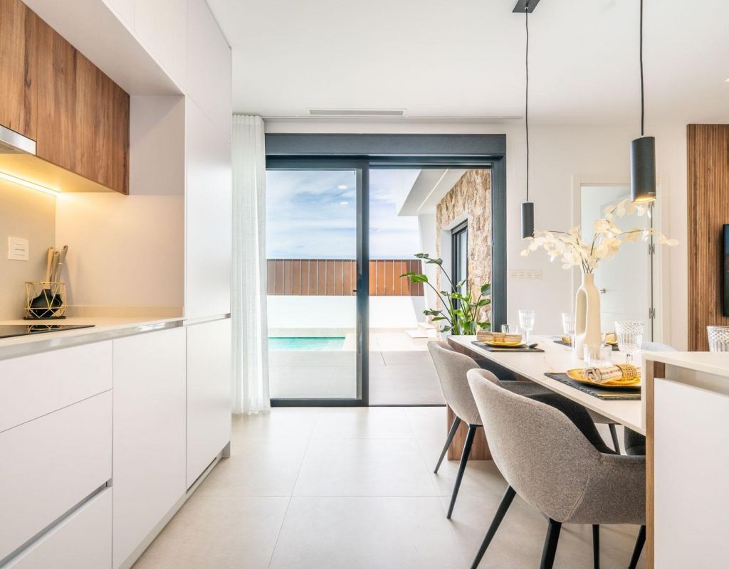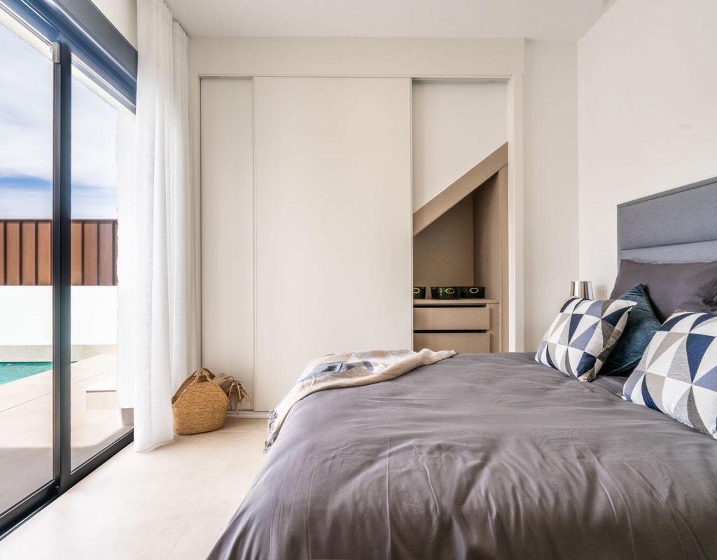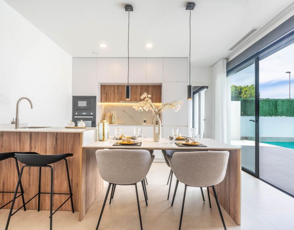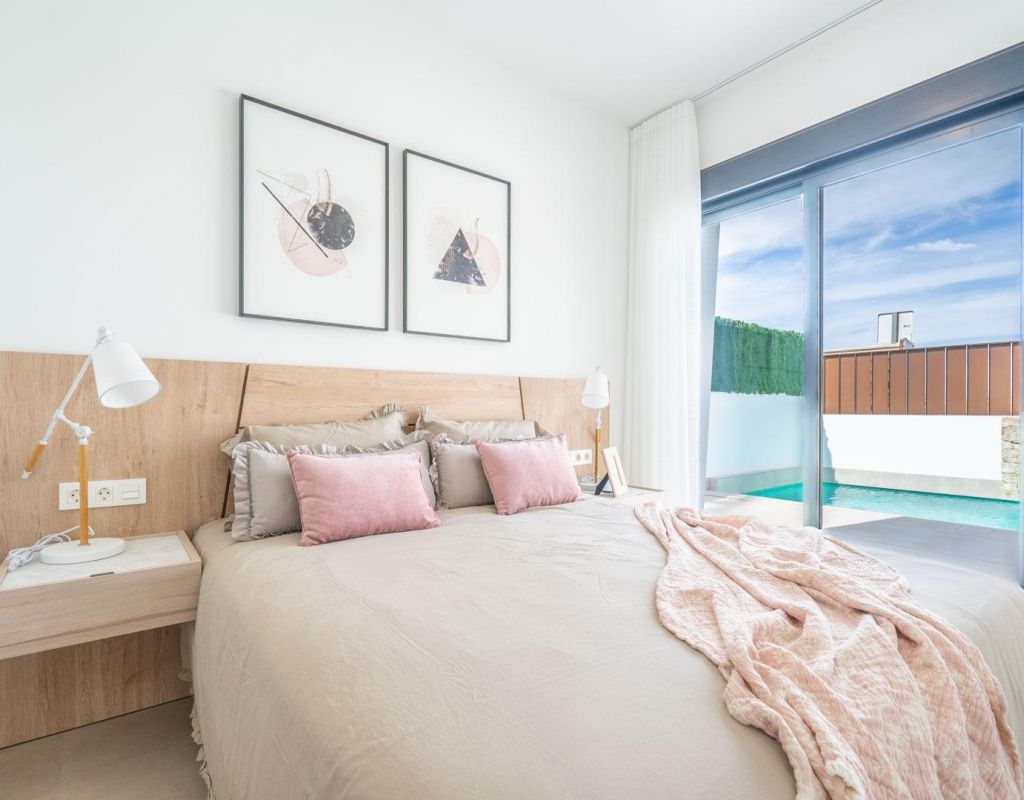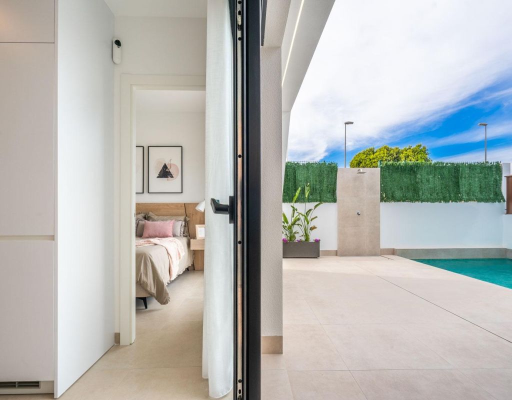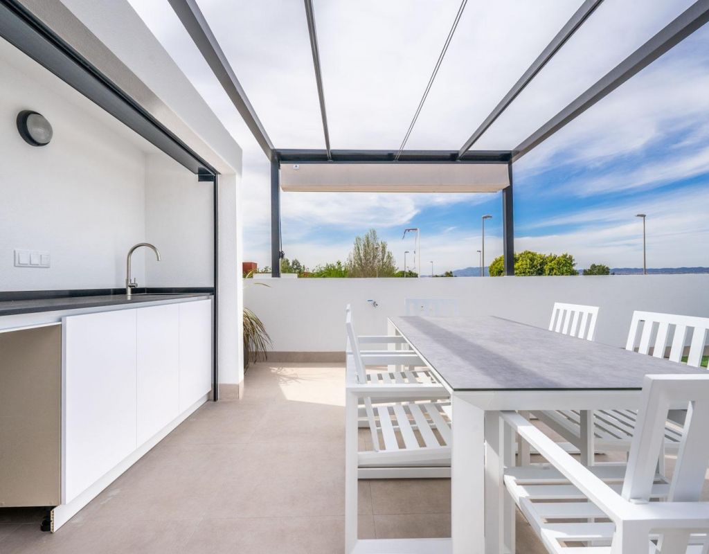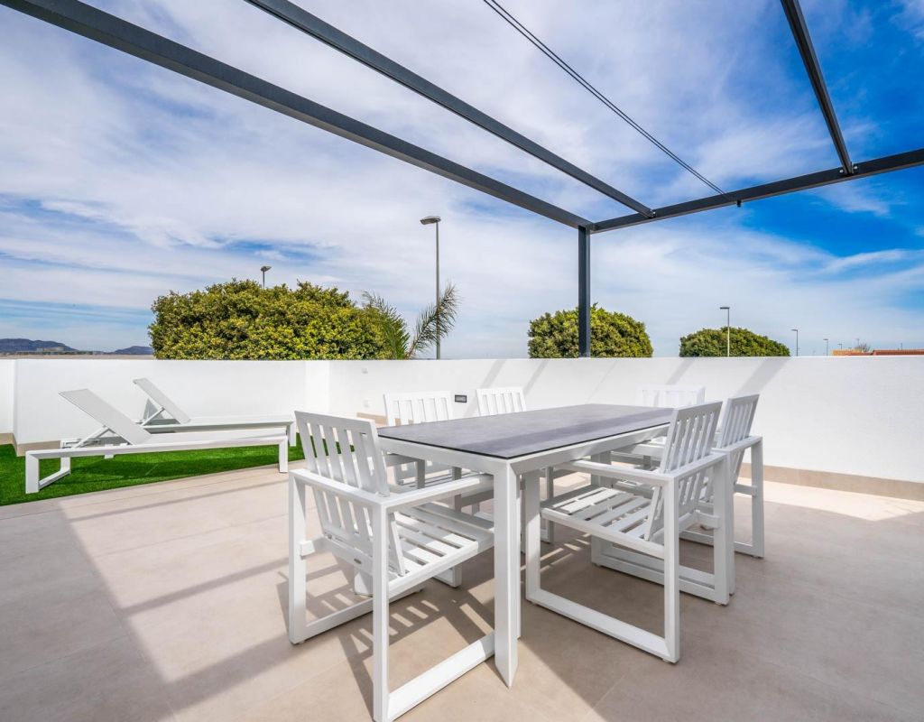 Villas independientes de nueva construcción con piscina privada y solárium en Roldán, Torre-Pacheco Villas modernas de una sola planta con diseño exclusivo Estas villas de 3 dormitorios y 2 baños, de nueva construcción, situadas en Roldán, Torre-Pacheco, ofrecen un diseño contemporáneo y ecológico, pensado para el confort y el estilo de vida. Construidas en una sola planta, cada vivienda cuenta con un amplio salón-comedor diáfano con una cocina moderna totalmente equipada, que se comunica a la perfección con amplias terrazas y un solárium en la azotea. Las villas están cuidadosamente diseñadas para combinar funcionalidad y estética, con fachadas revestidas de piedra en ángulo, acabados elegantes y mucho espacio exterior para disfrutar del sol mediterráneo durante todo el año. Espacio exterior privado y características de primera calidad Cada villa cuenta con: Piscina privada y ducha exterior Solárium en la azotea con amplio espacio para tomar el sol o crear una zona chill-out Terraza y zonas ajardinadas en la planta baja Entrada privada para aparcamiento fuera de la vía pública Paquete de iluminación LED para interior y exterior Sistema de aire acondicionado preinstalado El dormitorio principal incluye un baño en suite, mientras que los dos dormitorios adicionales comparten un baño familiar, todos ellos diseñados con un toque contemporáneo y acabados de alta calidad. Ubicación ideal cerca de playas y golf Roldán es un encantador pueblo español en el municipio de Torre-Pacheco, conocido por su ambiente tradicional y su completa oferta de servicios diarios, que incluye supermercados, restaurantes, centros de salud y colegios. La ubicación ofrece proximidad a varios lugares de interés: Aeropuerto de Corvera (RMU) - 15 km Playas del Mar Menor y del mar Mediterráneo - 20 km Campos de golf (La Torre Golf y Las Terrazas de La Torre): a menos de 4 km Centro de Cartagena: a 32 km Centro comercial Zenia Boulevard: a 35 km Puerto deportivo de Los Alcázares: a 22 km Tanto si busca una casa de vacaciones, una residencia permanente o una sólida inversión para alquilar, esta ubicación ofrece fácil acceso a las atracciones de la costa, a instalaciones deportivas y a las comodidades de la ciudad. Su nueva vida al sol le espera No pierda la oportunidad de adquirir una de estas elegantes villas nuevas en Roldán. Póngase en contacto con nosotros hoy mismo para obtener más información, concertar una visita o asegurarse su nueva vivienda en la Costa Cálida antes de que se agoten.