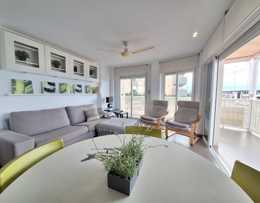 ¡Descubre este maravilloso apartamento en la zona de Gran Playa, Santa Pola! Este encantador piso reformado en primera línea ofrece unas impresionantes vistas al mar.Con una superficie de 91 m², cuenta con 3 amplios dormitorios y un baño completo. La cocina está perfectamente equipada y el salón-comedor es el lugar ideal para relajarte con familia y amigos.La joya de esta propiedad es su terraza en esquina, desde donde podrás contemplar la hermosa bahía mientras disfrutas del sol. Con orientación sureste, cada rincón se llena de luz natural. Además, el aire acondicionado en todas las estancias garantiza un ambiente fresco en verano.Ubicado a tan solo 20 metros de la playa, este piso te ofrece la oportunidad de vivir junto al mar. La plaza de parking propia incluida en el precio es un gran añadido, brindando comodidad y seguridad para tu vehículo. Aunque se encuentra en la primera planta sin ascensor, la cercanía a la playa y las vistas hacen que cada escalón valga la pena.No dejes pasar esta oportunidad única de adquirir un inmueble en una de las mejores ubicaciones de Santa Pola. ¡Ven a visitarlo y enamórate!*** Este anuncio puede contener errores. La información se muestra a título informativo, no comprometiendo contractualmente a la inmobiliaria. Tanto los datos, como las imágenes, vídeos y planos, si los hubiera, pueden estar sujetos a cambios. ***