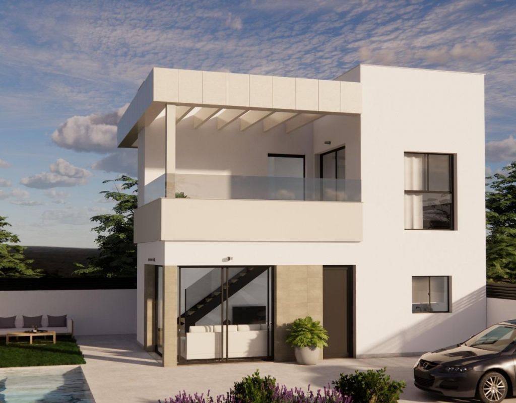 Villas modernas con piscina privada en Vistabella Golf Resort, Orihuela Villas de nueva construcción en el corazón de la Costa Blanca Golf Descubra esta exclusiva urbanización de 42 villas de nueva construcción, situada en el prestigioso Vistabella Golf Resort, en el municipio de Orihuela. Estas modernas viviendas ofrecen una combinación perfecta de lujo, comodidad y vida al aire libre, a pocos pasos de un campo de golf de 18 hoyos y de todos los servicios esenciales. Situado en un entorno natural tranquilo entre San Miguel de Salinas y Los Montesinos, Vistabella es ideal para los amantes del golf y para aquellos que buscan un estilo de vida de alta calidad bajo el sol del Mediterráneo. Amplias viviendas con características de primera calidad Cada villa está diseñada con una distribución contemporánea en dos plantas, con 3 dormitorios y 2 baños. La primera planta cuenta con una terraza descubierta y hay un solárium en la azotea disponible con un coste adicional. Características principales: Piscina privada incluida en todas las villas Aparcamiento en la parcela con puerta motorizada Calefacción por suelo radiante en los baños Duchas a ras de suelo con mamparas de cristal Muebles de baño modernos con espejos e iluminación Cocinas totalmente equipadas con frigorífico integrado, campana extractora, vitrocerámica, horno, lavavajillas y lavadora Persianas motorizadas de aluminio en los dormitorios Cristales Guardian Sun de alto rendimiento en las ventanas Armarios empotrados con cajones en todos los dormitorios Aire acondicionado por conductos preinstalado Puerta principal reforzada con seis puntos de cierre Ubicación privilegiada con excelentes conexiones Situadas a pocos pasos de la casa club del campo de golf Vistabella, restaurantes, bares y tiendas, estas viviendas ofrecen fácil acceso a todo lo necesario para el día a día, al tiempo que disfrutan de un entorno tranquilo y seguro. Puntos de interés cercanos: San Miguel de Salinas y Los Montesinos: 5 km Playas con bandera azul de Guardamar del Segura: 15 km Aeropuerto Internacional de Alicante: 55 km Aeropuerto de Murcia Corvera: 65 km Una opción ideal para vivir o invertir Tanto si busca una residencia permanente, una casa de vacaciones o una propiedad con potencial para alquilar, estas villas en Vistabella Golf ofrecen una combinación inmejorable de ubicación, diseño y estilo de vida. Póngase en contacto con nosotros hoy mismo para concertar una visita y asegurarse la casa de sus sueños en la Costa Blanca.