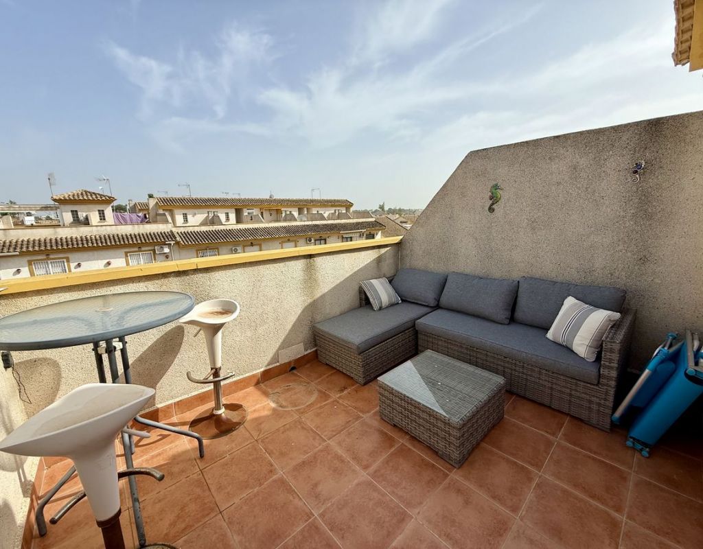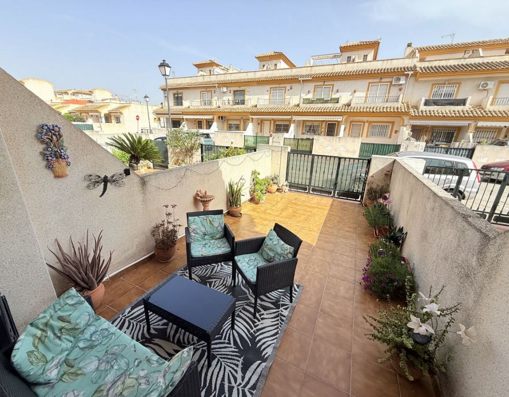 Encantadora casa adosada de dos dormitorios en Daya Nueva, Costa Blanca Sur Descubra esta encantadora casa adosada de dos dormitorios y dos baños, perfectamente ubicada en la tranquila localidad de Daya Nueva, en la Costa Blanca Sur. Construida en 2004, esta casa en perfecto estado ofrece una vida cómoda con amplias zonas exteriores y un cómodo acceso a los servicios locales. Características principales: Dos dormitorios y dos baños: Dormitorios en la planta superior y un práctico baño en la planta baja. Cocina independiente: Funcional y bien equipada para todas sus necesidades culinarias. Orientación este: Disfrute del sol de la mañana en la amplia terraza delantera. Espacios exteriores privados: Incluye un solárium en la azotea y una terraza trasera privada, perfecta para relajarse o entretenerse. Piscina comunitaria: A un corto paseo para refrescarse en los días cálidos. A poca distancia de servicios: Tiendas, restaurantes y servicios a un paseo. Aparcamiento privado: Aparcamiento seguro y cómodo en la propiedad. Gastos de comunidad bajos: solo 110 € al año para disfrutar de fantásticas instalaciones comunes. Superficie de la parcela: 70 m² | Superficie construida: 82 m² – Espacio habitable bien distribuido. Esta casa adosada parcialmente amueblada es ideal para vivienda permanente, casa de vacaciones o inversión en una ubicación privilegiada. ¡No pierda esta fantástica oportunidad! ¡Contáctenos hoy mismo para concertar una visita! Contáctenos ahora para más información. Daya Nueva es un pequeño pueblo de 1761 habitantes, situado al sureste de la provincia de Alicante, en la comarca de la Vega Baja del Segura, a 9 m sobre el nivel del mar. Ocupa una superficie de 7,2 km² y se encuentra a 44 km de Alicante y 196 km de Valencia. Ofrece una amplia gama de servicios que le harán sentir como en casa. Los pueblos cercanos son Daya Vieja, Almoradí y San Fulgencio, entre otros. A sólo 40 minutos en coche del aeropuerto de Alicante y 15 minutos en coche de las hermosas playas de Guardmar del Segura.