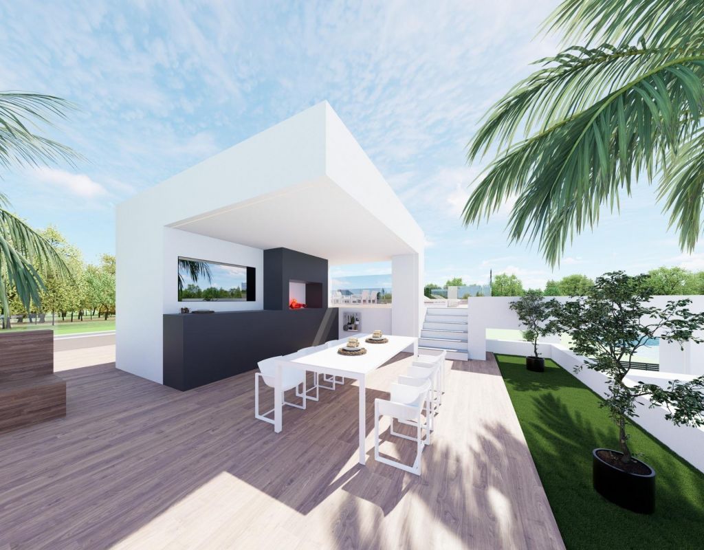 Villas frente al lago en Santa Rosalía Lake Resort, Murcia Villas de lujo de nueva construcción en un exclusivo complejo mediterráneo Descubra una exclusiva colección de villas de nueva construcción en Santa Rosalía Lake and Life Resort, una urbanización privada de primer nivel situada en la Región de Murcia. Estas lujosas viviendas se encuentran en primera línea del impresionante lago artificial del complejo, a solo 4 km de las playas del Mar Menor y cerca de la animada localidad costera de Los Alcázares. Diseño contemporáneo y confort de primera calidad Cada villa está diseñada en una sola planta, más un amplio sótano y un solárium en la azotea. Con 4 dormitorios, 5 baños y 1 aseo de invitados, estas viviendas ofrecen una distribución ideal para la vida familiar o el entretenimiento. La cocina abierta y el salón-comedor dan acceso a amplios espacios exteriores, que incluyen un jardín privado con piscina, dos patios ingleses para la ventilación cruzada en el sótano y un amplio solárium con espectaculares vistas al lago. Entre las características más destacadas se incluyen: Cocina totalmente equipada con electrodomésticos modernos Jardín acabado con césped artificial, palmeras, arbustos y sistema de riego por goteo Aire acondicionado mediante sistema por conductos 6 paneles solares incluidos para mayor eficiencia energética Baños equipados con armarios, espejos y mamparas de ducha Sótano con lavadero, baño y sala técnica Aparcamiento privado para dos vehículos Servicios exclusivos en el lago Santa Rosalía y Life Resort Este excepcional complejo turístico se extiende sobre 126 000 m² de zonas verdes ajardinadas con senderos para caminar y montar en bicicleta, pistas de pádel y tenis, minigolf, parques para perros, instalaciones deportivas, zonas de ocio y una casa club. El atractivo principal es un lago artificial de aguas cristalinas de casi 17 000 m², con playas de arena blanca, palmeras y dos islas, una de ellas con un bar junto al lago. Alrededor del lago hay varios chiringuitos que ofrecen una auténtica experiencia de fusión mediterránea y caribeña. Ubicación privilegiada con excelentes conexiones El Santa Rosalía Lake Resort goza de una ubicación estratégica en la Costa Cálida, con rápido acceso a los principales atractivos de la región: Playas del Mar Menor: 4 km Los Alcázares (centro y puerto deportivo): 4 km Roda Golf y La Serena Golf: 3-5 km Centro de Cartagena: 15 km Aeropuerto Internacional de Murcia (RMU): 22 km Centro comercial Zenia Boulevard: 25 km La villa de sus sueños le espera en el corazón de la Costa Cálida Viva el estilo de vida definitivo en uno de los complejos turísticos más innovadores de España. Póngase en contacto con nosotros hoy mismo para obtener más información sobre estas villas frente al lago y programar su visita.