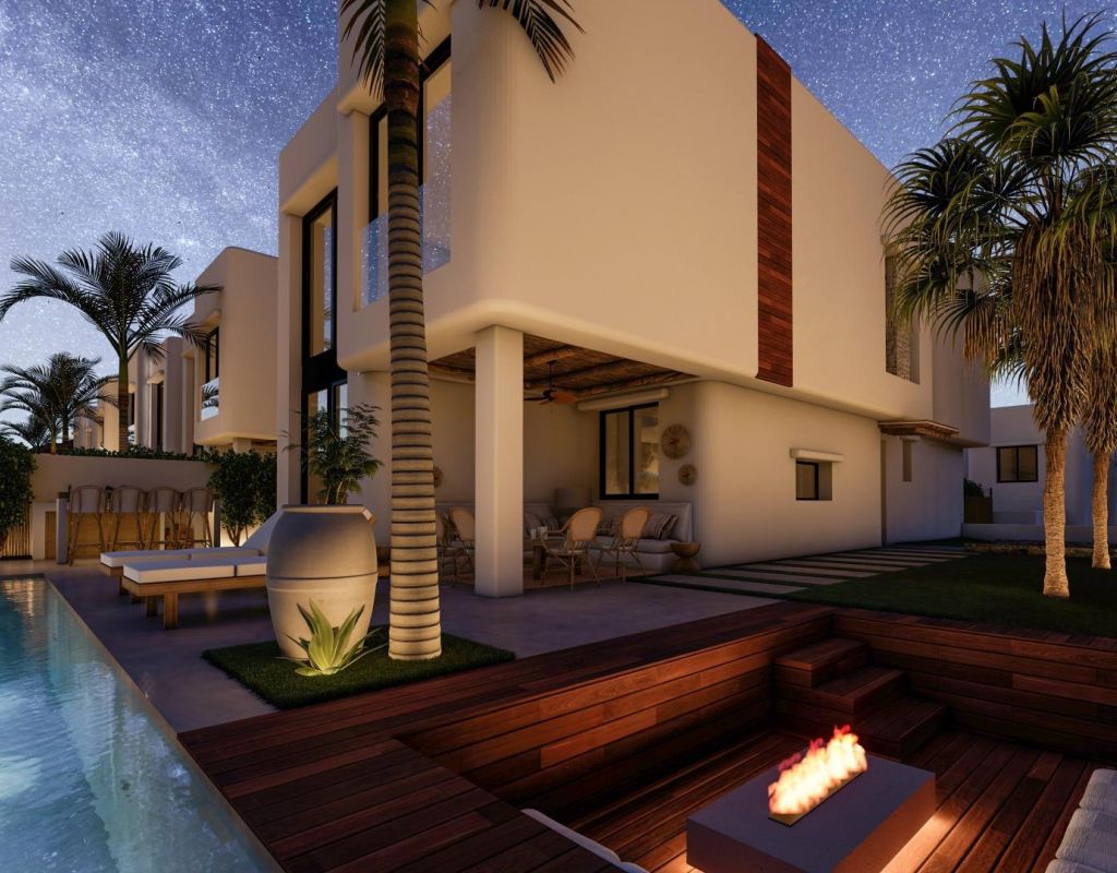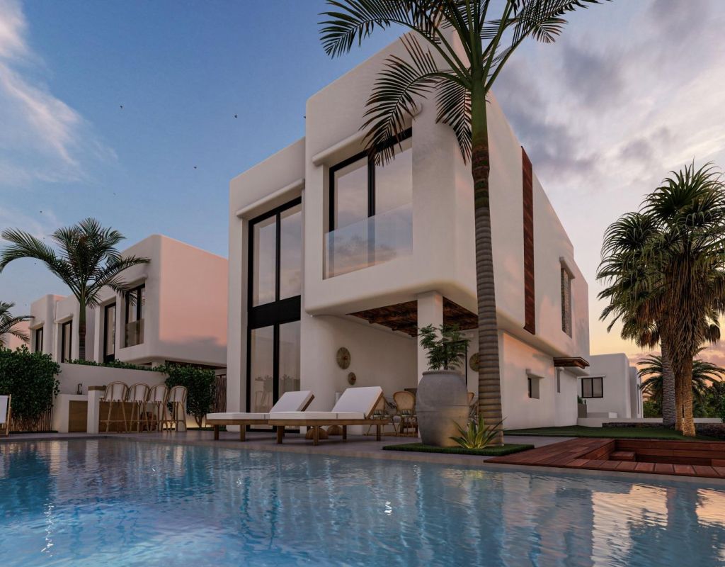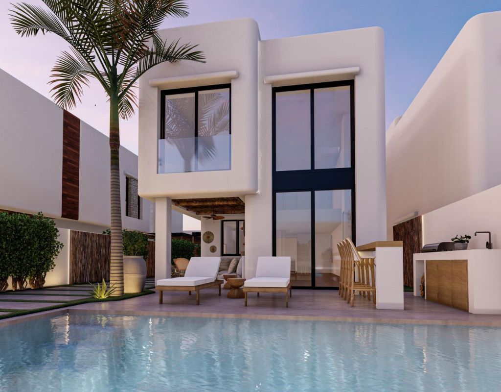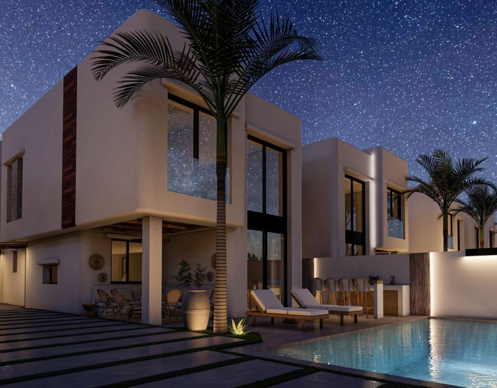 Villas exclusivas de nueva construcción en El Albir: estilo de vida mediterráneo de Sierra Helada Ubicación privilegiada rodeada de naturaleza y cerca del mar Descubra 17 villas independientes exclusivas situadas en una tranquila zona residencial de El Albir, a solo 1,4 km de la playa y a los pies del impresionante Parque Natural de la Sierra Helada. Este entorno único ofrece un equilibrio perfecto entre privacidad, naturaleza y proximidad a todos los servicios. La encantadora localidad de Altea se encuentra a solo 6 km, Benidorm a 7 km y el aeropuerto internacional de Alicante a unos 60 km. Los amantes del golf apreciarán que el famoso Club de Golf de Altea se encuentre a solo 5 km de la urbanización, mientras que los centros comerciales, los puertos deportivos y los restaurantes de alta cocina se encuentran en las inmediaciones. Auténtico diseño de inspiración ibicenca con acabados de alta gama Estas 17 villas han sido cuidadosamente diseñadas para combinar el confort contemporáneo con la elegancia atemporal de la arquitectura ibicenca. Las fachadas blancas, las maderas naturales como el pino y la sabina, y los elementos de piedra capturan la brillante luz mediterránea. Cada vivienda cuenta con una parcela privada, un jardín paisajístico y una piscina privada con jacuzzi integrado. Las amplias terrazas, la zona de barbacoa y el bar al aire libre crean el entorno ideal para disfrutar del estilo de vida mediterráneo durante todo el año. Interiores espaciosos y confort moderno Las villas ofrecen cuatro amplios dormitorios, tres baños y un aseo para invitados distribuidos en dos plantas. El salón-comedor diáfano cuenta con techos de doble altura que potencian la luz natural y crean un ambiente aireado y acogedor. Otros aspectos destacados son un jardín interior con claraboya, una bodega y una escalera flotante que añade un toque de elegancia arquitectónica. Las cocinas están completamente equipadas con armarios altos y bajos y electrodomésticos de alta calidad, mientras que las persianas eléctricas de los dormitorios proporcionan comodidad y confort. Diseñadas para disfrutar todo el año Perfectamente equipadas tanto para la vida en verano como en invierno, estas viviendas cuentan con calefacción por suelo radiante para los meses más fríos y múltiples zonas al aire libre para comer y relajarse durante las estaciones más cálidas. Cada propiedad incluye aparcamiento privado, jardines paisajísticos y amplias opciones de personalización para adaptarse a los gustos individuales. La entrega está prevista en un plazo de 11 meses a partir de la reserva, lo que garantiza un proceso de compra personalizado y sin complicaciones. Una inversión ideal en El Albir El Albir es conocido por su ambiente cosmopolita y relajado, sus aguas cristalinas y su acceso a un entorno natural protegido. Este proyecto ofrece la oportunidad perfecta para aquellos que buscan una residencia permanente, una casa de vacaciones o una inversión de alto potencial en una de las zonas más deseadas de la Costa Blanca. Póngase en contacto con nosotros hoy mismo para concertar una visita y hacer realidad su sueño de vivir en el Mediterráneo.