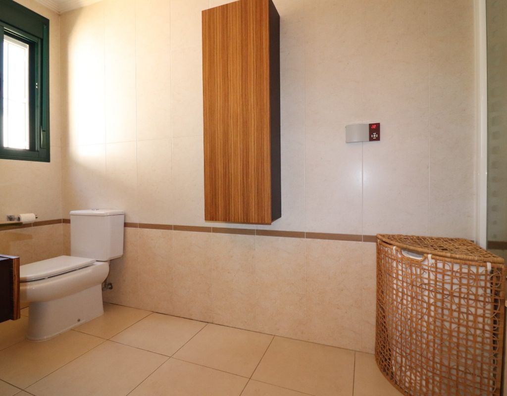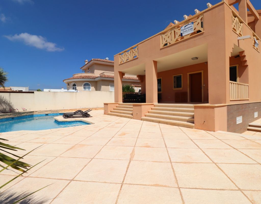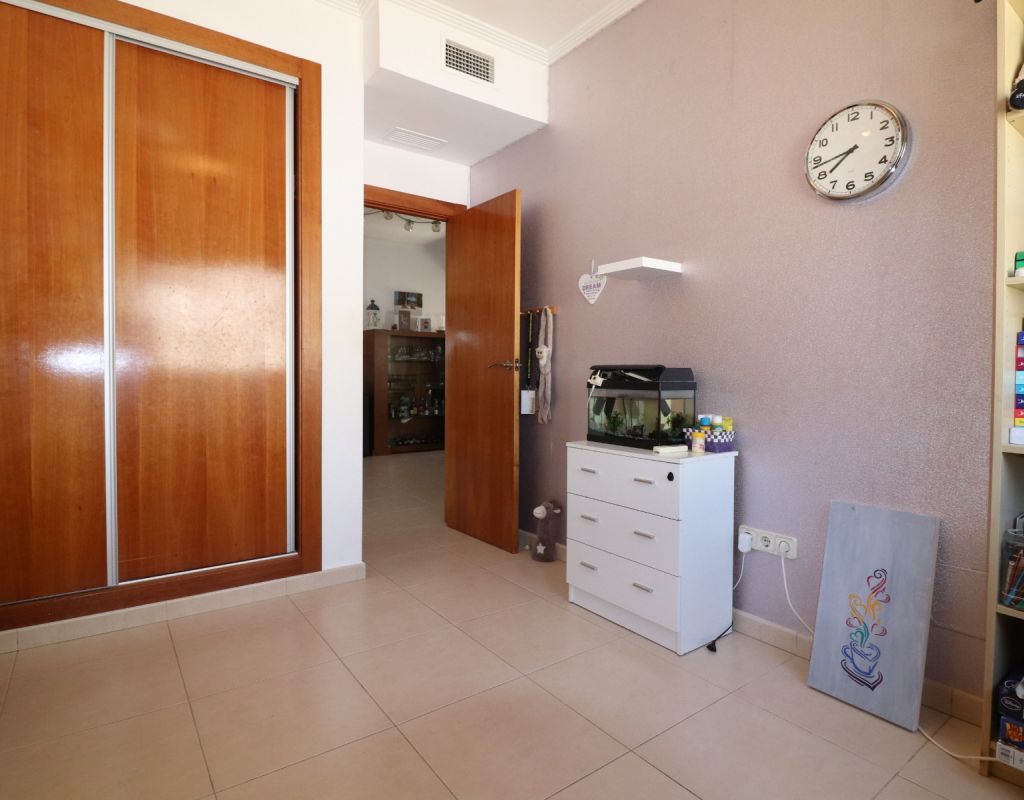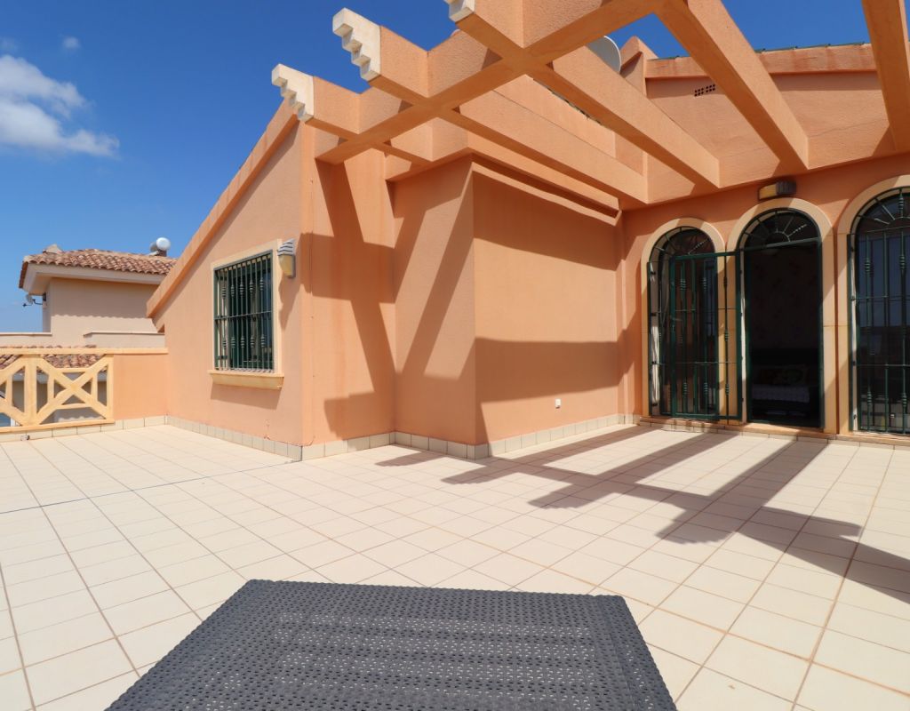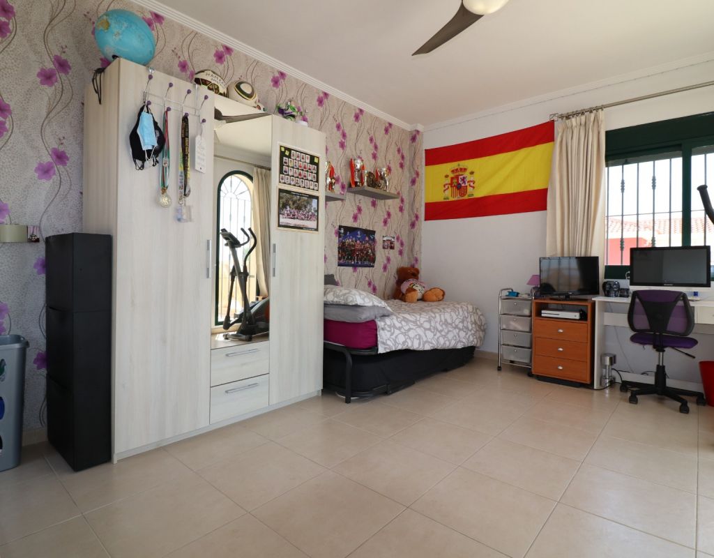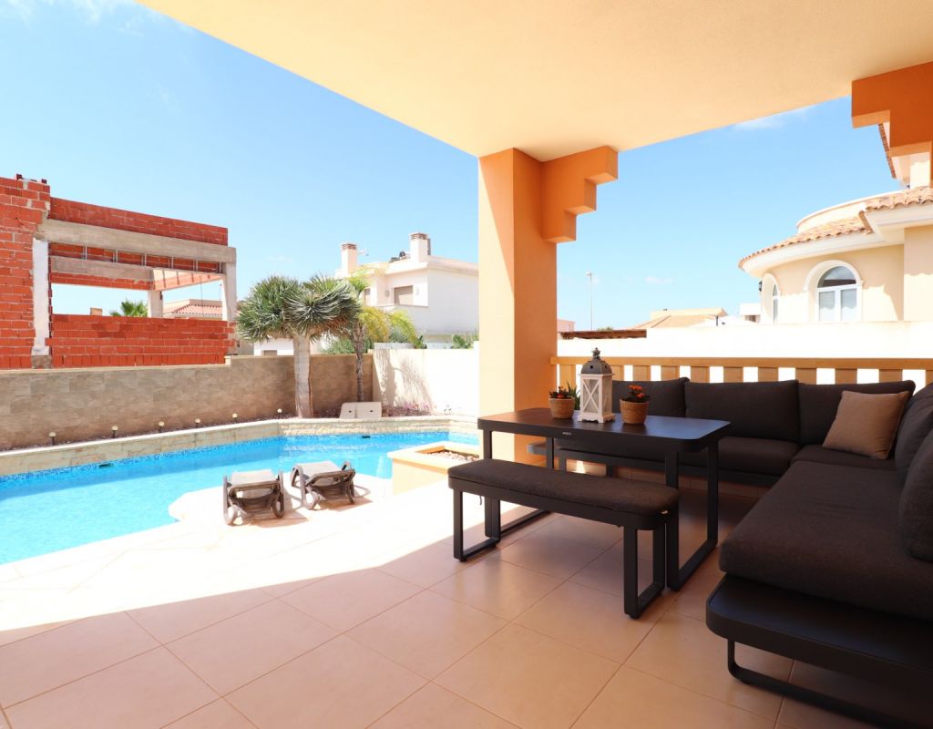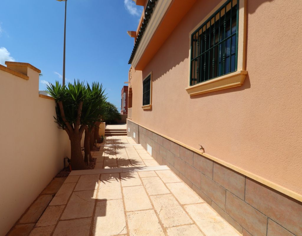 Esta villa independiente de cuatro dormitorios con orientación sur en Ciudad Quesada se encuentra en una prestigiosa zona, rodeada de exclusivas propiedades en la codiciada urbanización de La Fiesta, en la Costa Blanca Sur. Convenientemente situada a solo 10 minutos a pie de una variedad de bares, restaurantes y un supermercado, esta villa también está a solo 5 minutos en coche del campo de golf La Marquesa y a solo 10 minutos de las hermosas playas de Guardamar. Esta imponente construcción de 175 m² se encuentra en una generosa parcela de 500 m² y ofrece un espacio de vida amplio y confortable en dos plantas. La planta baja cuenta con un impresionante salón-comedor en forma de "L" con escaleras que conducen a la primera planta, una cocina independiente totalmente equipada con acceso a un lavadero, tres dormitorios dobles con armarios empotrados (uno de ellos con baño en suite) y un baño familiar con ducha. En la planta superior, la primera planta cuenta con un espacio diáfano que se convierte en un cuarto dormitorio/despacho y acceso a una amplia terraza en forma de L con impresionantes vistas a las salinas y al mar: el lugar perfecto para relajarse y disfrutar del entorno mediterráneo. En el exterior, la propiedad ofrece una piscina privada de 8x5, aparcamiento privado, una terraza cubierta para comer al aire libre, algunos árboles plantados y un trastero. El confort está garantizado durante todo el año con aire acondicionado por conductos, calefacción por suelo radiante y calefactores de pared en el salón y el dormitorio principal. Esta villa, impecablemente equipada, combina a la perfección lujo, ubicación y estilo de vida, ideal para vivir todo el año o como una casa de vacaciones de alta gama en una de las zonas más codiciadas de Ciudad Quesada.