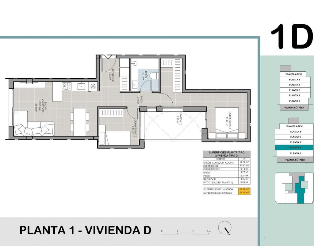 Elegante edificio residencial a 60 m de la playa de El Acequion, en Torrevieja 23 viviendas funcionales con una selección de apartamentos de 1, 2 y 3 dormitorios, y áticos con amplias terrazas privadas. Plazas de aparcamiento opcionales en el sótano para mayor comodidad. Disfrute de la vida a pocos pasos del Mediterráneo. Rodeado de todo lo necesario (supermercados, colegios, restaurantes, parques y chiringuitos), es el lugar perfecto para vivir todo el año o disfrutar como segunda residencia. Cada vivienda está cuidadosamente diseñada para maximizar la luz natural, el espacio y la funcionalidad, y algunas cuentan con terraza privada o lavadero. En la azotea, los residentes pueden disfrutar de un solárium comunitario con una relajante zona de descanso y una piscina, perfecta para tomar el sol y disfrutar de la brisa marina durante todo el año. Distancias a puntos clave: Playa de Acequión: 60 m Centro de Torrevieja: 500 m Puerto deportivo Marina Salinas: 1,5 km Hospital Universitario de Torrevieja: 5,5 km Campo de golf Villamartín: 10 km Centro comercial Habaneras: 3 km Aeropuerto de Alicante: 45 km Acabados de alta gama en todas las viviendas Las viviendas han sido construidas con materiales de primera calidad y un diseño contemporáneo: Carpintería exterior de aluminio con rotura de puente térmico y doble acristalamiento. Persianas motorizadas en los dormitorios. Puerta de entrada blindada. Cocina equipada con muebles altos y bajos. Agua caliente producida por sistema aerotérmico. Preinstalación de aire acondicionado. Baños con muebles, espejos y mamparas de cristal fijas en las duchas. Ascensor en el edificio Viva a un paso del mar y del centro de la ciudad Torrevieja es una de las ciudades costeras más dinámicas y con mayor crecimiento de la Costa Blanca, famosa por su clima, sus playas, sus salinas y su vida cultural. Esta promoción es ideal como residencia permanente, inversión o segunda vivienda para las vacaciones. Póngase en contacto con nosotros hoy mismo para obtener más información o concertar una visita y asegurarse su vivienda junto al mar en Torrevieja.