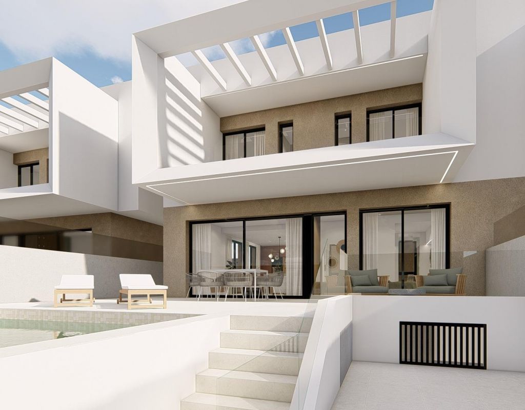Villas adosadas y pareadas de nueva construcción en Dolores, Alicante Descubra esta exclusiva promoción de 20 modernas villas adosadas y pareadas en Dolores, un encantador pueblo situado en el corazón de la Vega Baja, en la provincia de Alicante. Rodeado de huertos y belleza natural, Dolores ofrece un estilo de vida tranquilo a poca distancia en coche de la costa mediterránea. Villas contemporáneas con piscinas privadas Cada vivienda de esta nueva promoción está cuidadosamente diseñada en dos plantas y cuenta con: 3 amplios dormitorios 2 baños completos y 1 aseo de invitados Cocina americana con isla, amueblada y equipada con electrodomésticos Luminoso salón-comedor con acceso directo a la terraza Jardín privado con piscina, sistema de filtración e iluminación LED Aparcamiento en la parcela Estas villas combinan funcionalidad y estilo, ofreciendo todo lo necesario para la vida moderna en el Mediterráneo. Características de alta eficiencia y comodidades modernas Construidas con los más altos estándares, las viviendas incluyen: Instalación de aire acondicionado por conductos en ambas plantas Sistema de calefacción por aire térmico de 250 litros Calefacción eléctrica por suelo radiante en los baños Persianas motorizadas Iluminación LED en todo el interior y el exterior Paneles solares fotovoltaicos de 3 kW para una mayor eficiencia energética Estas características garantizan un entorno doméstico sostenible y confortable durante todo el año. Ubicación ideal cerca de la costa y de los servicios Dolores es una localidad bien comunicada y en crecimiento, a solo 12 km de las impresionantes playas de La Marina y Guardamar del Segura. La zona cuenta con todos los servicios esenciales, como tiendas, restaurantes, colegios y centros de salud. Además, mantiene un ambiente tranquilo y residencial, ideal para familias y jubilados. Distancias a los principales puntos de interés: Playa de La Marina: 12 km Guardamar del Segura: 14 km Aeropuerto de Alicante: 30 km Aeropuerto de Murcia-Corvera: 85 km La Marquesa Golf (Ciudad Quesada): 13 km Torrevieja: 25 km Su nuevo hogar le espera en Dolores Tanto si busca una residencia permanente, un refugio para las vacaciones o una inversión en la Costa Blanca, estas nuevas villas en Dolores son la elección perfecta. Póngase en contacto con nosotros hoy mismo para obtener más información o concertar una visita.