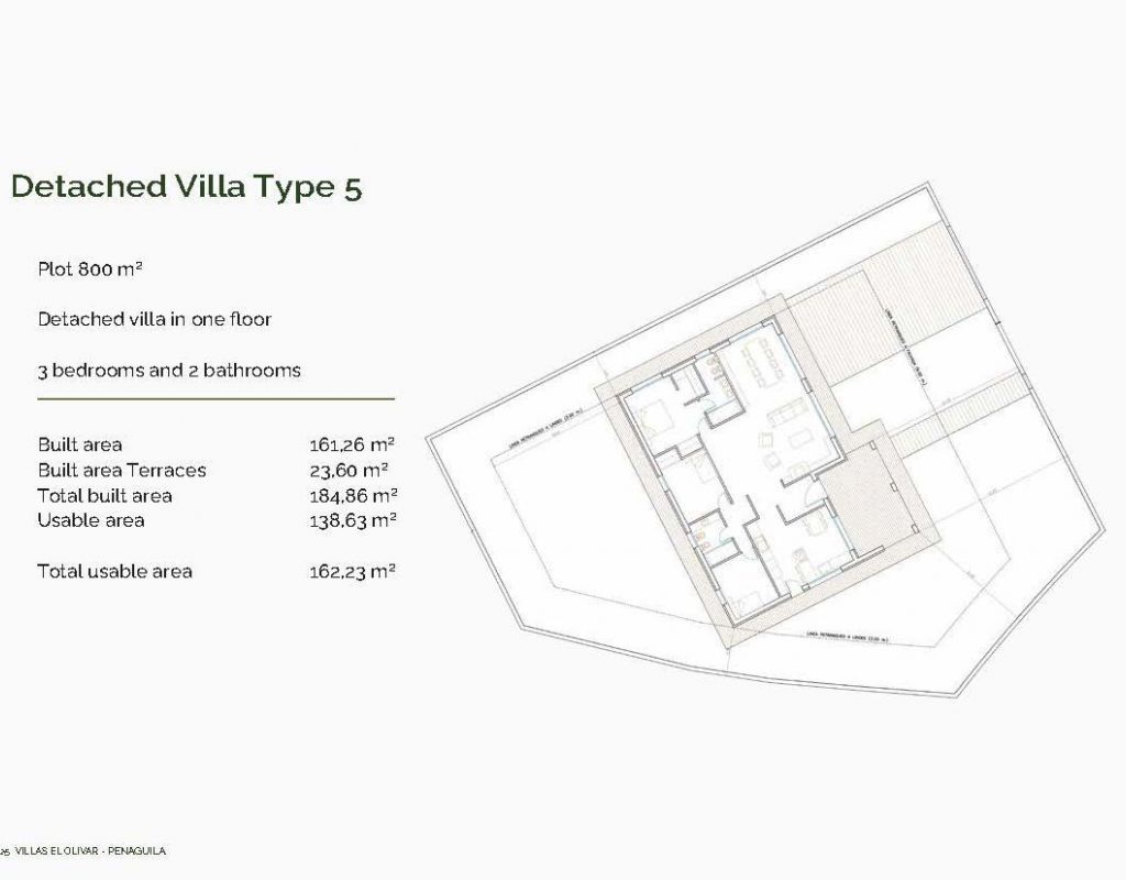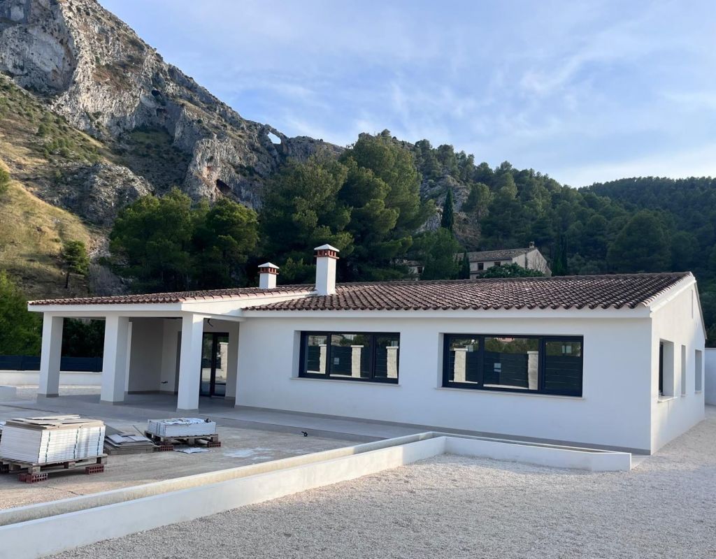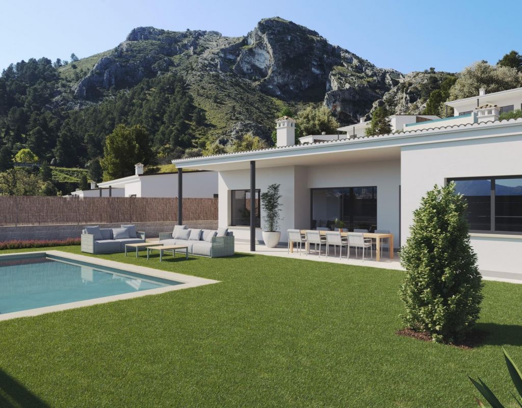 Villas de nueva construcción en Penáguila: tranquilidad y naturaleza en el corazón de la Sierra de Aitana, Alicante Descubra una oportunidad excepcional para vivir rodeado de naturaleza en un entorno tranquilo con impresionantes vistas a la montaña. Esta nueva promoción de 35 villas de una sola planta se encuentra junto al encantador pueblo de Penáguila, enclavado en el corazón de la Sierra de Aitana, en Alicante. Con generosas parcelas de 800 m², estas viviendas ofrecen privacidad, comodidad y contacto directo con el entorno natural. Viviendas amplias con distribuciones personalizadas Cada villa se encuentra en una parcela privada de 800 m² y está distribuida en una sola planta, lo que ofrece el máximo confort y accesibilidad. Elija entre 5 distribuciones diferentes con 3 o 4 dormitorios, 2 o 3 baños y superficies construidas que van desde los 130 hasta los 178 m². Todas las viviendas cuentan con amplias terrazas cubiertas, ideales para disfrutar del aire libre durante todo el año. Esta promoción es perfecta para familias, jubilados o cualquier persona que busque una primera o segunda residencia en un entorno tranquilo y saludable, pero cerca de los servicios esenciales. Acabados de alta calidad y sistemas sostenibles Las villas están construidas con materiales de primera calidad y modernas instalaciones de bajo consumo, entre las que se incluyen: Carpintería exterior de PVC con doble acristalamiento y persianas eléctricas. Calefacción por suelo radiante mediante sistema aerotérmico. Agua caliente sanitaria también alimentada por energía aerotérmica. Aparcamiento cubierto con pérgola metálica y paneles solares fotovoltaicos. Cocinas totalmente equipadas con armarios altos y bajos. Este enfoque en la sostenibilidad no solo mejora el confort, sino que también reduce los costes energéticos a largo plazo. Una ubicación privilegiada entre la montaña y la costa Situadas a pocos minutos del centro de Penáguila, un pintoresco pueblo conocido por su ambiente tranquilo y su encanto tradicional, estas villas gozan de una ubicación perfecta entre la serenidad de la montaña y la comodidad de la costa. Distancias a los principales puntos de interés: Alcoy: 20 km Benidorm: 38 km Ciudad de Alicante: 52 km Aeropuerto de Alicante: 60 km Campo de golf más cercano (Alenda Golf): 45 km Playas de Villajoyosa y Benidorm: aproximadamente 45 km Esta ubicación ofrece un excelente acceso tanto al interior como a la costa, lo que la hace ideal para los amantes de la naturaleza que aún desean estar cerca de los servicios urbanos y los centros turísticos de playa. Reserve la villa de sus sueños en la Sierra de Aitana Ya hay dos villas en construcción y se entregarán en solo 4 meses. Las unidades restantes están disponibles con un plazo de entrega de 12 meses desde la reserva. Póngase en contacto con nosotros hoy mismo para obtener más información y asegurarse su nuevo hogar en Penáguila, donde el confort se une a la naturaleza.