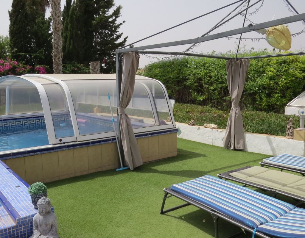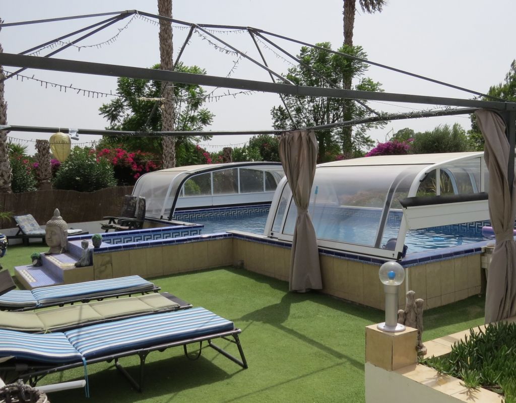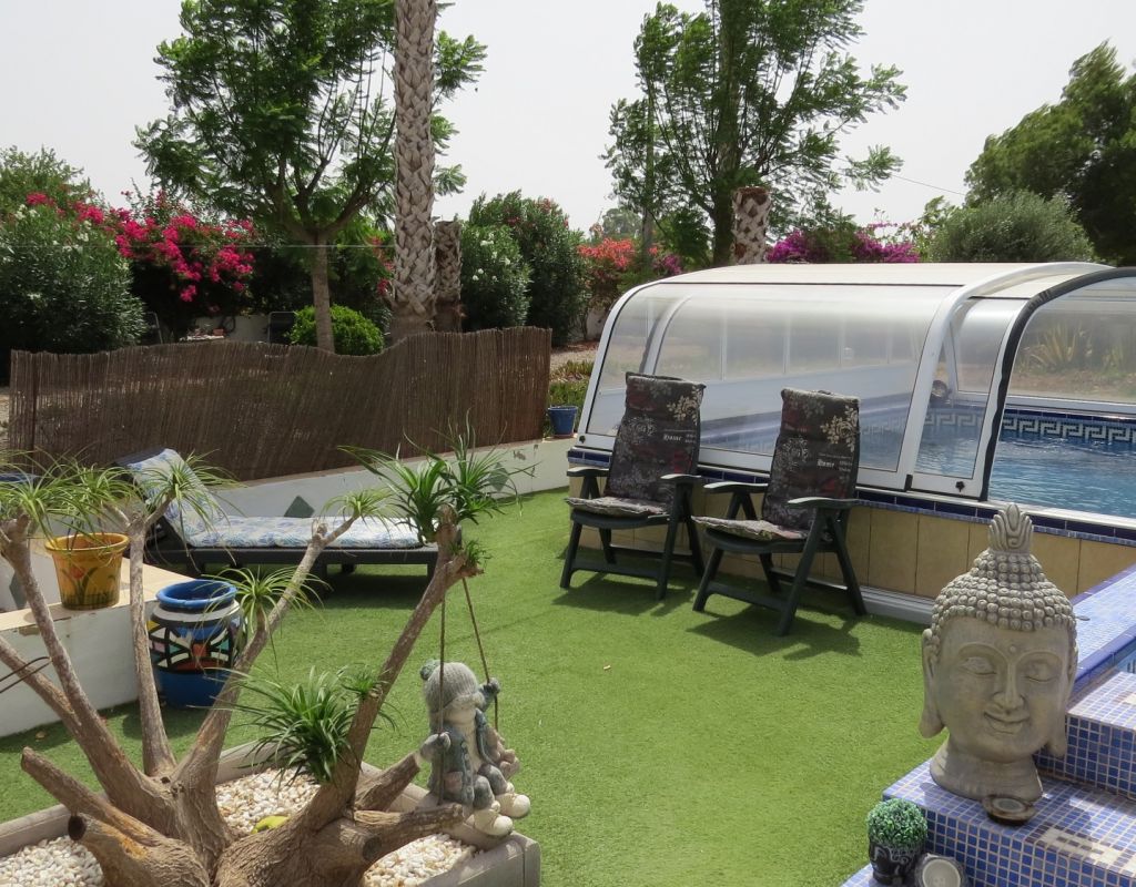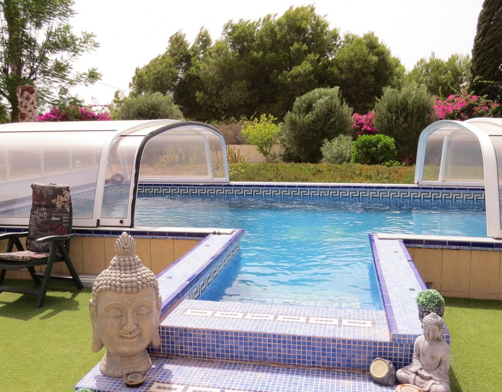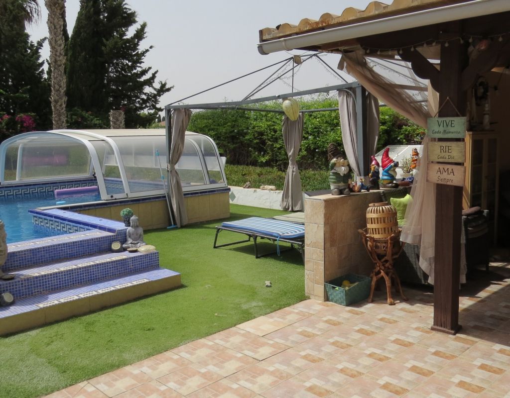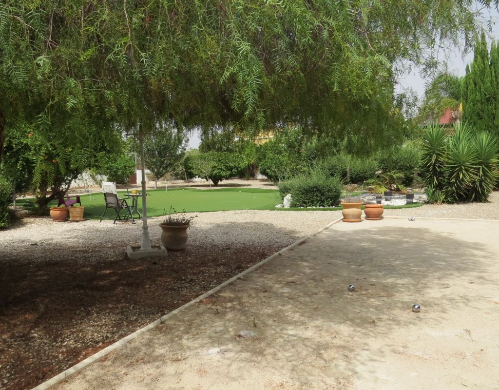 ¡No hay mejor lugar para disfrutar del clima español que el hermoso jardín de esta vivienda! Por supuesto, cuenta con piscina privada, amplia caseta de piscina, gran terraza cubierta, ducha exterior, jacuzzi, pista de petanca, minigolf y numerosos rincones acogedores para relajarse.