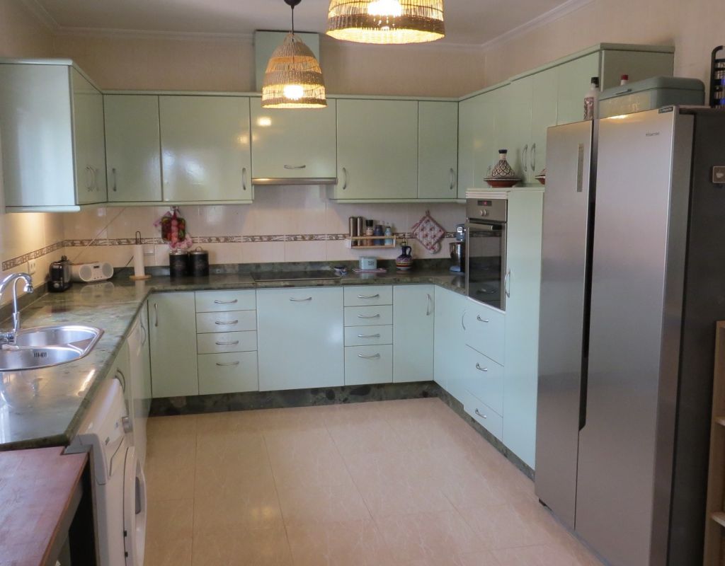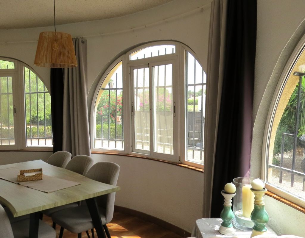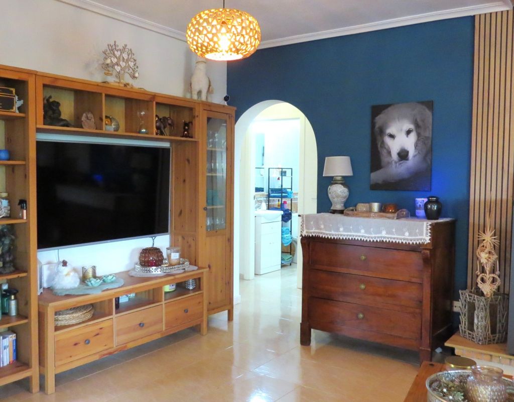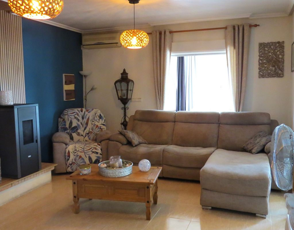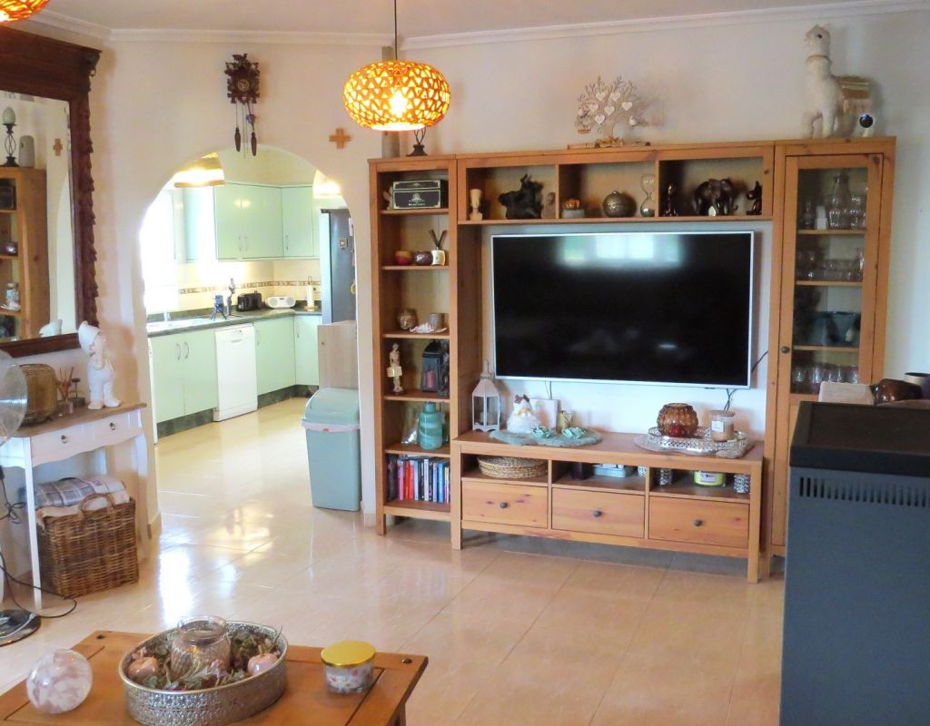 Esta casa tiene una acogedora sala de estar rodeada por una terraza acristalada con acceso a la amplia cocina. Además, a través del pequeño vestíbulo, se encuentra el dormitorio principal con baño en suite, el segundo dormitorio doble, un baño familiar y el tercer dormitorio, que actualmente se utiliza como vestidor.