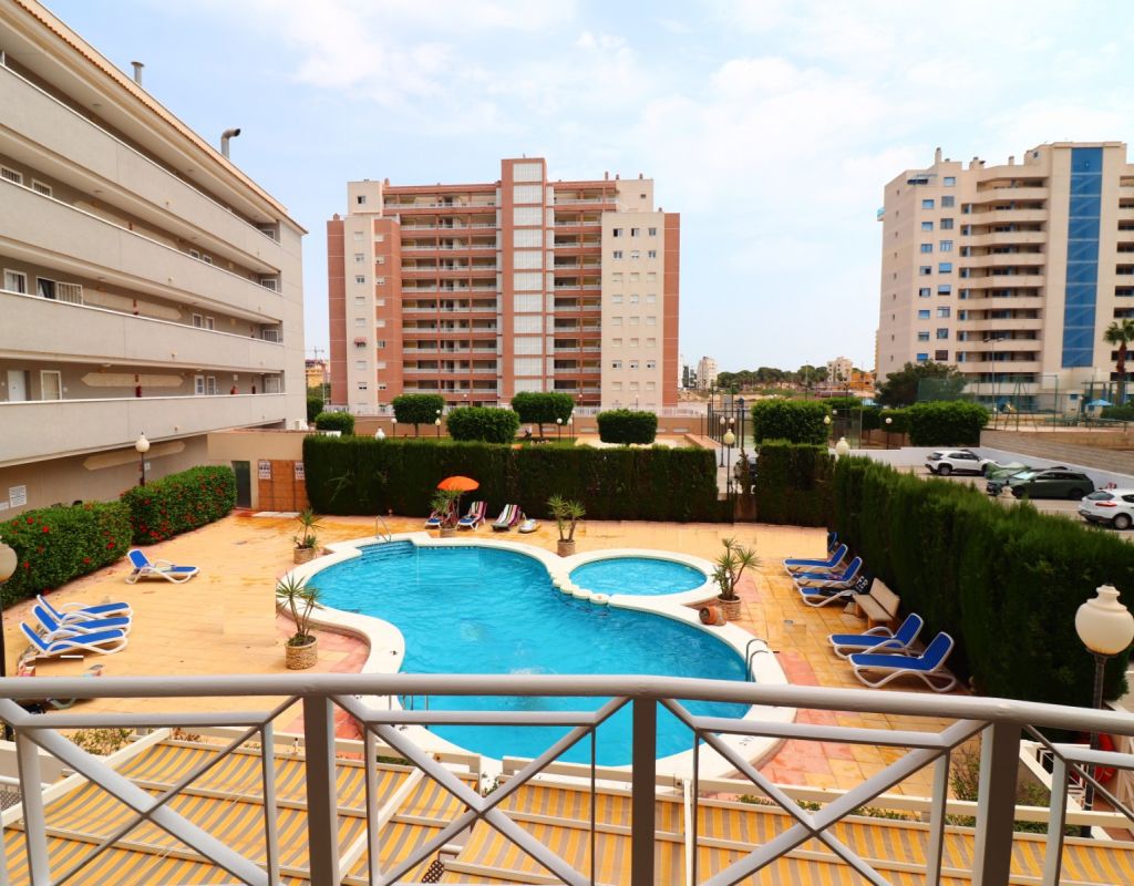 Este apartamento de dos dormitorios en primera planta, con orientación este, en Guardamar del Segura se encuentra cerca del corazón de esta popular localidad costera. La impresionante playa y el paseo marítimo, repleto de cafeterías, bares y restaurantes, están a solo 5 minutos en coche, y hay un supermercado a solo 5 minutos a pie. El campo de golf La Marquesa, en Rojales, está a unos 10 minutos en coche. El apartamento ofrece un espacio luminoso y confortable, con aire acondicionado y puertas correderas de doble acristalamiento que dan a una terraza privada con vistas a la piscina comunitaria. Dispone de cocina independiente equipada, dos dormitorios dobles (el principal con armarios empotrados y aire acondicionado propio) y un baño familiar. Además, incluye ascensor dentro del edificio, solárium comunitario y plaza de aparcamiento asignada. Una oportunidad ideal como vivienda vacacional, inversión o residencia permanente en la cotizada zona de Guardamar del Segura, en la Costa Blanca Sur.