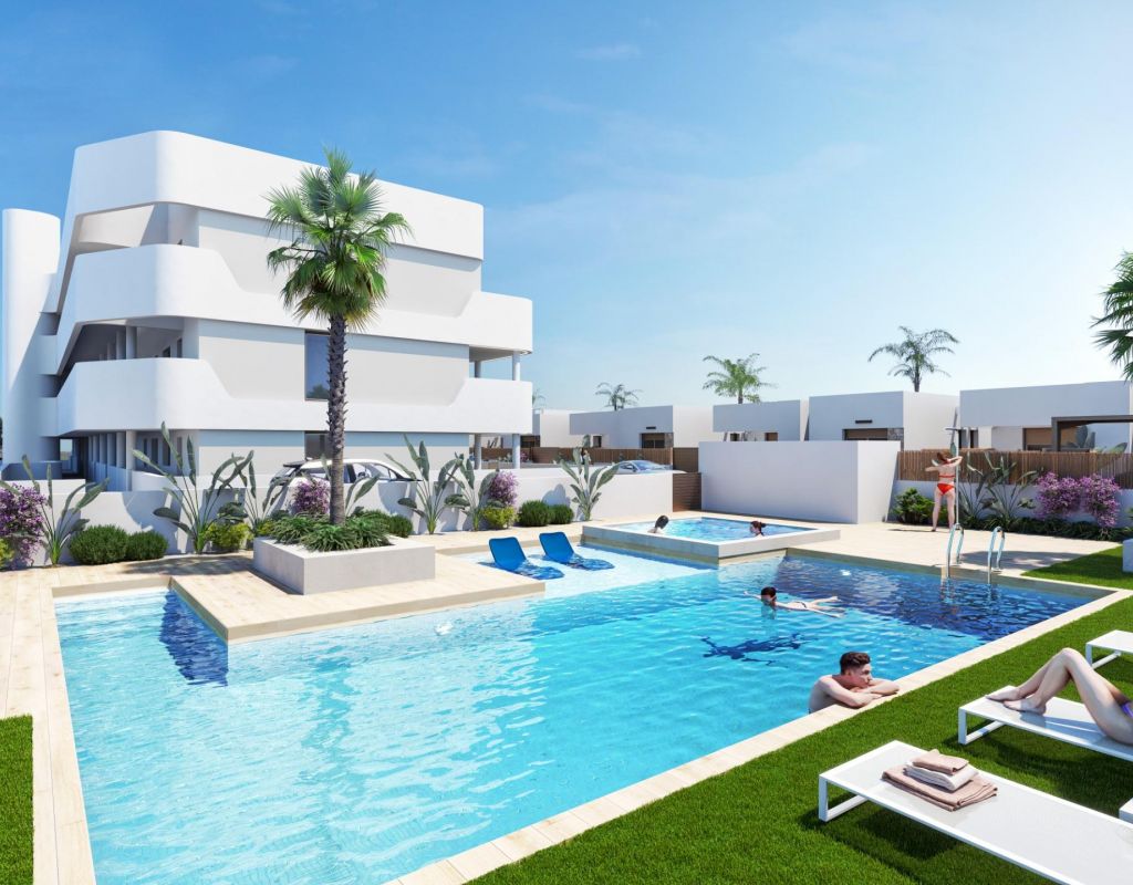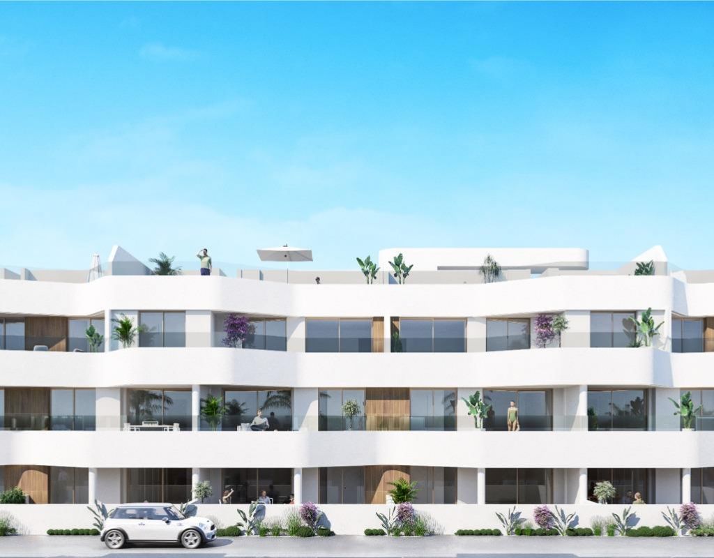Complejo residencial de nueva construcción en Los Alcázares Viviendas exclusivas en la Costa Cálida Este nuevo complejo residencial en Los Alcázares ofrece una oportunidad única para disfrutar de una vida moderna en una de las zonas más deseadas de la Costa Cálida. A solo 1,2 km de la playa y situado en primera línea del prestigioso campo de golf La Serena, esta promoción combina a la perfección el estilo de vida costero con la tranquilidad del entorno golfístico. El encantador centro de Los Alcázares se encuentra a poca distancia, lo que permite acceder fácilmente a tiendas, restaurantes y todos los servicios esenciales. Apartamentos modernos y villas exclusivas La promoción consta de 13 apartamentos contemporáneos de 2, 3 o 4 dormitorios y 4 villas exclusivas de 3 dormitorios. Los compradores pueden elegir entre apartamentos en planta baja o en planta intermedia con amplias terrazas, o áticos con soláriums privados. Todas las propiedades incluyen una plaza de aparcamiento privada y un trastero en el garaje subterráneo, accesible por ascensor. Características de alta calidad Todas las viviendas han sido diseñadas con acabados modernos y pensando en el máximo confort. Las características principales incluyen: Baños totalmente equipados con muebles y mamparas de ducha Preinstalación de aire acondicionado por conductos Persianas motorizadas en los dormitorios Estos detalles garantizan que cada propiedad sea práctica, elegante y esté preparada para adaptarse a una gran variedad de estilos de vida. Una ubicación privilegiada con excelentes conexiones Los Alcázares goza de una ubicación estratégica tanto para el ocio como para la comodidad. La zona ofrece acceso directo a las principales autopistas y está bien comunicada con las ciudades y aeropuertos cercanos: Playas del Mar Menor: 1,2 km Club de golf La Serena: adyacente al complejo Cartagena: 20 km Aeropuerto de Murcia: 25 minutos Aeropuerto de Alicante: 55 minutos Varios campos de golf en un radio de 10 a 20 km Estilo de vida junto al mar y el golf Vivir en Los Alcázares significa disfrutar de lo mejor del estilo de vida mediterráneo. El cercano Mar Menor, la laguna de agua salada más grande de Europa, ofrece aguas cálidas y poco profundas, ideales para nadar, navegar y practicar una amplia variedad de deportes acuáticos. Los amantes del golf apreciarán el acceso directo a La Serena Golf, famoso por su desafiante diseño con obstáculos de agua en 16 de sus 18 hoyos. Su hogar mediterráneo le espera Tanto si busca una residencia permanente, un refugio vacacional o una oportunidad de inversión, esta nueva promoción en Los Alcázares ofrece el equilibrio perfecto entre comodidad moderna, belleza natural y una ubicación excelente. Póngase en contacto con nosotros hoy mismo para concertar una visita y asegurarse la casa de sus sueños en la Costa Cálida.