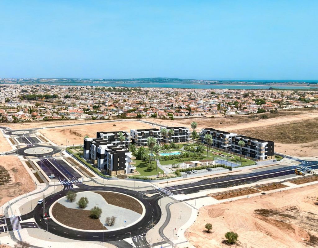 Nueva promoción residencial en La Siesta, Torrevieja Apartamentos modernos con excelentes comodidades Esta nueva promoción residencial en La Siesta, Torrevieja, ofrece apartamentos amplios y contemporáneos diseñados para ofrecer comodidad y estilo. Las viviendas cuentan con 2 dormitorios y 2 baños (uno de ellos en suite) con amplias terrazas, distribuidas en 7 bloques de baja altura que rodean una impresionante zona comunitaria. La comunidad cerrada ofrece instalaciones de primera clase, como piscinas para adultos y niños, jardines, zona de barbacoa, parque infantil, pista de pádel y zona de petanca, lo que la hace ideal tanto para el descanso como para el ocio. Ubicación privilegiada en la Costa Blanca Situada en el creciente barrio de La Hoya, entre las lagunas salinas naturales de La Mata y Torrevieja, esta promoción ofrece un equilibrio perfecto entre tranquilidad y comodidad. A solo 3,5 km de las playas de Torrevieja, los residentes disfrutarán de un rápido acceso a servicios cotidianos como supermercados, restaurantes, centros de salud, rutas ciclistas y el Parque Natural de La Mata para practicar senderismo. El animado centro de la ciudad de Torrevieja, con teatros, cines, centros comerciales, hospitales y el parque acuático Aquopolis, se encuentra a poca distancia en coche. Distancias a los principales puntos de interés Playas de Torrevieja: 3,5 km Golf La Marquesa en Ciudad Quesada: 7 km Centro comercial Habaneras: 2 km Aeropuerto de Alicante: 40 km Aeropuerto de Murcia Corvera: 60 km Especificaciones de alta calidad Cada apartamento está construido con acabados modernos y diseñado para ofrecer la máxima funcionalidad: Cocinas totalmente equipadas con electrodomésticos incluidos Persianas motorizadas Puerta de entrada de seguridad reforzada Sistema de agua caliente alimentado por energía aerotérmica Aire acondicionado por conductos totalmente instalado Plaza de aparcamiento subterráneo y trastero incluidos Como oferta especial de lanzamiento, las primeras unidades vendidas incluirán un paquete completo de mobiliario e iluminación, para que su nueva vivienda esté lista para entrar a vivir desde el primer día. Un vibrante estilo de vida mediterráneo Torrevieja es uno de los destinos más populares de la Costa Blanca, con más de 300 días de sol al año, eventos culturales, animados paseos marítimos y excelentes instalaciones para practicar deportes acuáticos. Con su mezcla de encanto tradicional español y comodidades modernas, es un lugar ideal para vivir de forma permanente, como refugio vacacional o como una inteligente oportunidad de inversión. Su nuevo hogar le espera en Torrevieja Esta promoción combina lujo, comodidad y una ubicación inmejorable junto al mar. Póngase en contacto con nosotros hoy mismo para concertar una visita y asegurarse la propiedad de sus sueños en la Costa Blanca.