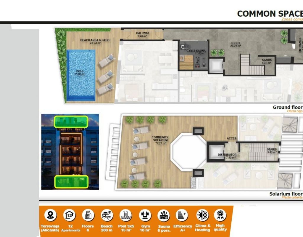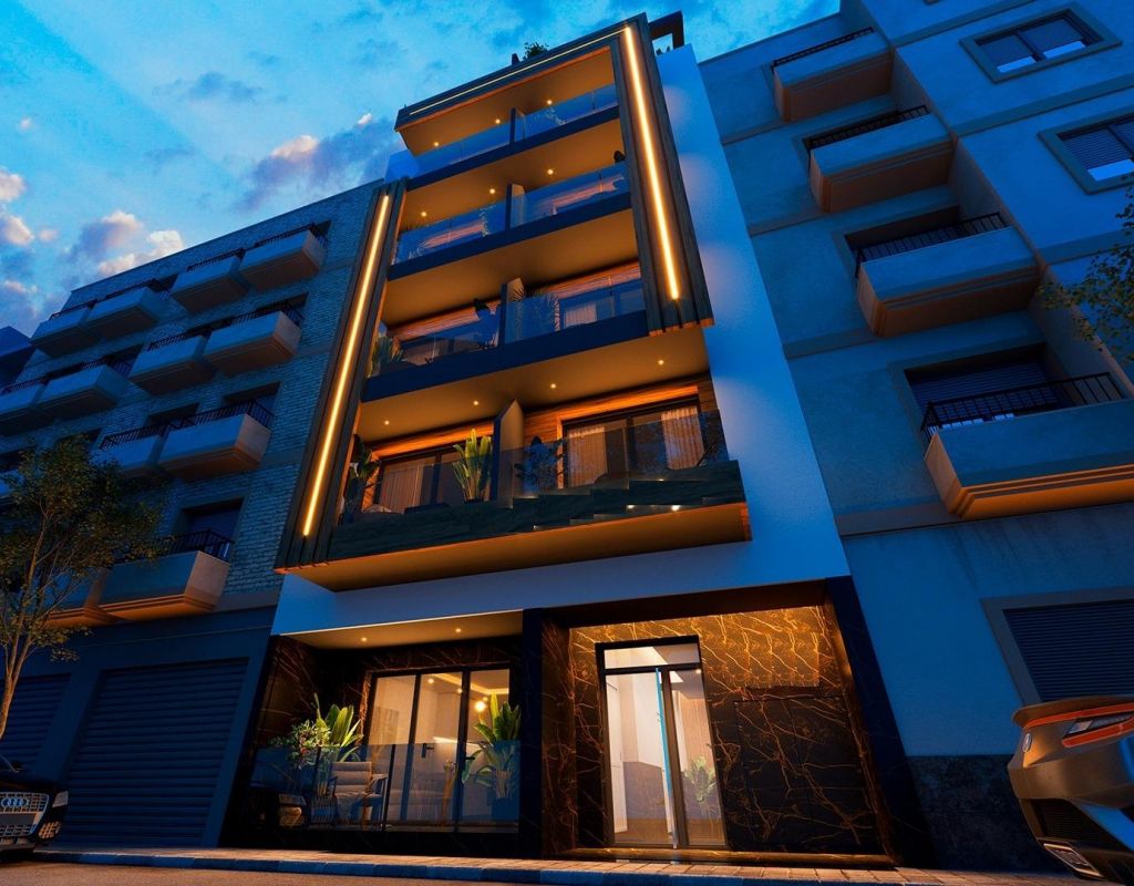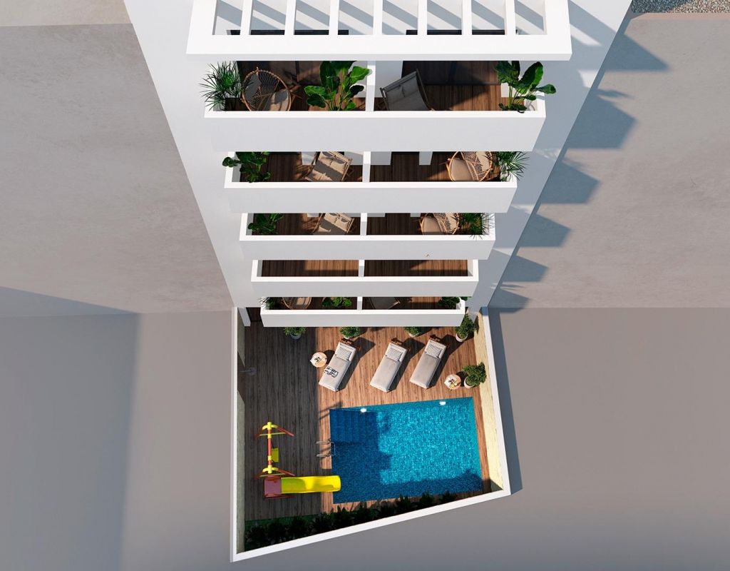 Apartamentos modernos a solo 250 m de la Playa del Cura en Torrevieja Exclusiva promoción nueva en el corazón de Torrevieja Este exclusivo proyecto residencial de 12 apartamentos modernos se encuentra a solo 250 metros de la Playa del Cura, una de las playas más populares de Torrevieja. Diseñado con un equilibrio perfecto entre elegancia, funcionalidad y estilo de vida mediterráneo, el edificio ofrece una variedad de distribuciones con 1 o 2 dormitorios, incluyendo apartamentos con terraza y áticos con solárium privado. Su céntrica ubicación proporciona un fácil acceso a tiendas, restaurantes, zonas de ocio y todos los servicios esenciales, al tiempo que mantiene una sensación de comodidad y tranquilidad. Servicios de primera calidad para un estilo de vida moderno La promoción incluye 130 m² de zonas comunes diseñadas para el descanso y el entretenimiento. Los residentes pueden disfrutar de: Piscina en la planta baja con zona infantil Gimnasio y sauna Solárium en la azotea con zonas chill-out y exuberante vegetación Todos los apartamentos están construidos con materiales y acabados de alta calidad, lo que garantiza tanto el confort como la durabilidad. Las características incluyen: Baños completamente equipados con mamparas de ducha Preinstalación de aire acondicionado por conductos Carpintería exterior de PVC de alta calidad con vidrio de control solar Puerta de entrada de seguridad reforzada La vibrante vida de Torrevieja Torrevieja es una animada ciudad costera de la Costa Blanca, famosa por sus actividades culturales y recreativas durante todo el año. Con más de 300 días de sol al año y un clima mediterráneo suave, la zona es ideal para los amantes de la playa, los entusiastas de las actividades al aire libre y aquellos que buscan un estilo de vida vibrante. La ciudad también ofrece una amplia gama de servicios, cocina internacional, puertos deportivos y un animado paseo marítimo. Ubicación privilegiada con excelentes conexiones La promoción está estratégicamente situada con fácil acceso a los principales puntos de interés: Aeropuerto de Alicante: 45 km Campos de golf: 7-10 km Centro comercial Zenia Boulevard: 8 km Puerto deportivo y puerto de Torrevieja: 2 km Su hogar perfecto junto al mar Tanto si busca una residencia permanente, una casa de vacaciones o una propiedad con potencial de alquiler, estos modernos apartamentos en Torrevieja ofrecen una excelente oportunidad para invertir en el estilo de vida de la Costa Blanca. Póngase en contacto con nosotros hoy mismo para concertar una visita y asegurarse su moderno apartamento a pocos pasos de la Playa del Cura.