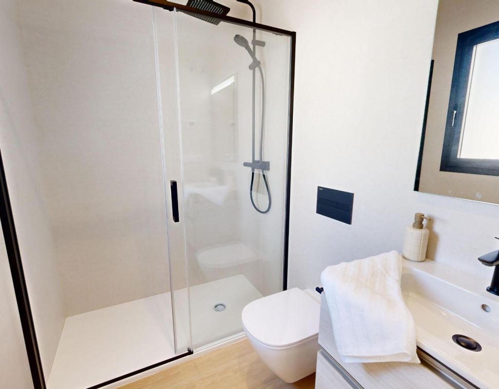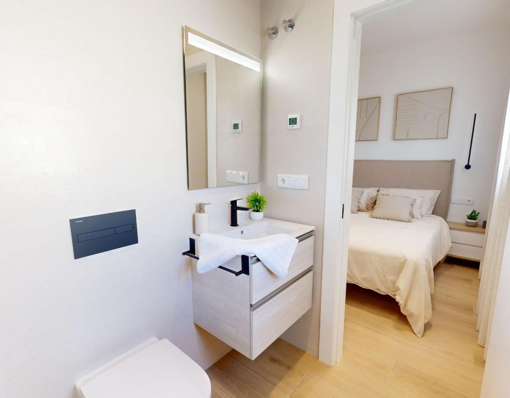 Áticos de nueva construcción en Guardamar del Segura con solárium privado Vida moderna en el corazón de Guardamar Descubra esta exclusiva promoción nueva en el centro de Guardamar del Segura, una encantadora localidad costera en la Costa Blanca Sur, conocida por sus 11 km de playas de arena y su gran pinar. Esta urbanización ofrece un diseño moderno, excelentes acabados y una ubicación inmejorable a solo 550 m de la playa y cerca de todos los servicios, como supermercados, ayuntamiento, centro de salud, estación de autobuses, restaurantes y tiendas. Amplias viviendas con solárium privado Los áticos cuentan con 3 dormitorios con armarios empotrados, 2 baños (uno de ellos en suite), una cocina abierta integrada en el salón y acceso directo a una gran terraza. Cada propiedad incluye también un solárium privado en la azotea con trastero, perfecto para disfrutar del sol durante todo el día. Hay aparcamiento disponible en un edificio cercano. Zonas comunes exclusivas La urbanización ofrece espacios comunes bien diseñados para el descanso y el ocio: Solárium en la azotea con zonas de descanso y zona de juegos para niños Ascensor para facilitar el acceso Estilo de vida en Guardamar del Segura Guardamar es mucho más que un destino de playa; es una ciudad vibrante con servicios y actividades durante todo el año. Todos los miércoles, la ciudad acoge un popular mercado semanal que atrae a visitantes de las zonas circundantes. El puerto deportivo ofrece deportes y actividades acuáticas durante todo el año, mientras que el complejo deportivo incluye pistas de tenis, pádel, campos de fútbol y una piscina cubierta climatizada. La biblioteca local también ofrece Wi-Fi gratuito y ordenadores públicos. Ubicación estratégica en la Costa Blanca Esta urbanización goza de una excelente ubicación con excelentes conexiones con las atracciones cercanas: Playa de Guardamar: 550 m Campos de golf: 6,5 km Aeropuerto Internacional de Alicante-Elche: 20 km Torrevieja: 12 km Centro de la ciudad de Alicante: 35 km Centros comerciales como La Zenia Boulevard: 25 km Una vivienda perfecta o una oportunidad de inversión Con su ubicación privilegiada, su diseño moderno y su proximidad tanto a la playa como a los servicios esenciales, estos apartamentos de nueva construcción en Guardamar del Segura son ideales como residencia permanente, vivienda vacacional o inversión. Póngase en contacto con nosotros hoy mismo para concertar una visita y asegurarse su nueva vivienda junto al Mediterráneo.