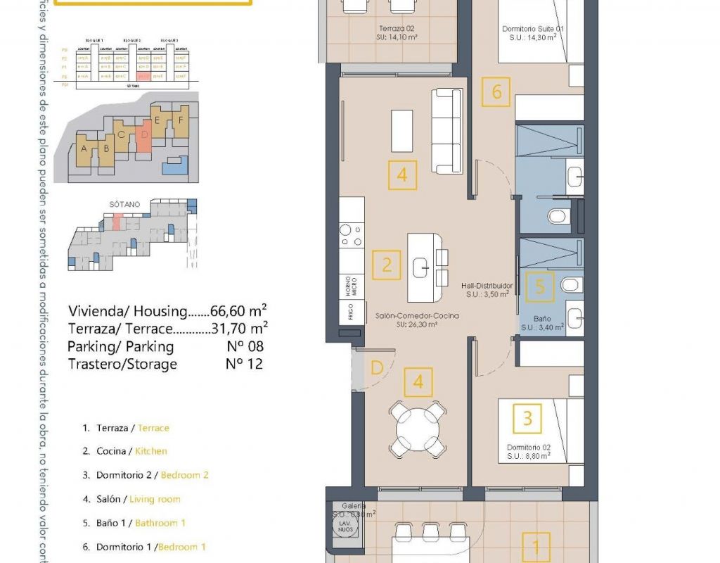 Complejo residencial de nueva construcción en Los Alcázares, en primera línea del campo de golf Serena Vida exclusiva en la Costa Cálida Descubra esta nueva promoción residencial en Los Alcázares, con una ubicación perfecta en primera línea del campo de golf Serena y a solo 1,3 km de las playas del Mar Menor. Ubicado en el corazón de la Costa Cálida, este proyecto combina arquitectura moderna, comodidad y un entorno excepcional. Con excelentes conexiones por carretera, el complejo se encuentra a solo 30 km del aeropuerto de Murcia (25 minutos) y a 90 km del aeropuerto de Alicante (55 minutos), lo que ofrece un fácil acceso a Cartagena, Murcia y la Costa Blanca. Viviendas contemporáneas con un diseño excepcional El complejo residencial incluye 18 elegantes apartamentos y 7 exclusivas villas, cada uno de ellos diseñado para maximizar el espacio, la luz y la funcionalidad. Los residentes disfrutarán de unas vistas impresionantes del campo de golf y, desde las plantas superiores, de las cristalinas aguas del Mar Menor. Elija entre: Apartamentos de 2 o 3 dormitorios y 2 baños, todos con doble orientación y dos terrazas para disfrutar de la luz del sol durante todo el día. Apartamentos en planta baja con jardines privados. Unidades en plantas intermedias con amplias terrazas. Áticos con dos terrazas, solárium privado y vistas panorámicas. Chalets independientes en primera línea de golf, con 3 dormitorios, 2 baños, sótano, solárium y piscina privada. Características y comodidades premium Todas las viviendas están equipadas con acabados de alta calidad y comodidades modernas, entre las que se incluyen: Plaza de aparcamiento y trastero Sistema de agua caliente aerotérmica Aire acondicionado por conductos preinstalado Persianas eléctricas y paquete de iluminación completo Baños completamente equipados con muebles y mamparas de ducha Piscina comunitaria y jardines paisajísticos Ascensor en los bloques de apartamentos Ubicación perfecta para los amantes del golf y la playa Situada en un enclave privilegiado, la urbanización está rodeada por la tranquila vegetación de Serena Golf y se encuentra a pocos pasos de las cálidas y poco profundas aguas del Mar Menor. Esta zona única ofrece oportunidades durante todo el año para practicar natación, vela, paddle surf y otros deportes acuáticos, lo que la hace ideal tanto para el descanso como para la actividad. Distancias clave: Playa (Mar Menor): 1,3 km Serena Golf: junto al complejo Centro de Los Alcázares: 2 km Cartagena: 22 km Ciudad de Murcia: 40 km Aeropuerto de Murcia: 30 km (25 minutos) Aeropuerto de Alicante: 90 km (55 minutos) Asegúrese su estilo de vida mediterráneo Esta promoción en Los Alcázares ofrece la combinación perfecta de playa, golf y vida moderna. Ya sea como residencia permanente, refugio vacacional o inversión, proporciona todo lo necesario para un auténtico estilo de vida mediterráneo. Póngase en contacto con nosotros hoy mismo para concertar una visita y asegurarse su nueva vivienda en la Costa Cálida.