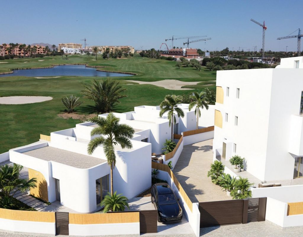 Complejo residencial de nueva construcción en Los Alcázares, en primera línea del campo de golf Serena Vida exclusiva en la Costa Cálida Descubra esta nueva promoción residencial en Los Alcázares, con una ubicación perfecta en primera línea del campo de golf Serena y a solo 1,3 km de las playas del Mar Menor. Ubicado en el corazón de la Costa Cálida, este proyecto combina arquitectura moderna, comodidad y un entorno excepcional. Con excelentes conexiones por carretera, el complejo se encuentra a solo 30 km del aeropuerto de Murcia (25 minutos) y a 90 km del aeropuerto de Alicante (55 minutos), lo que ofrece un fácil acceso a Cartagena, Murcia y la Costa Blanca. Viviendas contemporáneas con un diseño excepcional El complejo residencial incluye 18 elegantes apartamentos y 7 exclusivas villas, cada uno de ellos diseñado para maximizar el espacio, la luz y la funcionalidad. Los residentes disfrutarán de unas vistas impresionantes del campo de golf y, desde las plantas superiores, de las cristalinas aguas del Mar Menor. Elija entre: Apartamentos de 2 o 3 dormitorios y 2 baños, todos con doble orientación y dos terrazas para disfrutar de la luz del sol durante todo el día. Apartamentos en planta baja con jardines privados. Unidades en plantas intermedias con amplias terrazas. Áticos con dos terrazas, solárium privado y vistas panorámicas. Chalets independientes en primera línea de golf, con 3 dormitorios, 2 baños, sótano, solárium y piscina privada. Características y comodidades premium Todas las viviendas están equipadas con acabados de alta calidad y comodidades modernas, entre las que se incluyen: Plaza de aparcamiento y trastero Sistema de agua caliente aerotérmica Aire acondicionado por conductos preinstalado Persianas eléctricas y paquete de iluminación completo Baños completamente equipados con muebles y mamparas de ducha Piscina comunitaria y jardines paisajísticos Ascensor en los bloques de apartamentos Ubicación perfecta para los amantes del golf y la playa Situada en un enclave privilegiado, la urbanización está rodeada por la tranquila vegetación de Serena Golf y se encuentra a pocos pasos de las cálidas y poco profundas aguas del Mar Menor. Esta zona única ofrece oportunidades durante todo el año para practicar natación, vela, paddle surf y otros deportes acuáticos, lo que la hace ideal tanto para el descanso como para la actividad. Distancias clave: Playa (Mar Menor): 1,3 km Serena Golf: junto al complejo Centro de Los Alcázares: 2 km Cartagena: 22 km Ciudad de Murcia: 40 km Aeropuerto de Murcia: 30 km (25 minutos) Aeropuerto de Alicante: 90 km (55 minutos) Asegúrese su estilo de vida mediterráneo Esta promoción en Los Alcázares ofrece la combinación perfecta de playa, golf y vida moderna. Ya sea como residencia permanente, refugio vacacional o inversión, proporciona todo lo necesario para un auténtico estilo de vida mediterráneo. Póngase en contacto con nosotros hoy mismo para concertar una visita y asegurarse su nueva vivienda en la Costa Cálida.