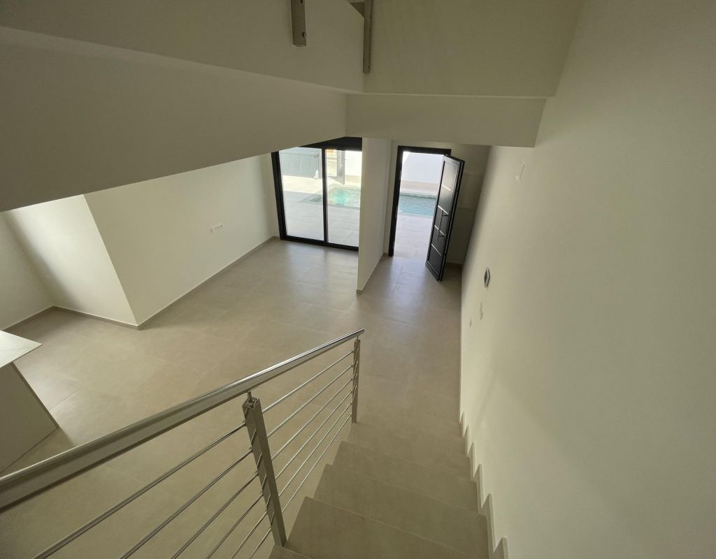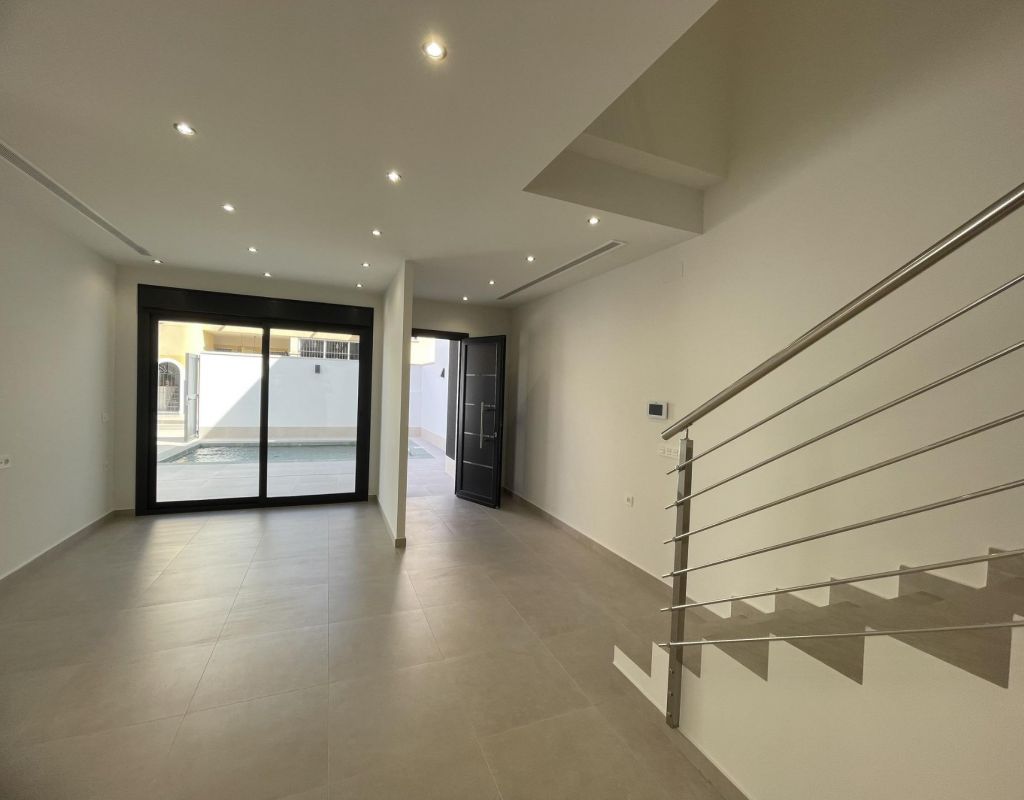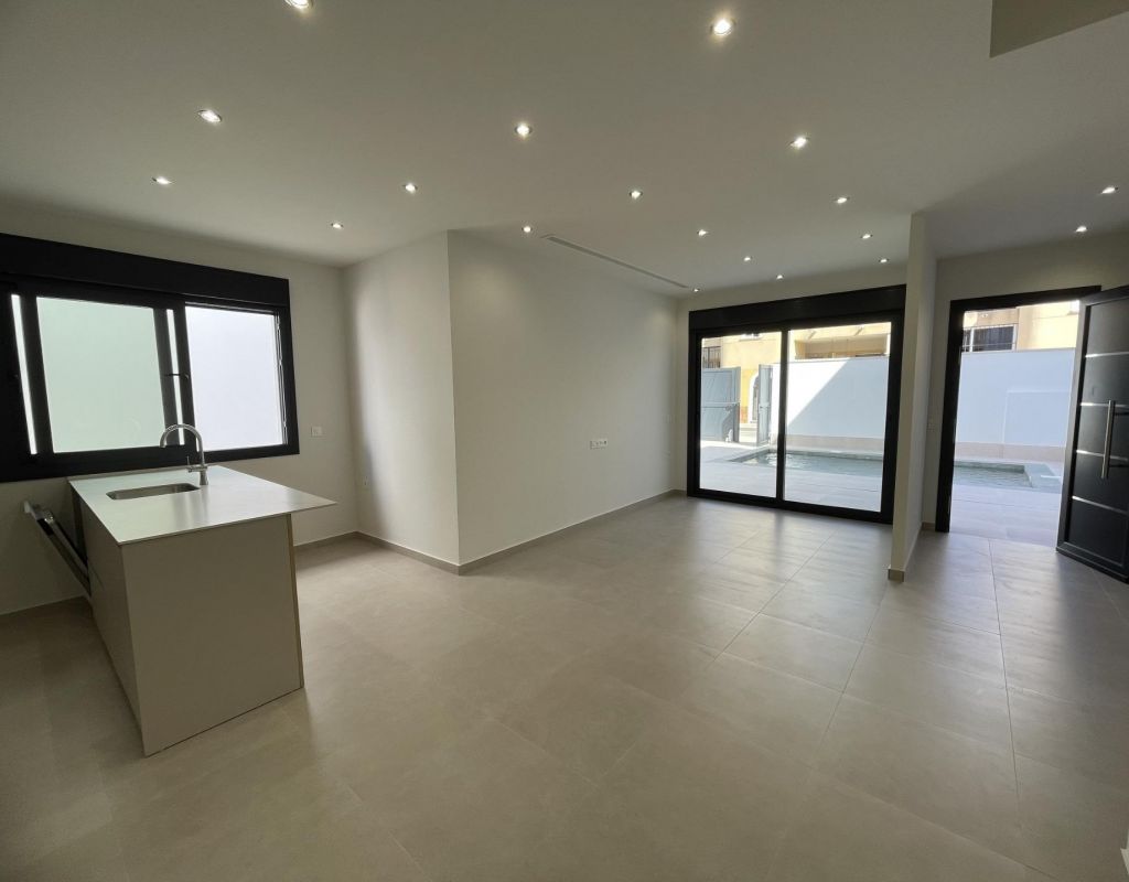 Villas de nueva construcción en venta en Las Heredades, Costa Blanca Villas modernas en una zona tranquila y bien comunicada Descubra esta exclusiva promoción de 5 villas contemporáneas situadas en Las Heredades, un encantador y tranquilo pueblo cerca de Rojales y Almoradí, en el corazón de la Costa Blanca Sur. Esta tranquila zona residencial ofrece un auténtico estilo de vida español rodeado de naturaleza, pero cerca de todos los servicios, campos de golf y las playas mediterráneas de Guardamar del Segura y Torrevieja, a solo 12 km. Diseño elegante y funcional Estas villas de nueva construcción presentan un diseño mediterráneo moderno que combina comodidad, estilo y practicidad. Cada propiedad se distribuye en dos plantas, ofreciendo interiores luminosos y espaciosos que se integran a la perfección con los espacios exteriores. Las villas incluyen 3 dormitorios y 3 baños, una cocina abierta con electrodomésticos totalmente integrados y un amplio salón-comedor con acceso directo a la terraza y al jardín. Construidas con materiales de alta calidad y atención al detalle, estas viviendas garantizan un estilo de vida cómodo y energéticamente eficiente durante todo el año. Espacios exteriores privados y características premium Cada villa está construida en su propia parcela privada con: Piscina privada (6x3 m) Jardín paisajístico con sistema de riego automático Plaza de aparcamiento privada para dos vehículos Terrazas y zonas de descanso al aire libre perfectas para disfrutar del clima mediterráneo Otras características adicionales incluyen: Aire acondicionado por conductos Iluminación LED en todo el interior y el exterior Armarios empotrados en todos los dormitorios Cocina totalmente equipada con electrodomésticos modernos Una ubicación perfecta para una vida mediterránea relajada Las Heredades es ideal para aquellos que buscan tranquilidad sin renunciar a la proximidad a las playas, los campos de golf y las zonas de ocio. Con su ambiente tradicional español y sus excelentes conexiones por carretera, esta zona es perfecta tanto para vivir de forma permanente como para pasar las vacaciones en la Costa Blanca. Distancias a puntos de interés clave: Playas de Guardamar del Segura: 12 km Centro de Rojales: 3 km Almoradí: 2 km La Marquesa Golf: 5 km Torrevieja: 15 km Aeropuerto Internacional de Alicante: 40 km (unos 45 minutos en coche) Aeropuerto de Murcia (Corvera): 50 km Póngase en contacto con nosotros hoy mismo para concertar una visita y descubrir la casa de sus sueños en Las Heredades, Costa Blanca.