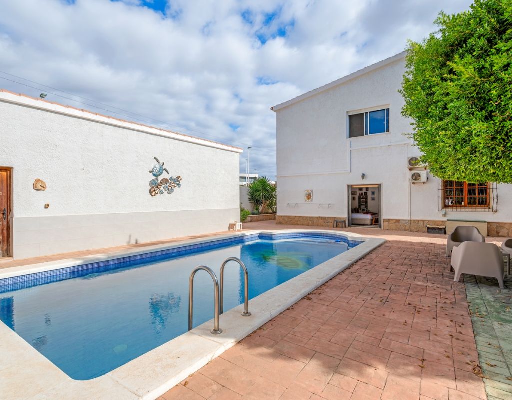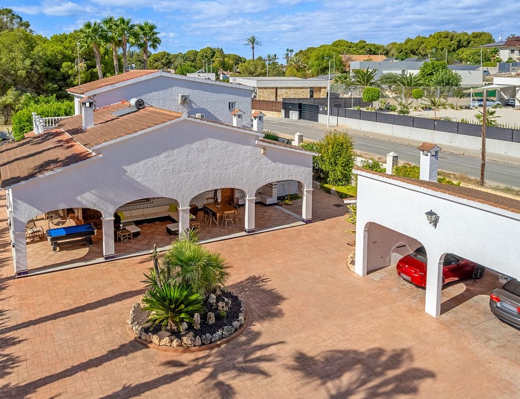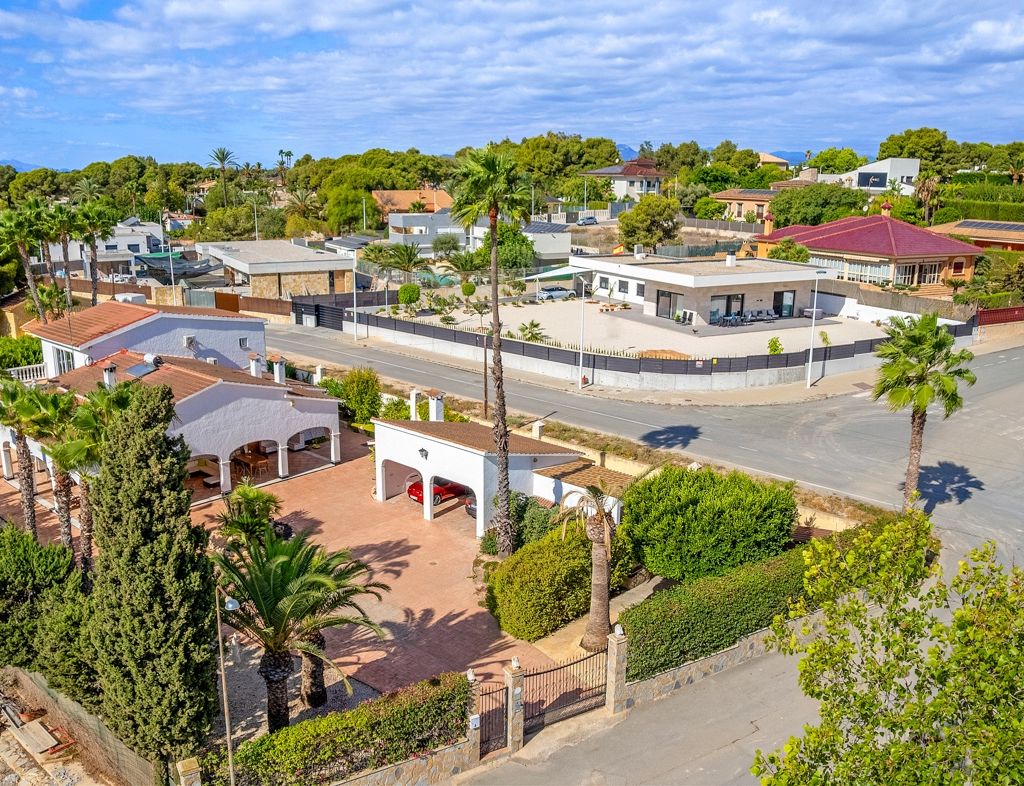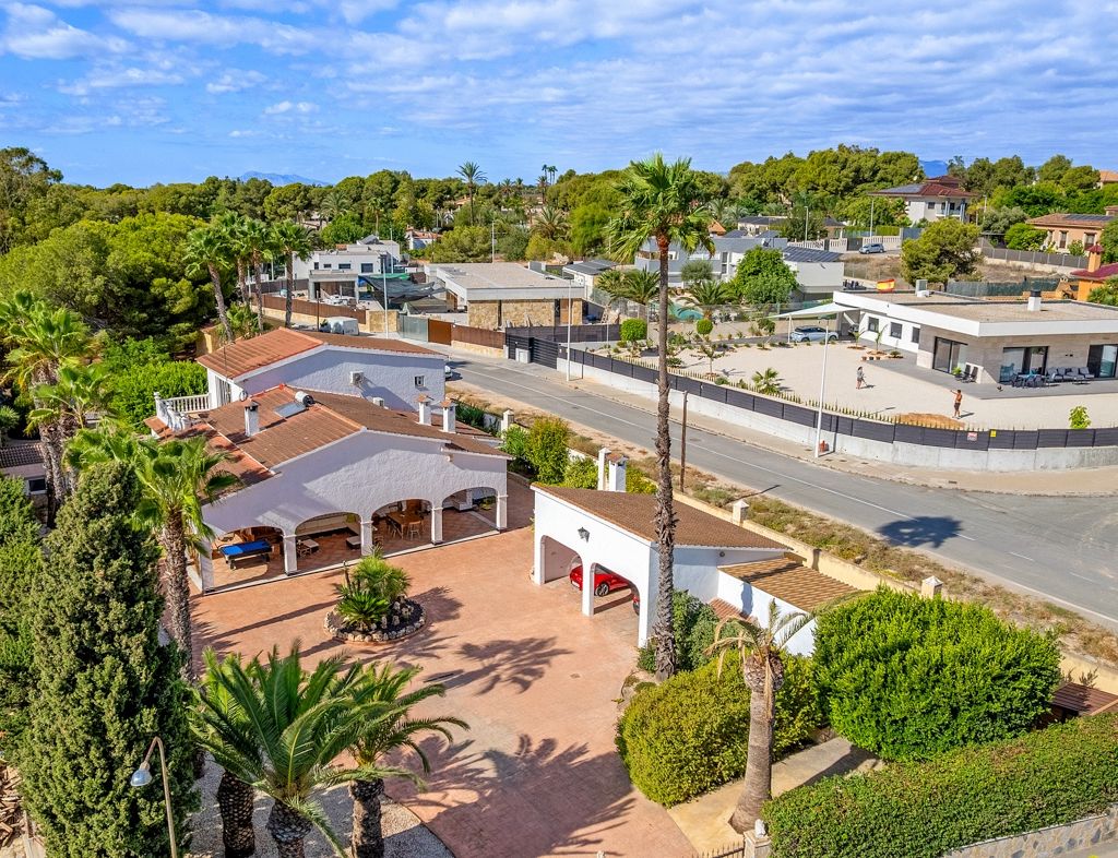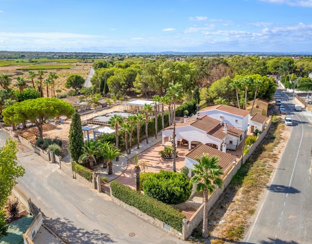 Entre el mar y la ciudad de Elche se encuentra esta espectacular villa de estilo mediterráneo, donde cada detalle ha sido pensado para disfrutar de una vida soleada, tranquila y, a la vez, llena de vida. En una parcela de 2.220 m², la propiedad ofrece un equilibrio perfecto entre privacidad, libertad y relax. Dispone de parking privado para dos coches, además de un segundo espacio extra para motos o vehículos más pequeños, y grandes zonas espaciosas donde los más pequeños de la casa puedan correr y jugar con total seguridad. Su gran porche, orientado hacia dos direcciones, te invita a relajarte a cualquier hora del día o bien, convertirse la zona preferida de los amantes de las reuniones con amigos/familia y donde disfrutar de una buena barbacoa o paella junto a la cocina exterior. En el lateral, cuenta con una casa de invitados, compuesta por una habitación y baño completamente equipados: perfecta para cuando vengan invitados. Tras la vivienda, en la parte de atrás de la casa, encontramos la piscina privada junto a su amplia terraza, la cual se convierte en el corazón de la casa en los días más soleados. En su interior, este hogar mantiene su esencia cálida y acogedora. La gran cocina totalmente equipada incluye una bodega subterránea, ideal para los que saben apreciar un buen vino. El salón-comedor de estilo británico combina esencia y confort. En la misma planta principal, se encuentran tres amplios dormitorios y dos baños completos (uno de ellos en suite con salida a la piscina), mientras que el despacho/oficina también ofrece la comodidad de poder trabajar desde casa o incluso, convertirlo en una habitación extra. En la planta superior, la calma toma protagonismo: imagínate leyendo tu libro en la sala de lectura mientras disfrutas de esa tranquilidad al oír el chisporroteo de la chimenea. O disfrutar de una noche de juegos en la sala de estar, junto a la terraza privada. En esa misma planta, se encuentra la habitación principal, compuesta a su vez por un gran vestidor y baño propio. Situada en una zona tranquila y a su vez cerca de todos los servicios que necesitas, esta villa combina lo mejor de cada mundo: desde el agua salada de la playa, el ocio de una ciudad histórica como Elche, hasta la posibilidad de escoger tu próximo destino en el aeropuerto internacional de Alicante. Una casa con alma mediterránea, lo mires por donde lo mires.
