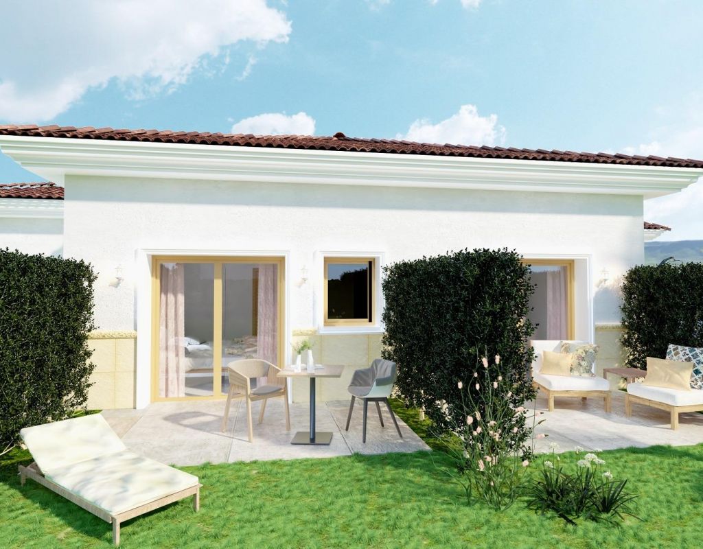 Villas de nueva construcción en amplias parcelas rústicas en Pinoso, Alicante Tranquila vida mediterránea en el corazón de la naturaleza Descubra este exclusivo proyecto de villas de nueva construcción en Pinoso, una encantadora localidad del interior de la provincia de Alicante conocida por su carácter tradicional español, sus hermosos paisajes montañosos y su entorno tranquilo. Perfectas para quienes buscan privacidad y espacio, estas villas están construidas en parcelas rústicas de más de 10 000 m2 y ofrecen la combinación perfecta entre el confort moderno y la vida en el campo, a solo 45 km de la costa. Villas personalizables con múltiples opciones de distribución Elija entre varios modelos de villas con 2, 3 o 4 dormitorios y 2 baños (uno de ellos en suite), todas ellas diseñadas en una sola planta para ofrecer la máxima comodidad. El precio final se calcula en función del diseño elegido, el sistema de construcción (losa o estructura) y la parcela seleccionada. Para este anuncio se ha considerado una parcela con un precio de 60.000 eur, si se elige otra parcela, se abonará o pagará la diferencia en función del precio de la misma. Cada villa cuenta con una amplia cocina y sala de estar de planta abierta, armarios empotrados y acabados de alta calidad en todas las estancias. Los grandes ventanales llenan las viviendas de luz natural y proporcionan una integración perfecta entre los espacios interiores y exteriores. Espacios exteriores excepcionales con piscina privada Cada propiedad se encuentra en una zona vallada de aproximadamente 2500 m² dentro de una parcela rústica de 10 000 m², lo que garantiza una gran privacidad y espacio. Las villas incluyen una piscina privada de 8 x 4 m, un porche, un trastero y un aparcamiento exterior privado. Disfrute de las tranquilas vistas del campo y las montañas circundantes mientras se relaja en su piscina o recibe a sus invitados en su amplio jardín. Construcción de alta calidad y características modernas Construidas bajo un plan de autopromoción con entrega aproximadamente 12 meses después de la aprobación de la licencia, cada villa está equipada con especificaciones de primera calidad, que incluyen: Puerta de entrada blindada y puerta motorizada para vehículos Persianas motorizadas en los dormitorios Cocina totalmente amueblada Baños con muebles, espejos y mamparas de ducha Preinstalación para aire acondicionado por conductos Sistema de agua caliente aerotérmica Ubicación privilegiada cerca de destinos clave Pinoso ofrece todos los servicios esenciales, como tiendas, restaurantes, colegios y servicios sanitarios, al tiempo que mantiene un ambiente relajado y auténticamente español. Está rodeado de parques naturales, viñedos y rutas de senderismo, ideales para los amantes del aire libre. Distancias clave: Elche: 33 km Playas de la Costa Blanca: 45 km Aeropuerto de Alicante: 45 km Su refugio rural perfecto en Alicante Estas villas de nueva construcción en Pinoso combinan la tranquilidad de la vida rural con la comodidad del diseño moderno, lo que las hace ideales para vivir de forma permanente, pasar las vacaciones o como inversión. Póngase en contacto con nosotros hoy mismo para obtener más información o para empezar a diseñar la casa de sus sueños en Pinoso.