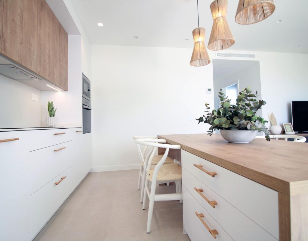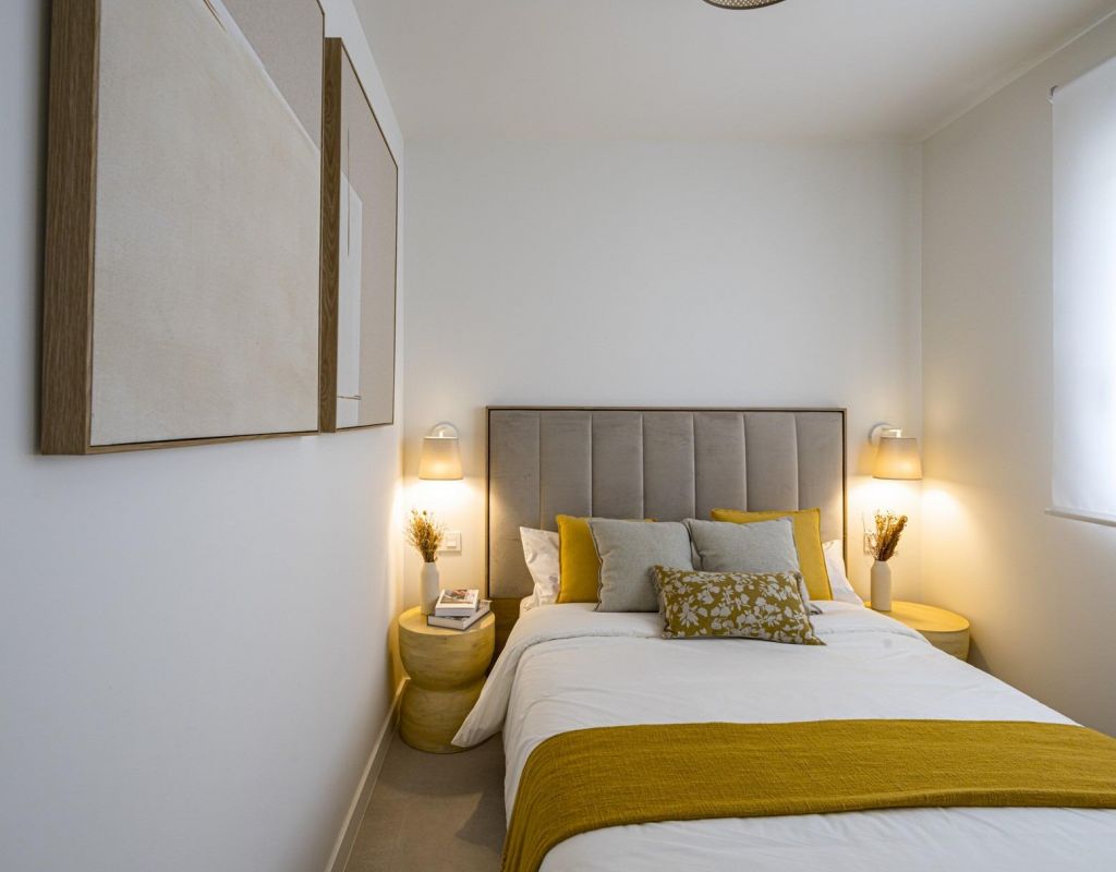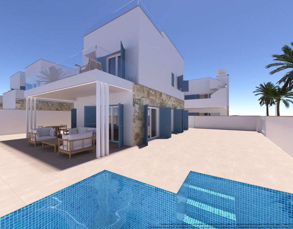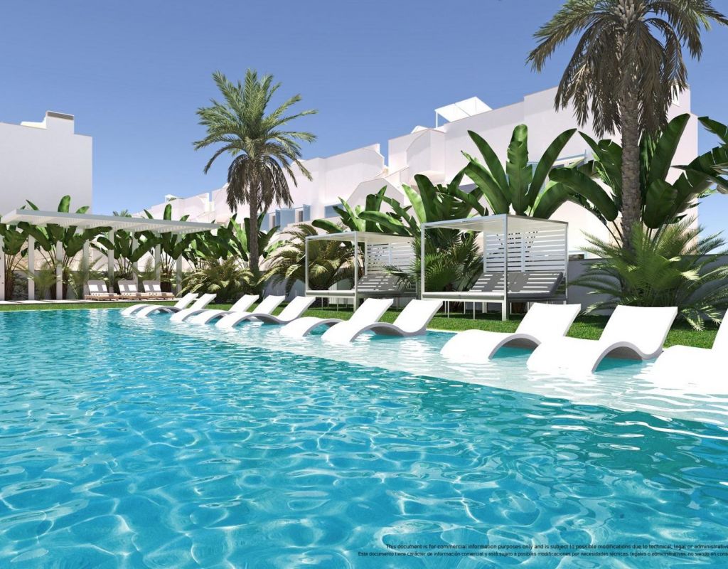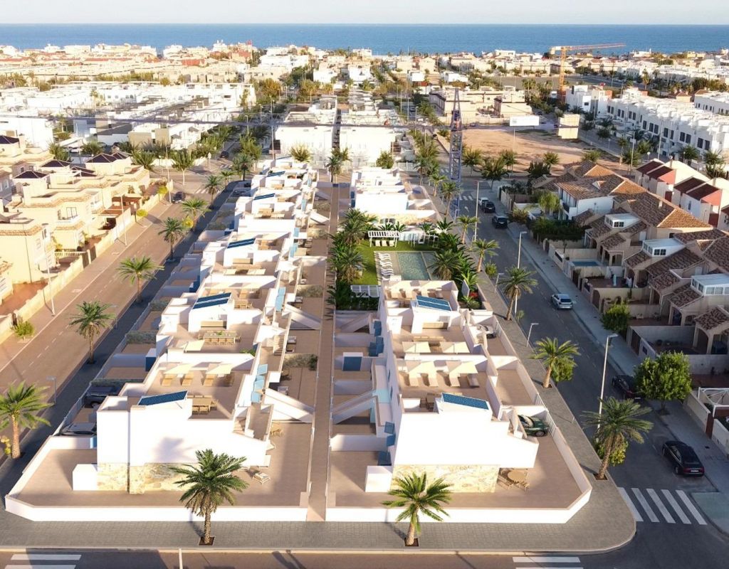 COMPLEJO RESIDENCIAL DE OBRA NUEVA EN TORRE DE LA HORADADA Complejo residencial de obra nueva de bungalow apartamentos con piscina comunitaria en Torre de la Horadada situado a 800m de la playa. Todas las propiedades tiene 2-3 dormitorios, 2 baños, cocina americana con el salón, armarios empotrados y terraza. Todas las propiedades tienen jardines privados y plaza de aparcamiento. Además bungalows en la planta superior tiene solarium privado. Torre de la Horadada se encuentra al sur de Alicante en una hermosa ubicación en la costa. Las hermosas playas de Torre de la Horadada y Mil Palmeras tienen arena fina hermoso paseo marítimo. Hay un montón de restaurantes, bares y tiendas, también deportes acuáticos, buceo y snorkel. Está bien comunicado a sólo 40 minutos de los aeropuertos de Alicante y Murcias Corvera, con grandes centros comerciales y múltiples campos de golf a poca distancia.