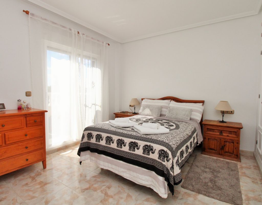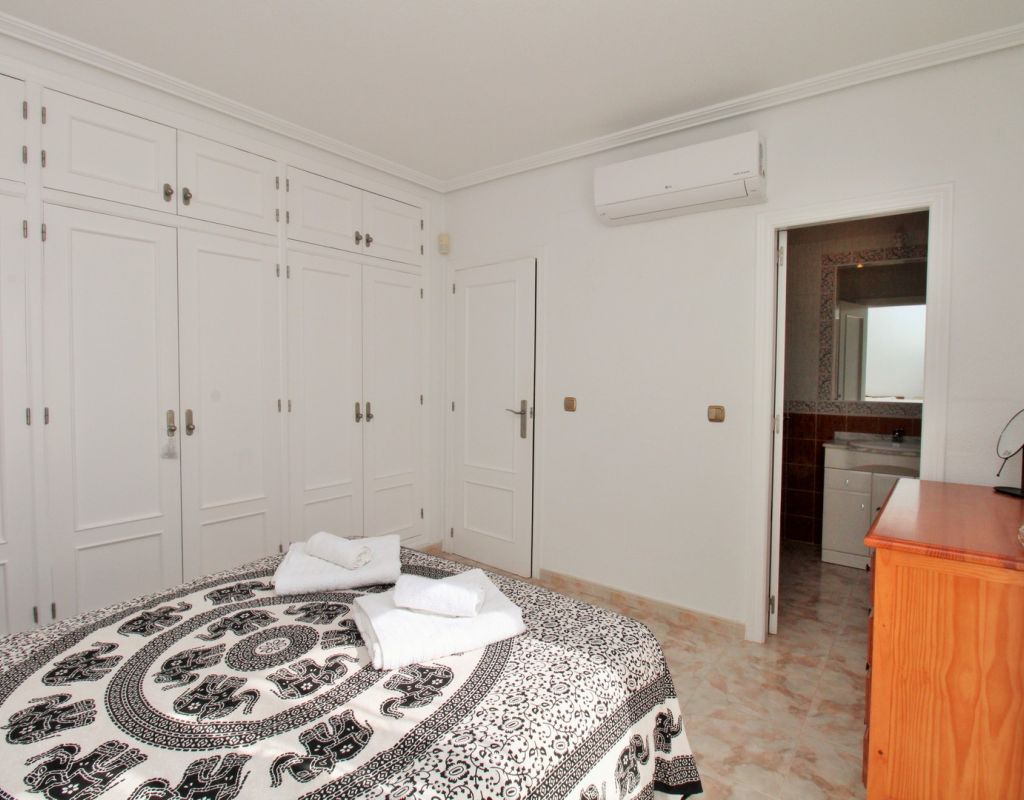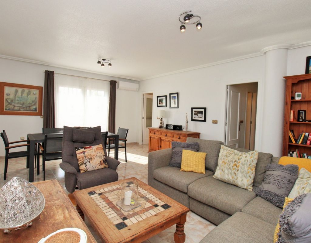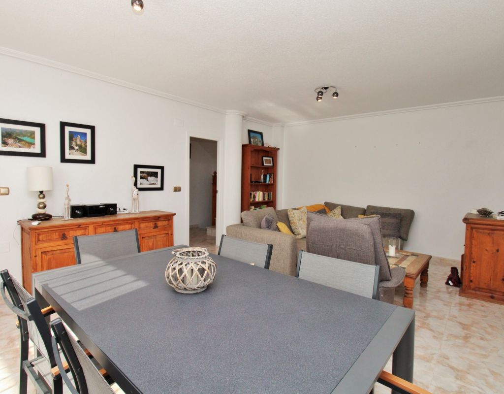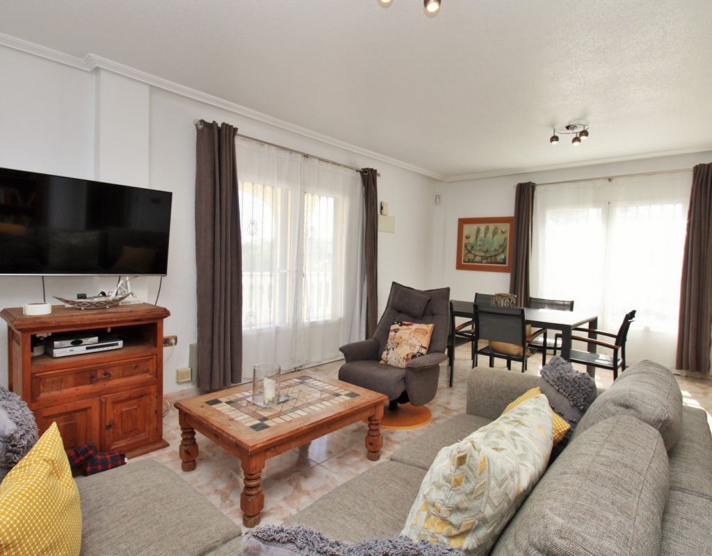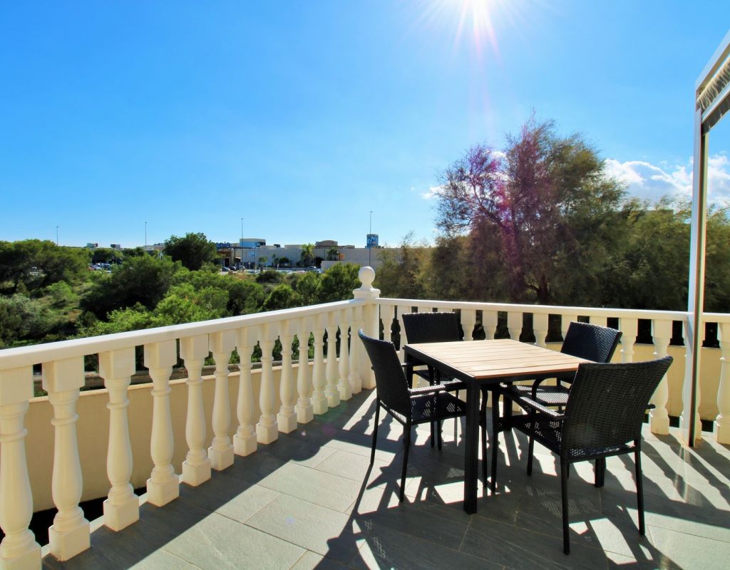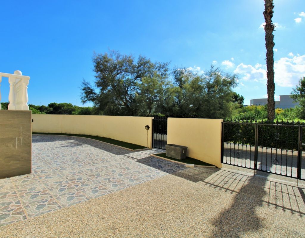 Excepcional oportunidad de adquirir una de las únicas tres villas independientes en la codiciada comunidad residencial San Jose I en Playa Flamenca. Ubicada en una parcela de esquina soleada, esta espaciosa villa de 4 dormitorios y 3 baños goza de una posición privilegiada, a solo unos pasos de la piscina comunitaria y a poca distancia a pie del centro comercial Zenia Boulevard, así como de una gran variedad de bares, restaurantes y supermercados. La vivienda ofrece una impresionante cantidad de espacio exterior, que incluye jardín embaldosado, entrada para coche, terraza elevada delantera, balcón con vistas a la piscina y un gran solárium privado en la azotea con vistas al mar y a la piscina, perfecto para relajarse o disfrutar al aire libre. En el interior, la planta baja dispone de un luminoso salón-comedor, una amplia cocina independiente con acceso a la terraza, un dormitorio doble y un baño con ducha a ras de suelo. En la planta superior hay tres dormitorios dobles con armarios empotrados y un baño familiar. El dormitorio principal cuenta con baño en suite y acceso a un balcón privado con vistas a la piscina. Desde las escaleras interiores se accede al amplio solárium, equipado con toldo retráctil y bonitas vistas al mar y alrededores. Destaca un gran sótano con dos habitaciones adicionales y acceso independiente, con gran potencial para crear un apartamento independiente, alojamiento para invitados o una sala de juegos o aficiones. Se vende amueblada, con electrodomésticos y aire acondicionado. Los propietarios en Villas de San Jose I disfrutan de piscina comunitaria y jardines bien cuidados. Ubicada en una zona privilegiada de Orihuela Costa, a poca distancia de Zenia Boulevard, Via Park I y a 20 minutos a pie de las playas de Cala Mosca y Cala Estaca, esta vivienda ofrece un excelente valor, espacio y versatilidad. Se recomienda visitar pronto para apreciar todo el potencial y la ubicación de esta villa única.