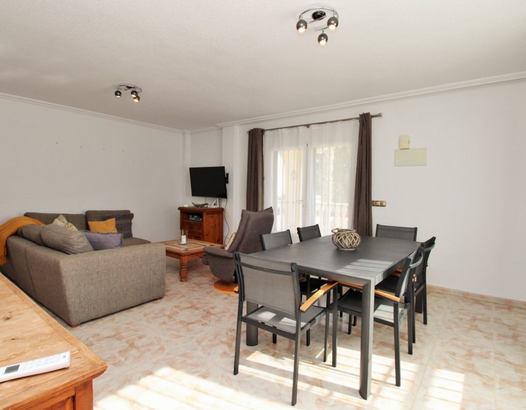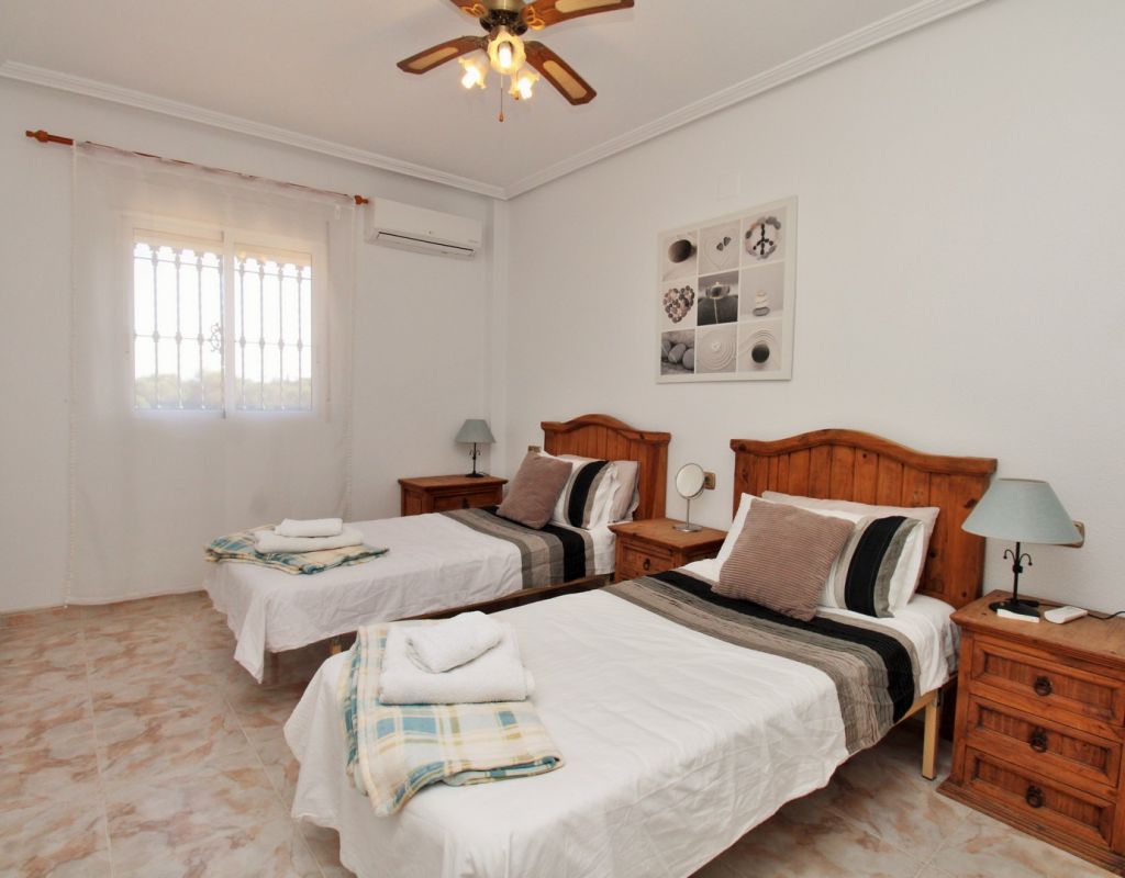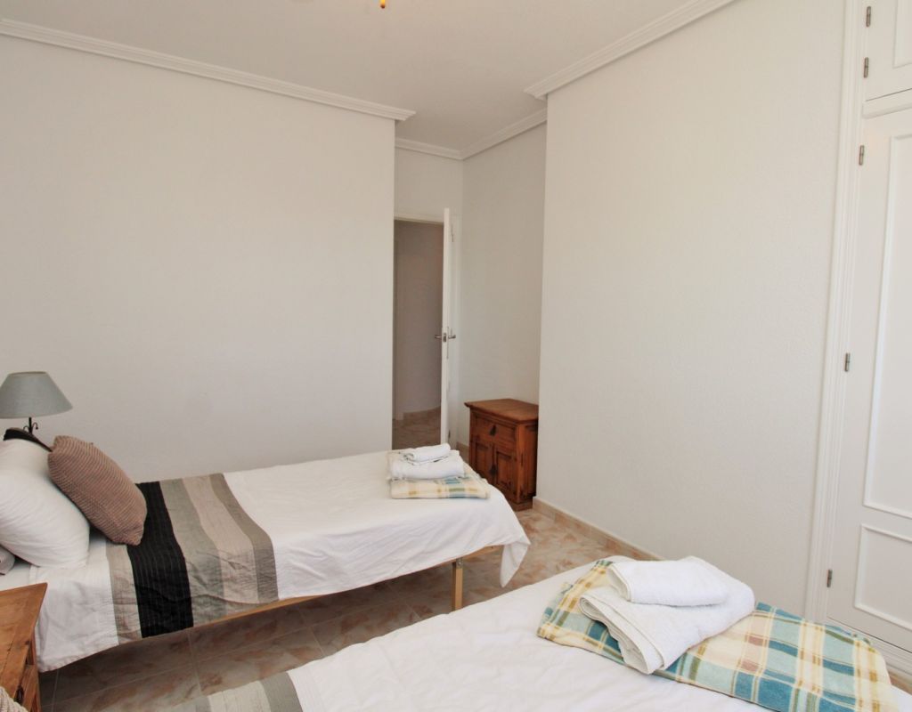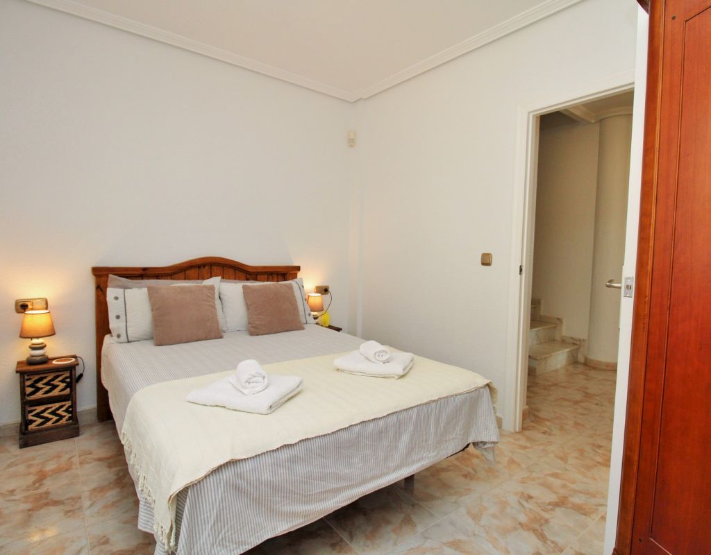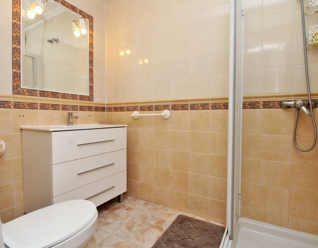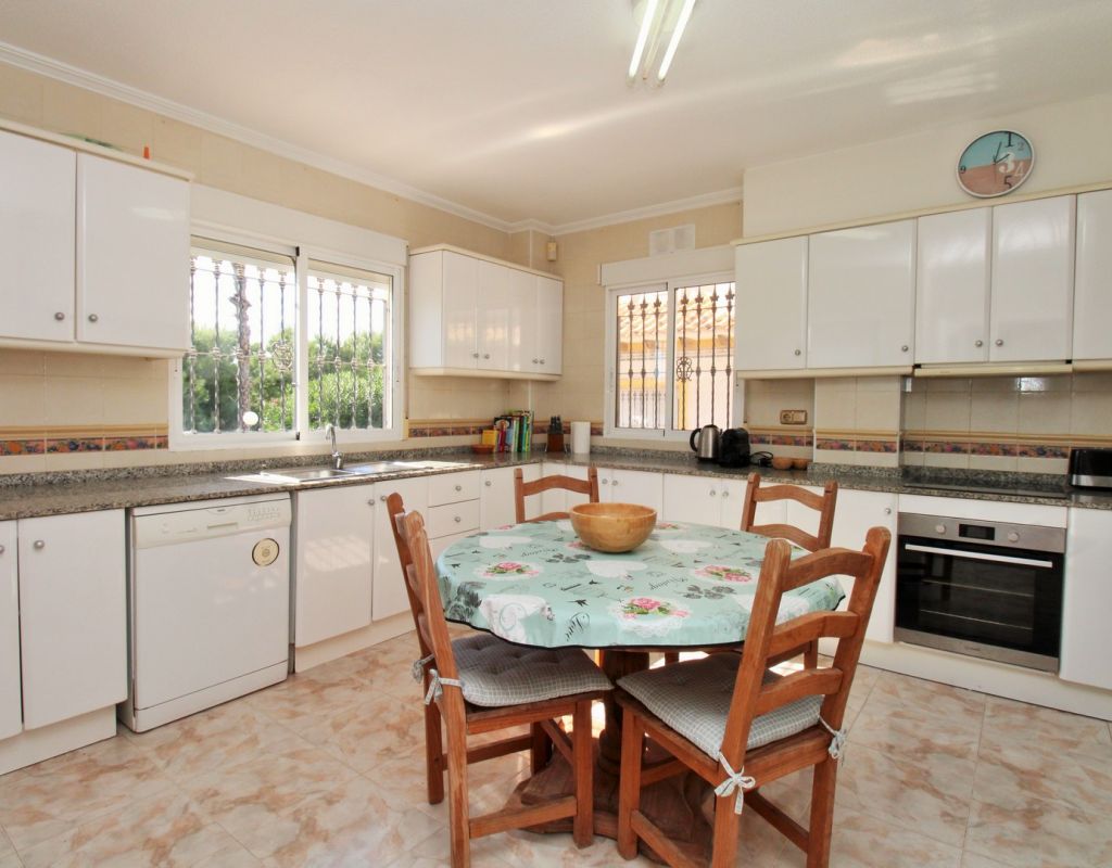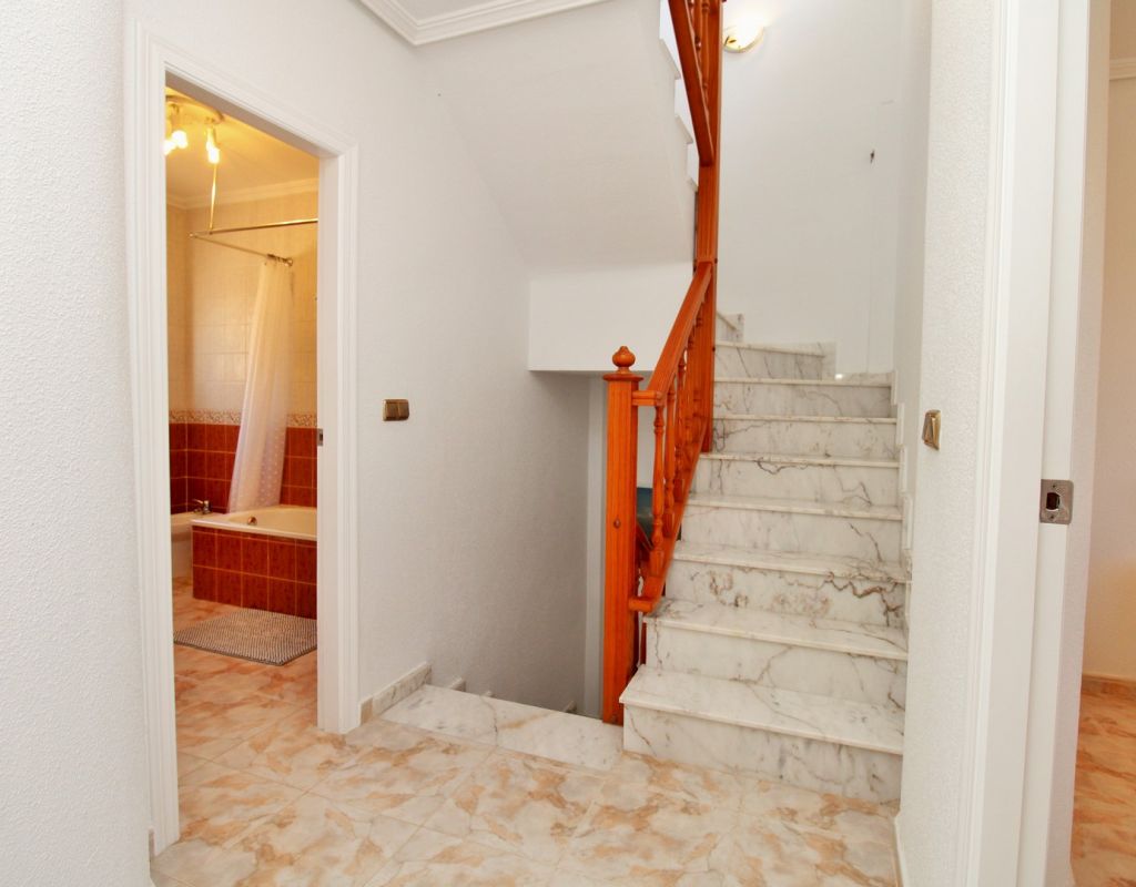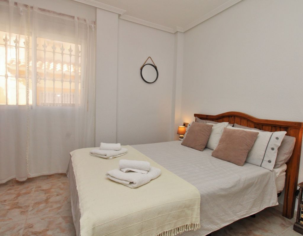 Excepcional oportunidad de adquirir una de las únicas tres villas independientes en la codiciada comunidad residencial San Jose I en Playa Flamenca. Ubicada en una parcela de esquina soleada, esta espaciosa villa de 4 dormitorios y 3 baños goza de una posición privilegiada, a solo unos pasos de la piscina comunitaria y a poca distancia a pie del centro comercial Zenia Boulevard, así como de una gran variedad de bares, restaurantes y supermercados. La vivienda ofrece una impresionante cantidad de espacio exterior, que incluye jardín embaldosado, entrada para coche, terraza elevada delantera, balcón con vistas a la piscina y un gran solárium privado en la azotea con vistas al mar y a la piscina, perfecto para relajarse o disfrutar al aire libre. En el interior, la planta baja dispone de un luminoso salón-comedor, una amplia cocina independiente con acceso a la terraza, un dormitorio doble y un baño con ducha a ras de suelo. En la planta superior hay tres dormitorios dobles con armarios empotrados y un baño familiar. El dormitorio principal cuenta con baño en suite y acceso a un balcón privado con vistas a la piscina. Desde las escaleras interiores se accede al amplio solárium, equipado con toldo retráctil y bonitas vistas al mar y alrededores. Destaca un gran sótano con dos habitaciones adicionales y acceso independiente, con gran potencial para crear un apartamento independiente, alojamiento para invitados o una sala de juegos o aficiones. Se vende amueblada, con electrodomésticos y aire acondicionado. Los propietarios en Villas de San Jose I disfrutan de piscina comunitaria y jardines bien cuidados. Ubicada en una zona privilegiada de Orihuela Costa, a poca distancia de Zenia Boulevard, Via Park I y a 20 minutos a pie de las playas de Cala Mosca y Cala Estaca, esta vivienda ofrece un excelente valor, espacio y versatilidad. Se recomienda visitar pronto para apreciar todo el potencial y la ubicación de esta villa única.